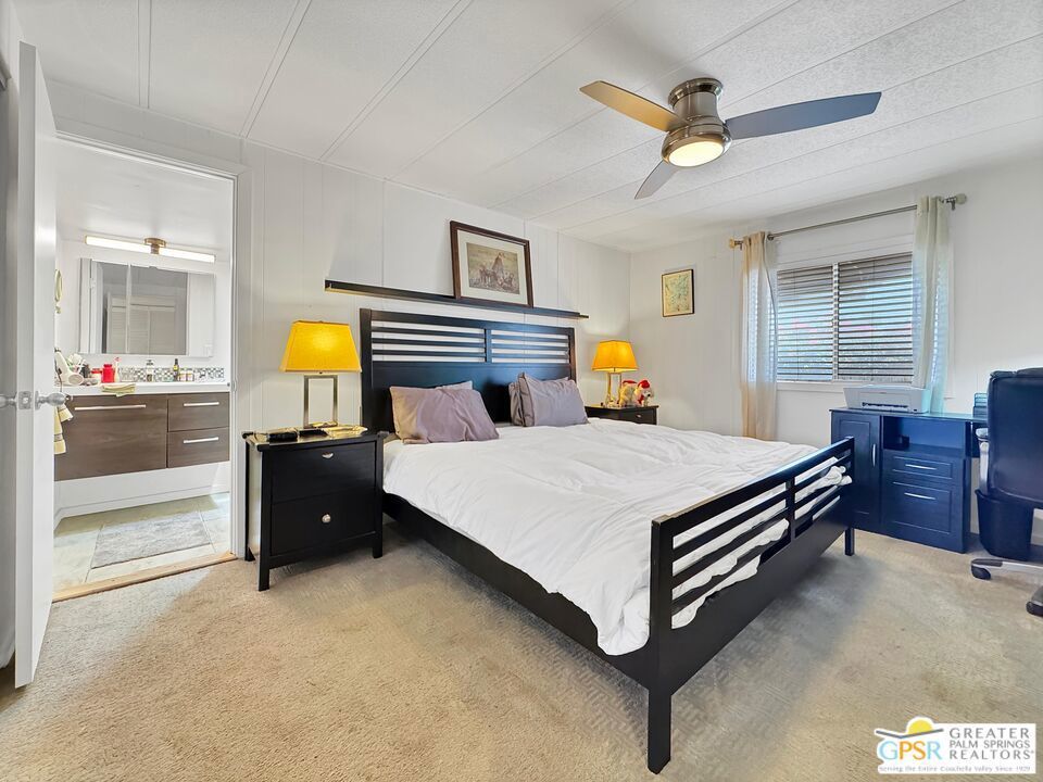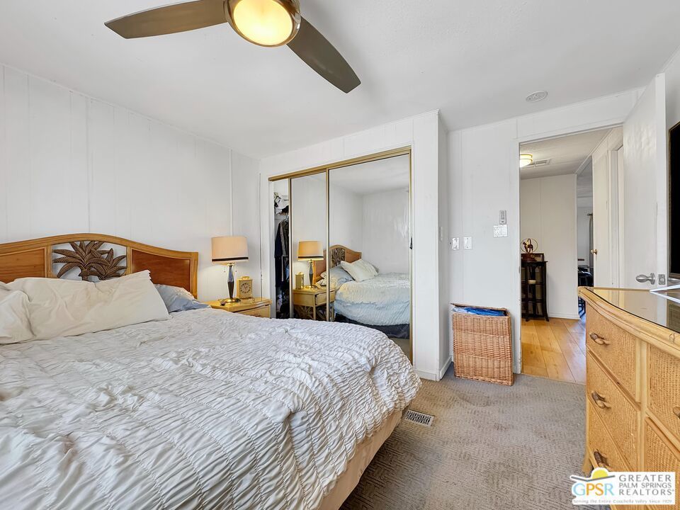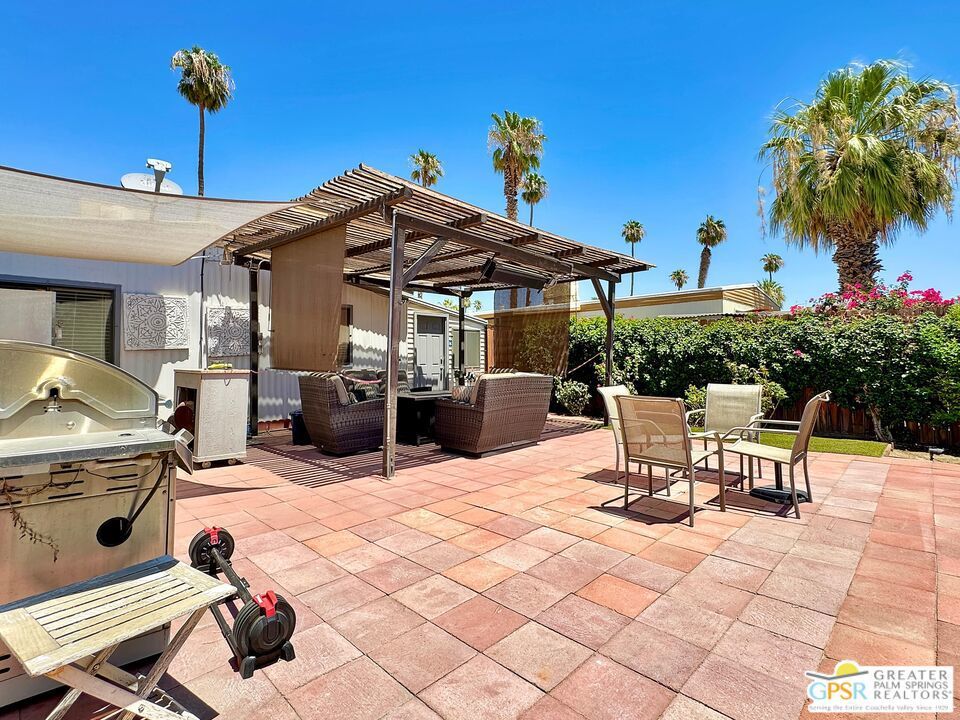Discover this beautifully maintained 2 bed, 2 bath and move-in ready 1,152 sq. ft. mobile home nestled in the highly desirable Palmdale Estates 55+ community in Indio, CA. Perfectly upgraded and thoughtfully designed, this charming residence offers a seamless blend of comfort, modern updates, and effortless style ideal for full-time living, a vacation retreat, or investment. Recent upgrades include a new A/C system installed last year, an updated water heater approximately 1.5 years ago, and completely renovated plumbing throughout the home. The beautiful laminate flooring adds a sleek, durable, low-maintenance touch, complemented by a renovated bathroom with a contemporary look. Inside, you'll find a bright, open floor plan with spacious living areas perfect for relaxing or entertaining. The well-appointed kitchen features modern appliances and ample counter space, making meal prep enjoyable. The primary bedroom offers a tranquil retreat with generous closet space and a private en-suite bath, while the guest bedroom is versatile ideal for visitors, a home office, or hobbies. Outside, the backyard is a true highlight ready for entertaining or unwinding under the stunning desert skies. Low-maintenance landscaping makes outdoor living effortless, and the generous outdoor space is perfect for dining al fresco, hosting gatherings, or enjoying peaceful evenings. This home provides easy access to local amenities, shopping, dining, and world-famous events like the Coachella Valley Music and Arts Festival. Whether you're seeking a comfortable full-time residence or a relaxing vacation getaway, this property truly checks all the boxes. Don't miss your chance to own this exceptional, updated home in Palmdale Estates schedule your private showing today and experience everything this fantastic property has to offer!