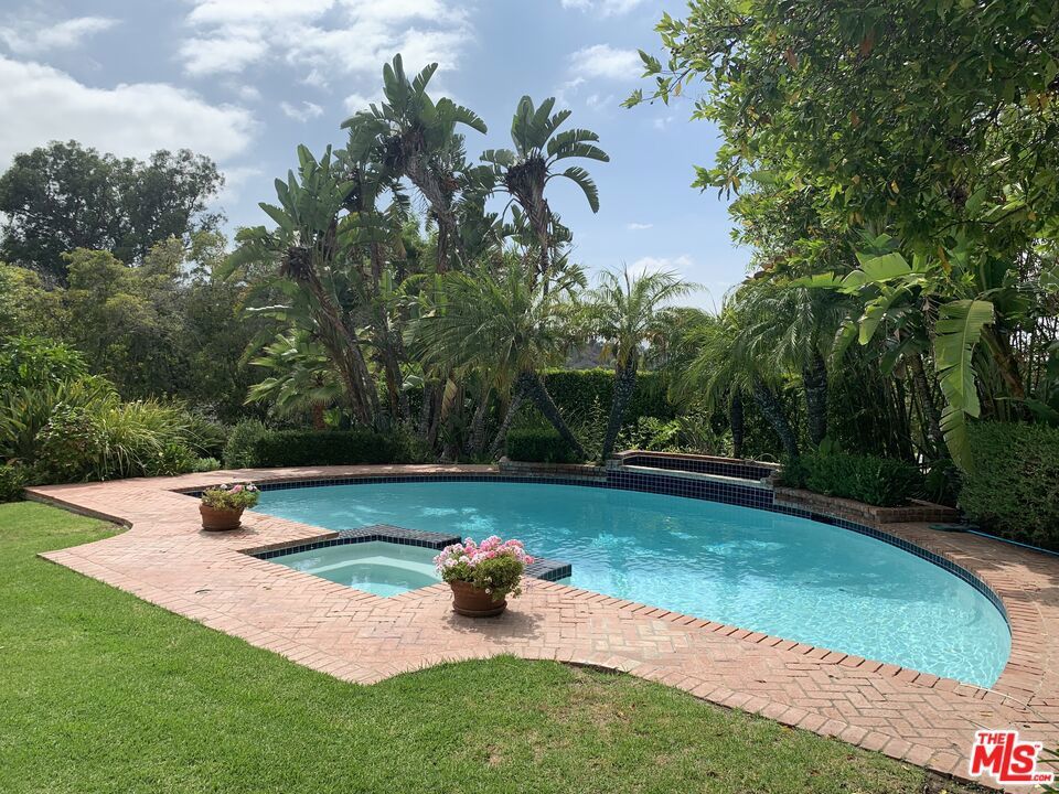 Gated residence on Mulholland Drive. Hampton's style traditional 4 Bedrooms/4.5 Baths with pool & spa and valley views. Featured in Elle Decor & Town and Country, this private mini-estate has an expansive garden setting with cabana style patio. A unique property with numerous French doors that provide great indoor/outdoor flow, giving the home natural light and charm. Other features include hardwood floors, vaulted ceilings, and a chef's eat-in-kitchen. The master suite has numerous closets, a fireplace, and tons of light. There is also a separate dining room and a huge family room w/ wet bar. Recently updated, the home offers an informal elegance and is perfect for those who surround themselves with comfort.