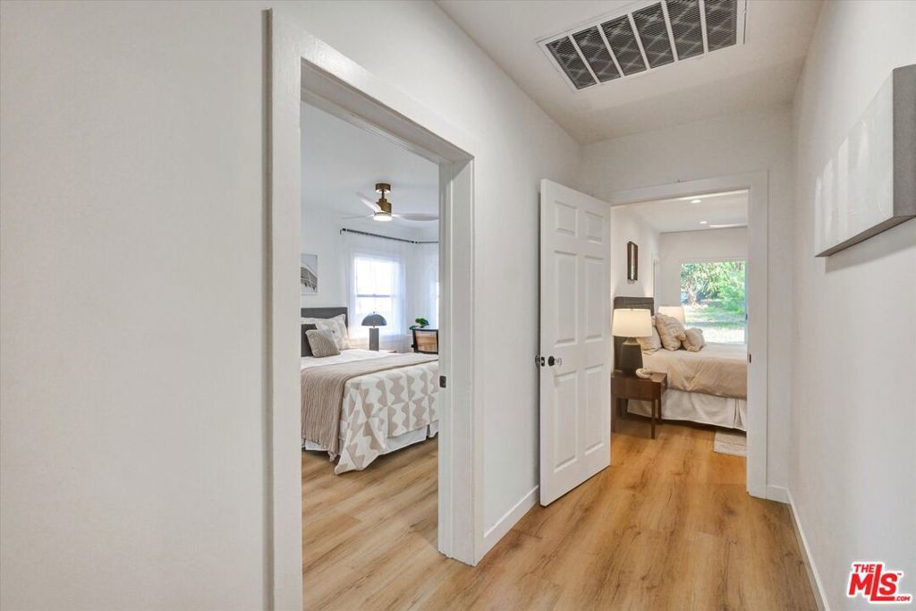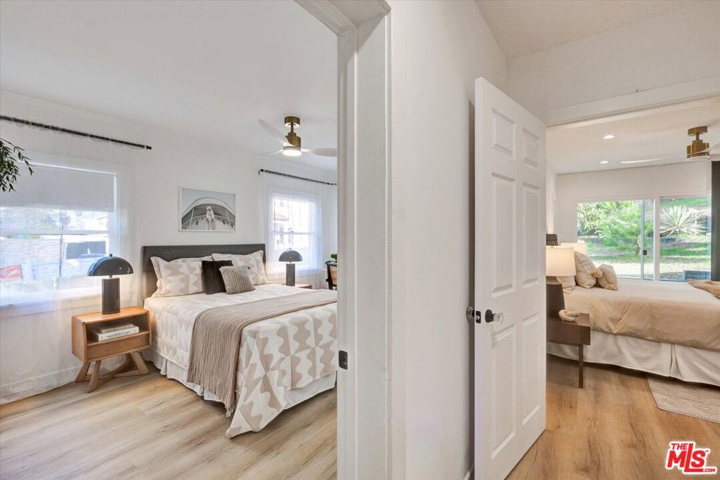 Every detail of this reimagined home was designed with intention not for resale, but for living beautifully. Recently rebuilt from the ground up by the owner for herself, this residence blends modern design with effortless comfort and an inviting indoor-outdoor flow. The open-concept floor plan was thoughtfully altered to create a more functional layout, anchored by a custom kitchen with natural wood cabinetry, stone counters, designer tile, and high-end appliances. Wide-plank floors and curated lighting add warmth and texture throughout the space, leading to a dining area and living room that open seamlessly to the outdoors. The primary suite was completely transformed, featuring a spacious bedroom with custom built-ins and an incredible en suite bath. A soaking tub and walk-in shower share a light-filled space finished in high-end tile and brushed brass fixtures more boutique hotel than bungalow, featuring handcrafted tilework, elegant fixtures, and meticulous attention to detail, an unmistakable reflection of the home's quality and care. Bedrooms are bright and restful, with abundant storage and a calming palette. Outside, the home's deep blue exterior and fresh landscaping make a striking first impression. A private yard, patio, and covered porch provide multiple areas for relaxing or entertaining under the California sun. Perfectly balancing modern upgrades with timeless design, this home offers a rare opportunity to move into a space that feels both brand new and deeply personal.