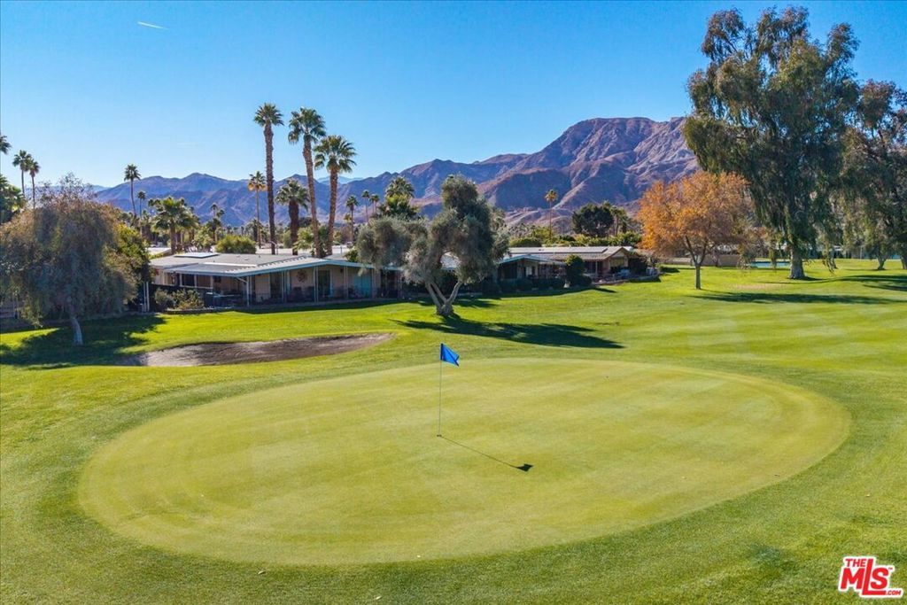 Welcome to 385 Avenida Andorra! Meticulously maintained and perfectly positioned, this golf course getaway enjoys picture-perfect mountain views all year long. Tastefully renovated throughout, with two bedrooms, two bathrooms (including a primary suite), a large living room, formal dining room w/ built-ins, great room with a wet bar, a renovated kitchen with stainless steel appliances and solid surface Corian countertops, updated baths, dedicated laundry room, contemporary laminate flooring throughout, dual pane windows and sliding glass doors, Bali window shades, central heat & air, workshop, large, wrap-around, covered lanai, attached carport, newer vinyl privacy fence, recent leveling and stabilization... the list goes on and on! Conveniently located within the community, with easy access to the park's satellite pool and fitness room, as well as the back gate (off Da Vall Drive). Date Palm Country Club is a 55+ community. The monthly lot rent includes park amenities (golf is additional). This one is priced to move quickly. Schedule your tour today!