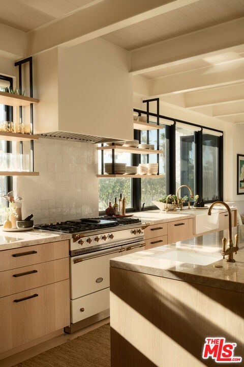 120 Hart Ave offers a rare blend of luxury, privacy, and effortless coastal living on one of Santa Monica's most desirable streets. Completely rebuilt in 2022 with meticulous attention to design and craftsmanship by the acclaimed architecture and interiors firm Electric Bowery, this fully furnished beachfront home captures sweeping ocean views from Catalina to Malibu from nearly every angle . Inside, a stunning Henrybuilt kitchen stands as the heart of the homeappointed with a Lacanche stove, custom cabinetry, a generous island, and an exceptional lineup of chef-grade appliances, including two Subzero fridge/freezer units, dual Cove dishwashers, a Miele espresso system and a Uline wine fridge. Just off the kitchen, an intimate outdoor deck equipped with a pizza oven and Wolf barbecue makes indooroutdoor dining seamless. The open living and dining area is framed by floor-to-ceiling windows that draw in natural light and highlight the ocean backdrop. Warm walnut Madera floors run throughout, adding elegance to the breezy coastal feel.The primary suite functions as a private retreat, featuring bespoke cabinetry, spacious walk-in closets, and a spa-like bath. Retractable glass doors lead to a secluded outdoor escape complete with a contemporary fireplace, outdoor shower, and built-in cold plunge and hot tub. Electric Lutron shades throughout the home and an elevator servicing every level enhance comfort and convenience. Crowning the residence is a spectacular rooftop deck, an entertainer's dream! With panoramic ocean views, a plunge pool, Wolf barbecue, refrigeration, custom awnings, Tucci umbrellas, heaters, fire pit, and abundant lounge and dining areas, it's an unforgettable setting for gatherings or sunset unwinding. A four-car garage, dedicated laundry room, and mud room round out the home's thoughtful amenities. The home also presents a mirrored gym/dance studio (optional fifth bedroom) which is off the garage and laundry room. With immediate access to the beach and the boutiques and dining of Main Street, this exceptional property captures the very best of Santa Monica living.