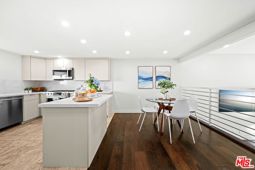 Step into this beautifully updated home in the heart of Marina del Rey complete with designer upgrades and smart features that blend contemporary style, comfort, and convenience. The fully renovated kitchen showcases quartz countertops, fingerprint-resistant, push-to-open cabinetry, brand-new Bosch appliances, and under-cabinet lightingperfect for both entertaining and everyday living. The bright, open living area features new recessed lighting with Lutron smart switches, a Dimplex electric fireplace, and a remote-controlled shade from The Shade Store that opens to your private patioideal for relaxing, morning coffee, or dining al fresco. Additional thoughtful upgrades include in-closet electrical outlets to keep routers and vacuums neatly hidden, a newer water heater (installed 3 years ago), and a two-car garage with direct access to the home. A garage adjacent bonus space that can double as a home gym, workshop, office or even a screening room! Upstairs, you'll find two spacious bedrooms with large closets and a clean, functional layout that makes the home feel both modern and cozy. Community amenities include a sparkling pool that is just a steps away from your front door. Located just minutes from the beach, Playa Vista, the major tech firms of Silicon Beach, the Strand, major highways, LAX, and Marina del Rey's best restaurants and shops, this home offers the perfect blend of coastal living and urban convenience. Enjoy a vibrant community with annual garage sales, a Halloween block party, and a festive Christmas paradea true neighborhood feel in one of LA's most sought-after areas. Ideal for first-time buyers, young professionals and growing families, this home is move-in ready and designed for modern living.