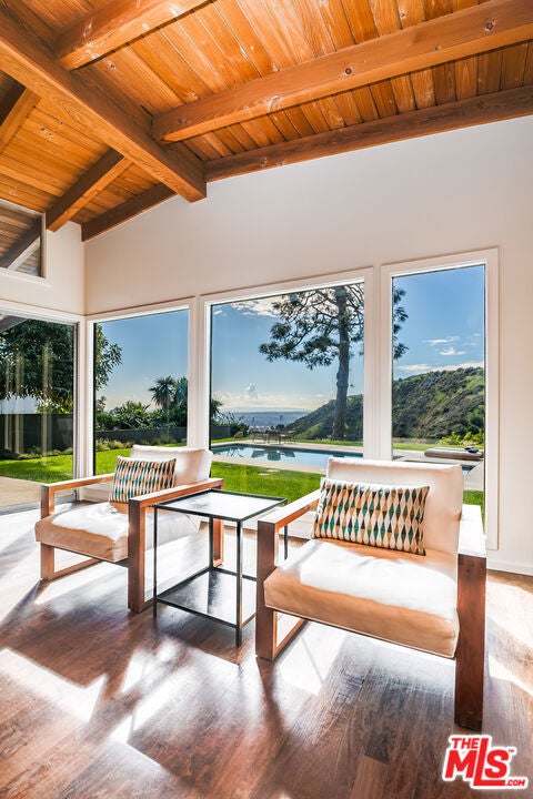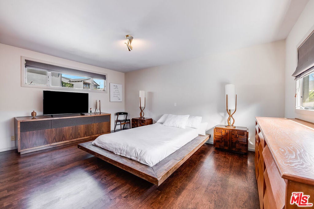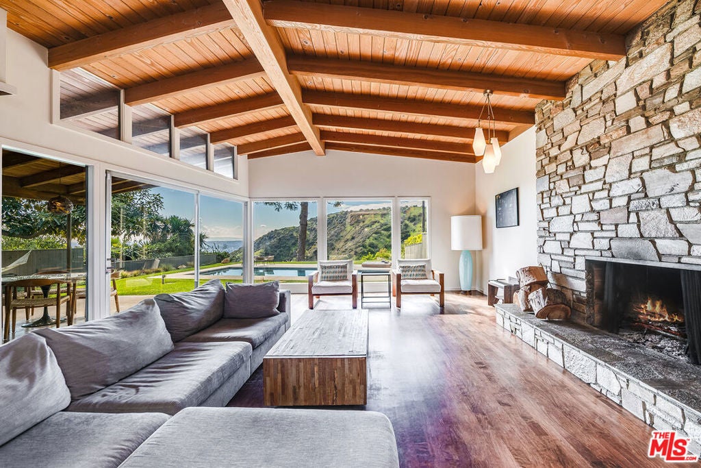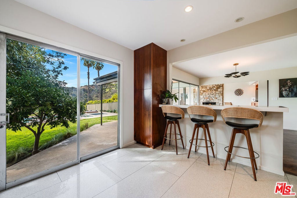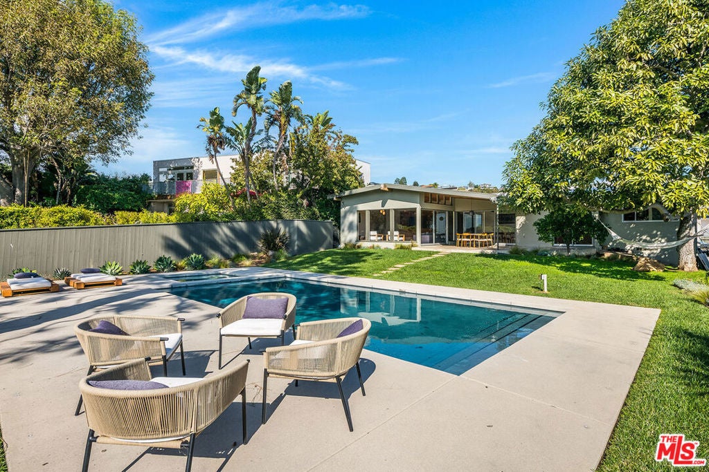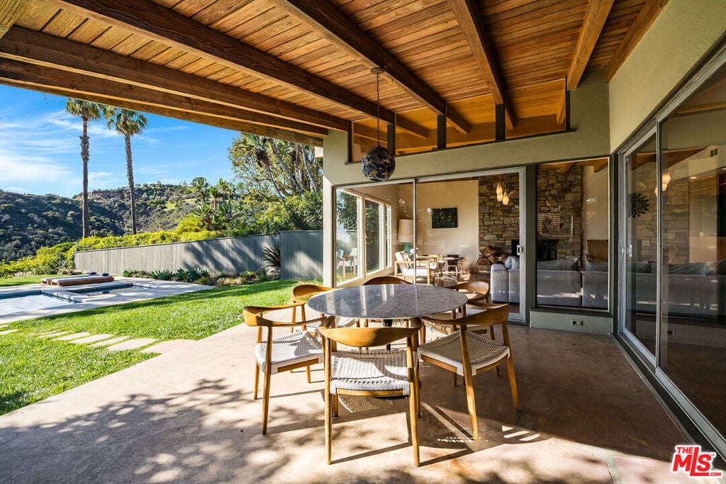 Stunning Mid-Century retreat in prime Outpost Estates, set on a quiet cul-de-sac moments from Runyon Canyon. This private Hollywood Hills escape offers sweeping city views, a beautiful pool with spa, and an expansive flat yard, an ideal indoor/outdoor setting for relaxing or entertaining. A spacious living and dining area showcases an open floor plan with classic 1950s architectural details and walls of glass that frame the views. The remodeled chef's kitchen features all-Miele appliances, Ann Sacks tile, and sleek electronic touch-open cabinetry. The home offers 3 bedrooms and 3 bathrooms, including two generous primary suites, each designed for comfort and privacy, perfect for guests, work-from-home living, or flexible household needs. A 2-car attached garage provides excellent convenience and storage. Located just minutes from the Studios, the Sunset Strip, and the best of Hollywood, this exceptional Mid-Century residence can be delivered furnished or unfurnished to suit your lifestyle. A must-see lease opportunity in one of the Hills' most coveted neighborhoods.