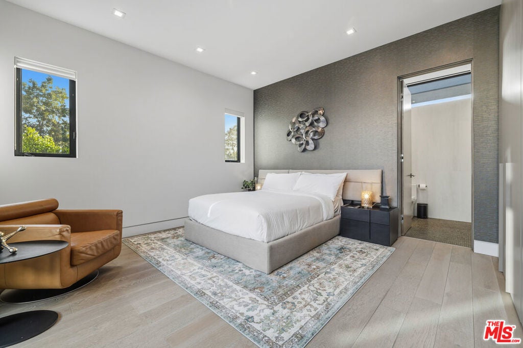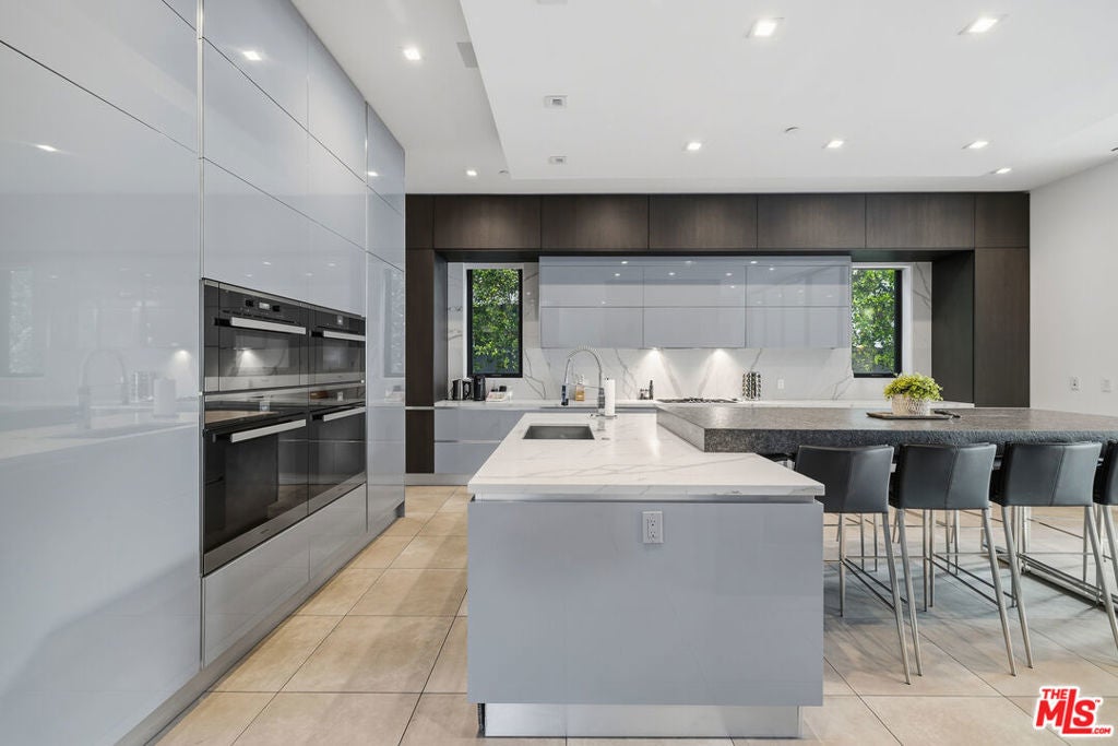 Welcome to this Stunning Property Behind Secure gates in the Heart of Tarzana. This Home was Built in 2018 and has Extremely High End Finishes Throughout. Hardwood Floors, Floor to Ceiling Wine Display, Custom Shades on a Remote in Each Room. Large Island and Big Dining Room, Great for Entertaining. This home Features Two Bedrooms Downstairs and Three Bedrooms Upstairs. All Bedrooms have their own Ensuite Bathroom. Glass Sliding Doors that are Floor to Ceiling, Sitting Area Upstairs and Outdoor Sitting Area Upstairs and off Primary Suite. Lots of Natural Light and Privacy. Property also features a Beautiful Heated Pool, Built in Cabana, and BBQ with a very Large Area of Grass to play and Entertain. Home also features 3 Car Garage, One Single Garage is currently used as a Gym. Driveway large enough to hold 10 cars, Solar Panels for low utility bills, Extensive Cameras and Security. Property Available for Short Term and/or Long Term Lease and Furnished or Unfurnished. This is a One of a Kind Property, not to be Missed.