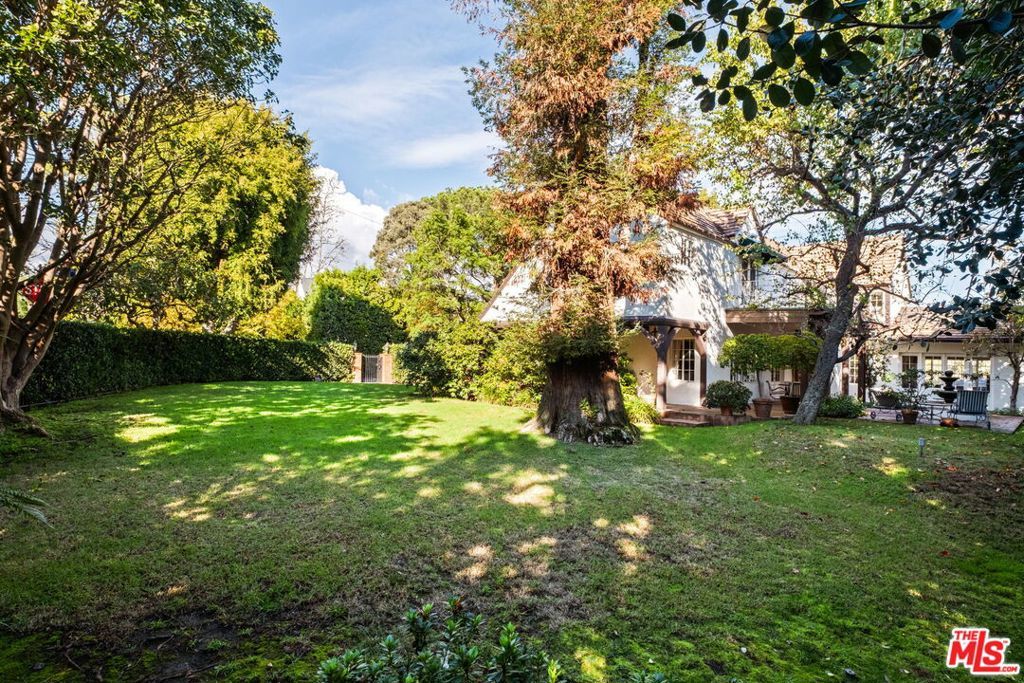 Classic two-story 1930 English beautifully sited on a sweeping corner lot with mature trees and wonderful privacy & tranquility on extremely desirable North Bristol Avenue in prime Brentwood Park. Situated behind gates on over 13,000 square feet of land (not including approximately 5,400 square feet of "city land" on Bristol and Westboro), this timeless home has been enjoyed by the same family for over 50 years. Welcoming entry with graceful staircase leads to well-detailed living room with wrap-around windows & fireplace, formal dining room, and large-scale, sun-filled family room with bar & fireplace that opens to swimmer's pool, patios, expansive lawn and gardens. Four bedrooms and four baths upstairs, including a primary bedroom with dual baths, plus a detached guest room with bath. Gated circular drive, covered front porch, hardwood floors, crown mouldings, steel casement windows, clipped ceilings and gorgeous mature trees all add character and charm to this warm and inviting home. Rare opportunity to restore or remodel an enchanting home from a bygone era, or to build a magnificent estate on a fantastic lot in one of the most lush, peaceful and beautiful spots in the very best neighborhood on the Westside.