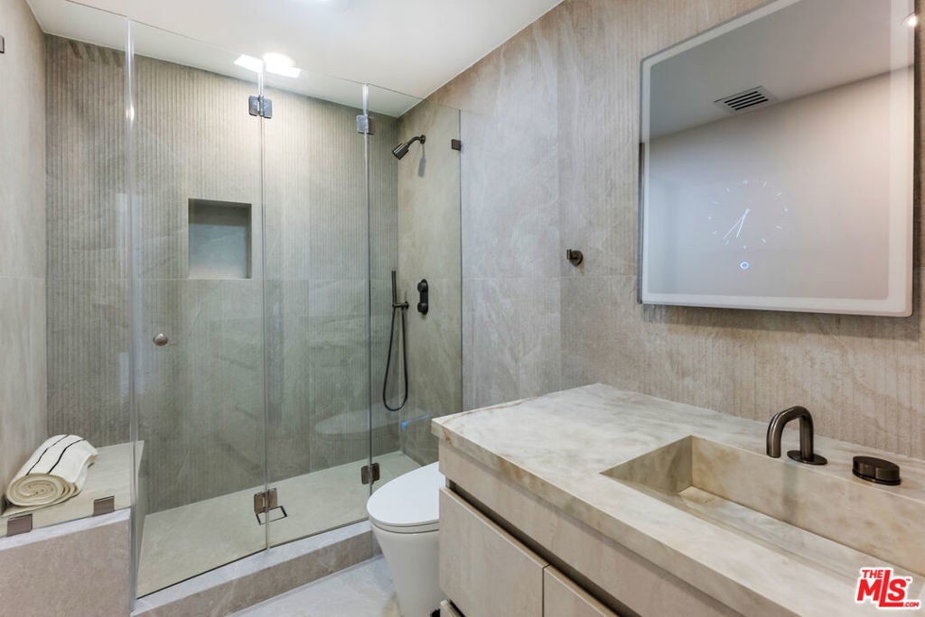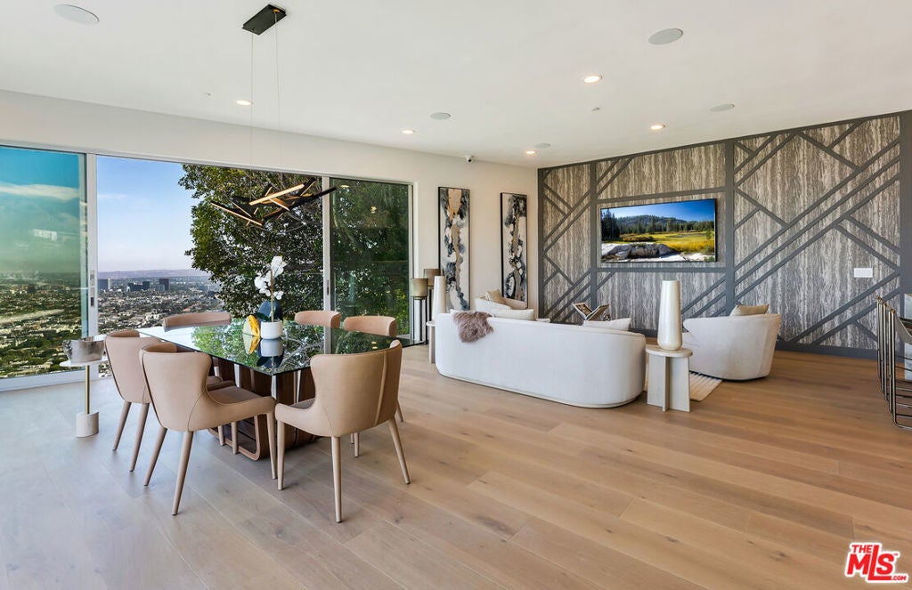 Prime Sunset Strip, breathtaking VIEWS. Experience the pinnacle of luxury living in this meticulously remodeled home, completed in 2025. This stunning residence seamlessly blends modern sophistication with unparalleled comfort, offering an exceptional lifestyle opportunity in a neighborhood favored by celebrities. The home features five bedrooms, five bathrooms, plus an office, a powder room, and a dedicated movie theater ensuring ample room for relaxation and entertainment. Indulge in breathtaking panoramic views from multiple private decks. The residence is equipped with a state-of-the-art Control4 smart home system, seamlessly integrating with stylish modern decor for ultimate convenience and efficiency. Enjoy the convenience of two enclosed parking spaces and additional parking in the private driveway. There's even potential to add a roof deck (buyer to verify all details and buildability). Don't miss out on this incredible opportunity. **attached junior ADU** The home is available to purchase with beautiful furniture!