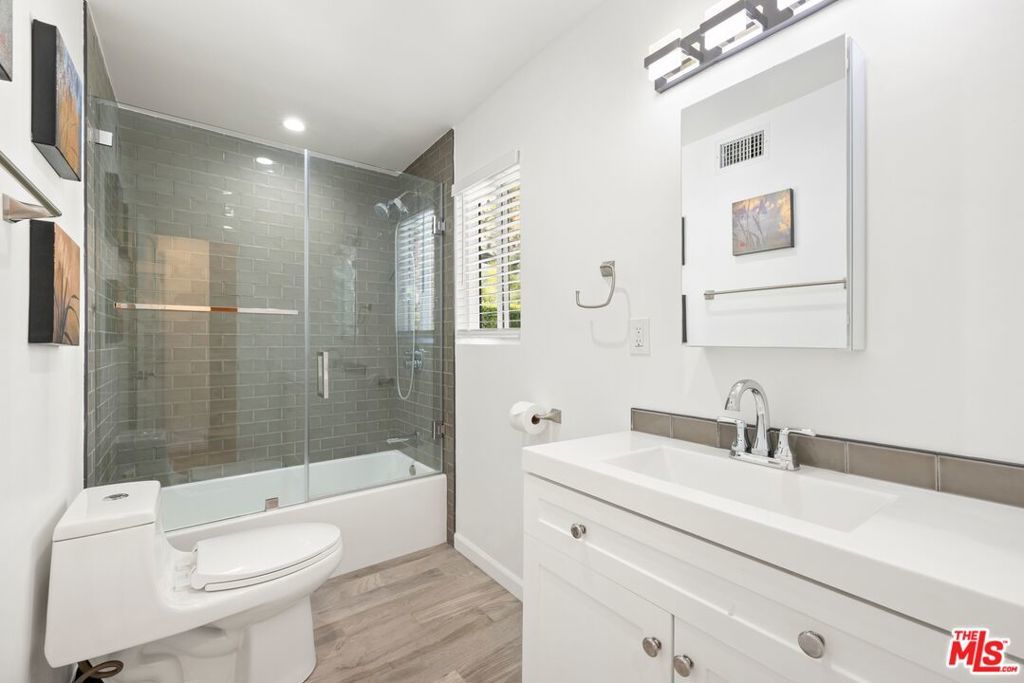 Nestled in the Hollywood Hills is this beautifully renovated Nichols Canyon-adjacent view hideaway, offering sweeping vistas of the hills, canyons, treetops, and bustling city sprawl. Large picture windows and walls of sliding glass throughout welcome natural light inside. The living room includes access to a wraparound balcony and oak floors that flow into the remodeled kitchen, appointed with a farm sink, all Viking appliances including range with hood, copious cabinetry, breakfast bar ledge, and glossy subway tile backsplash. Bedrooms are spacious and bright, and the primary also opens to the outside lounging and viewing terraces. Bathrooms are also updated and pristine, with stylish tiling, fixtures, and hardware. Entertain, barbecue, and dine al-fresco from a trellis-covered rooftop patio with privacy shade or relax under California skies with the lovely hillside as backdrop. Stackable laundry is convenient to bedrooms, and covered parking includes a carport. Welcome to this fantastic location central to all, from West Hollywood and the Sunset Strip to Hollywood, the Valley, and major film studios, mere moments to fine dining, hiking on Runyon, shopping along Melrose, thriving nightlife, and more. Some photos are virtually staged.