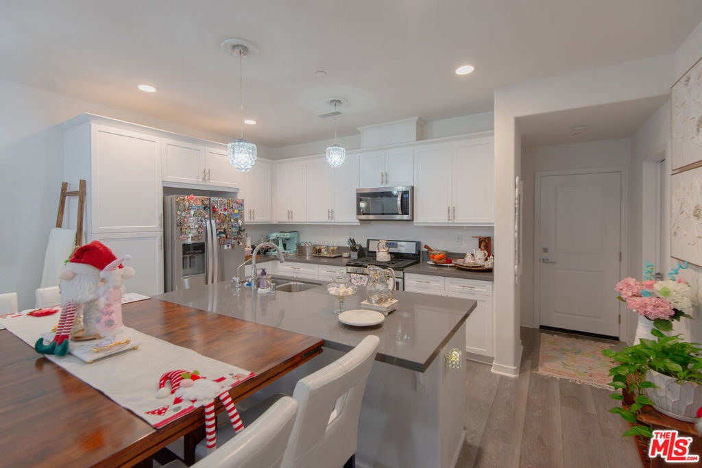 Experience refined Valencia living at this beautifully designed Santa Clarita home. Thoughtful details create an effortless sense of comfort, from the elegant white shaker cabinetry and concrete-gray countertops to the designer-selected kitchen finishes and stainless steel appliances. The serene primary suite offers a spacious walk-in closet, double vanities, and a spa-inspired bath with white cultured marble. Relax or entertain on your private outdoor patio and enjoy the convenience of integrated smart home features. Situated in one of Valencia's most desirable communities, this home provides easy access to scenic trails, premier parks, top-tier healthcare, and upscale shopping and dining at Valencia Town Center and The Patios. A rare opportunity to enjoy style, function, and luxury in the heart of Santa Clarita. Schedule your private showing today.