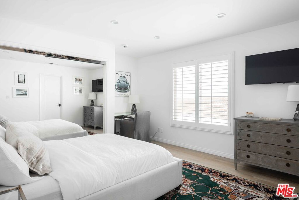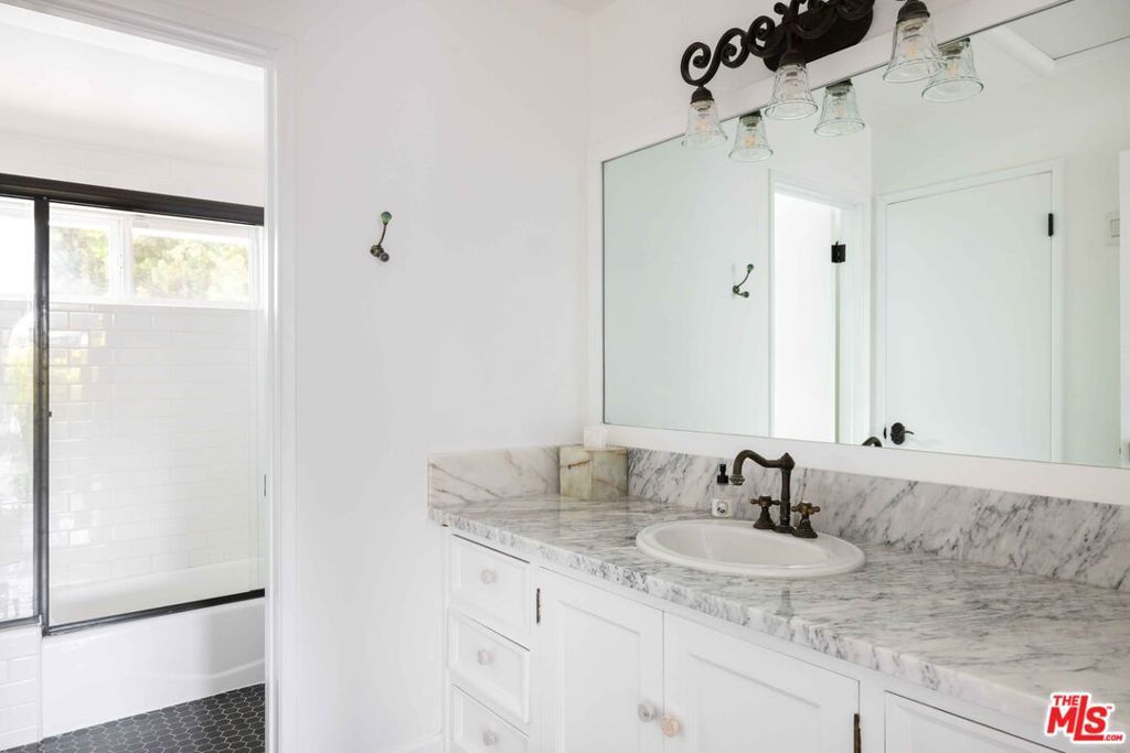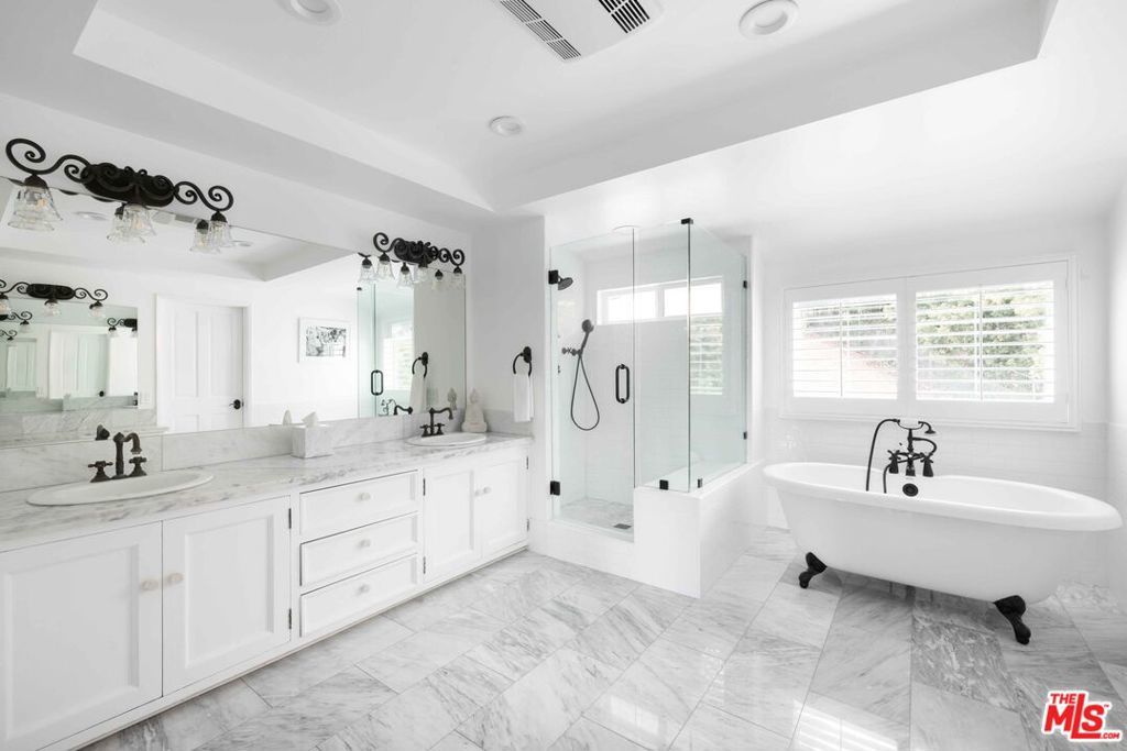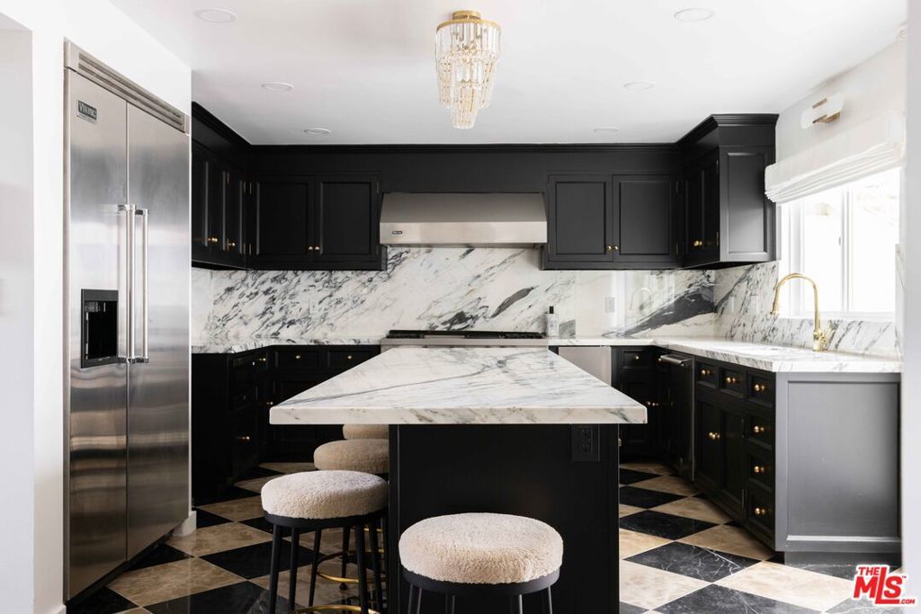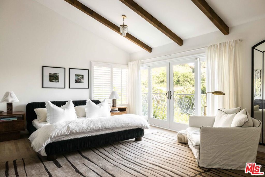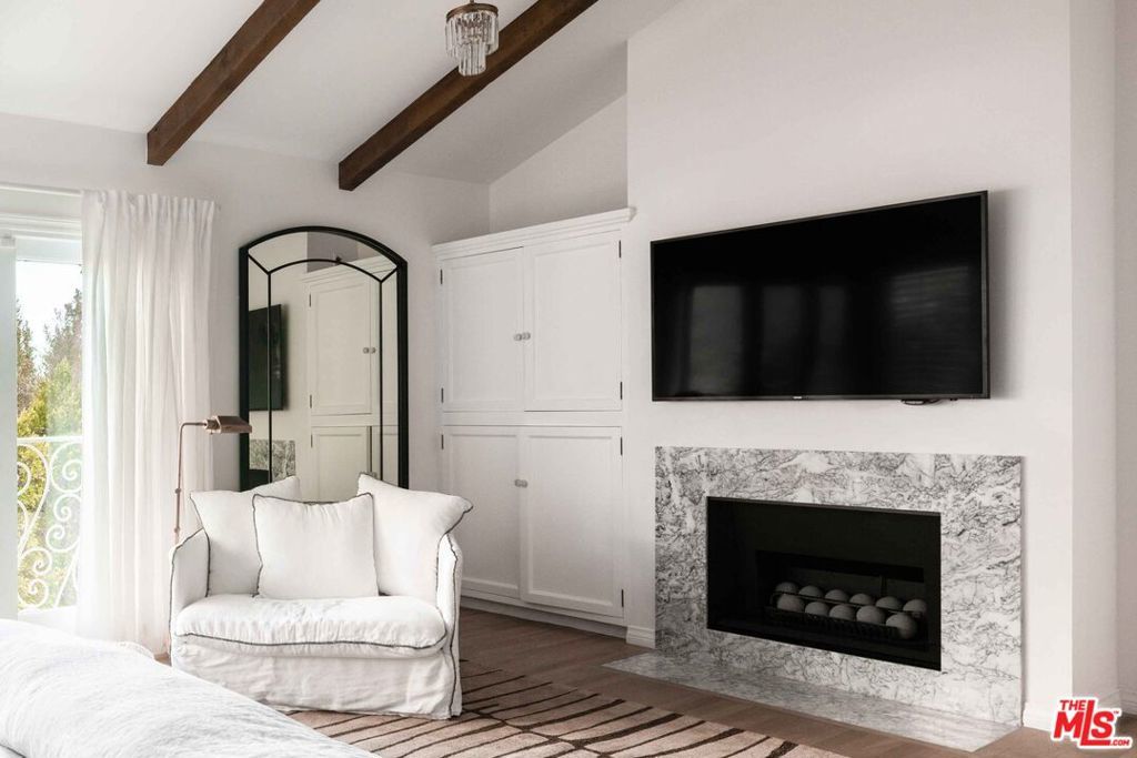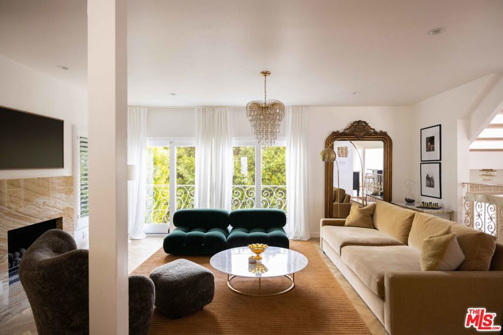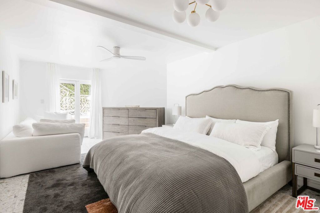 Tucked away in a serene four-home cul-de-sac off San Ysidro Drive, this recently renovated estate offers refined living just minutes from the heart of Beverly Hills. Available fully furnished or unfurnished and thoughtfully equipped, it's truly turnkey for effortless move-in. The main residence captivates with striking curb appeal expansive windows, elegant ivory travertine steps, and custom cream wrought iron accents. Inside, the kitchen makes a dramatic statement with Nero Marquina and Emperador marble in a harlequin pattern, a 9-foot center island with shearling-upholstered barstools, slab marble backsplash, Viking appliances, commercial-grade range, unlacquered brass hardware, and a walk-in pantry. Designed for both comfort and entertaining, the formal dining and living rooms feature a camel-toned quartzite fireplace, full bar, antique hutch, and sliding doors at both ends for seamless indoor-outdoor flow. The powder room offers a moody, jewel-box feel with Nero Marquina and Rojo Alicante marble and an original overmount copper sink. Every space is curated with natural, tactile materials, solid hardwood floors, wool rugs, linen drapery, cotton velvets, boucl, hides, and crystal chandeliers all enveloped in a warm, inviting palette. The primary suite is a true retreat with vaulted ceilings, a marble fireplace, walk-in closet, and a Carrara marble bathroom featuring a clawfoot soaking tub. On the walkout lower level, find terrazzo flooring throughout, a spacious guest bedroom with en-suite bath clad in Calacatta Green, Calacatta Gold, and Picasso Quartzite, plus a full laundry room and access to the attached garage. Outdoors, the private backyard oasis boasts a saltwater pool and spa, ivory travertine patio, Viking grill, and al fresco dining for ten. The guest house is not included in this lease offering and is being offered for lease separately.