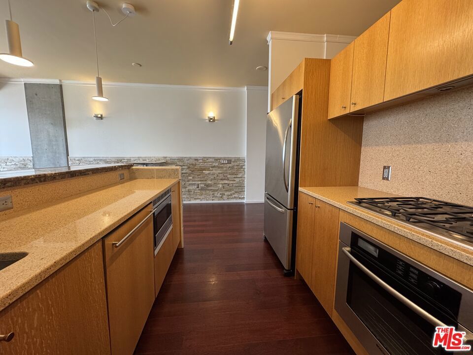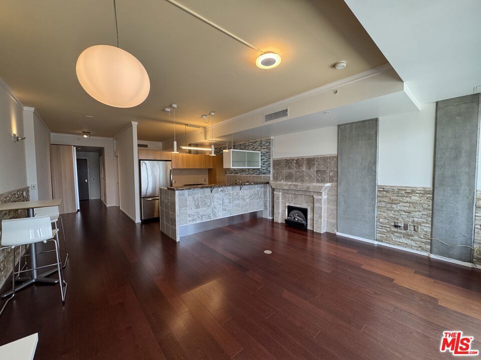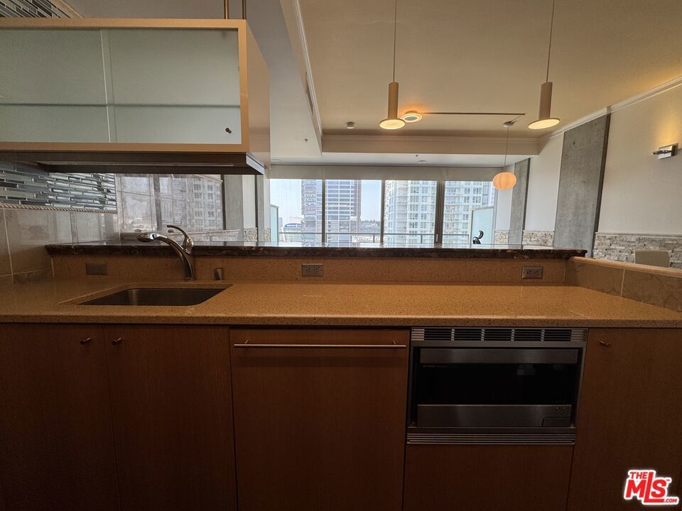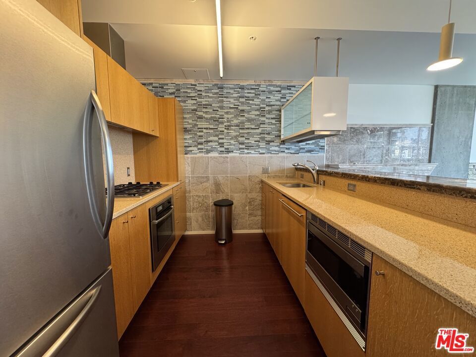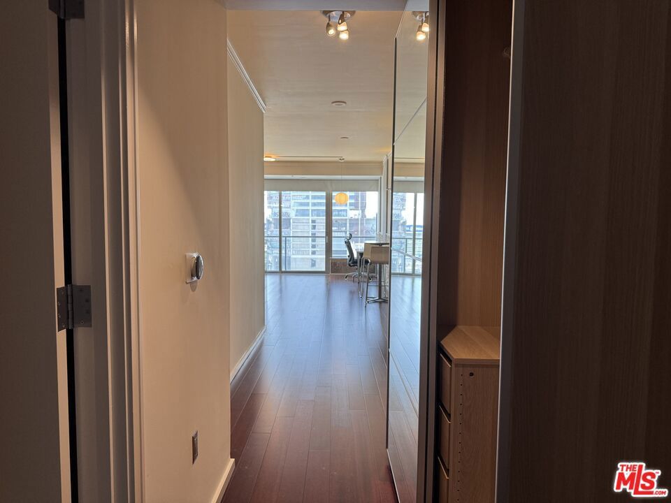 Welcome to your urban oasis at 1155 S Grand Avenue, EVO! This stunning 1-bedroom, 1-bathroom condo is located in the heart of Downtown Los Angeles, offering breathtaking views of the iconic Crypto.com Arena and the vibrant cityscape. Inside you'll discover a modern living space adorned with hardwood flooring creating the perfect ambiance for relaxing evenings. The open-concept layout seamlessly connects the living area to a gourmet kitchen, complete with built-in stainless steel appliances, custom cabinetry, and elegant countertops. The spacious bedroom features ample natural light and a generous closet, while the contemporary bathroom boasts high-end fixtures and finishes, ensuring a spa-like experience every day. Residents of EVO enjoy access to a wealth of amenities, including a rooftop resort pool & spa, lounge, fitness center, BBQ grills, sundeck, and 24-hour concierge service. With its prime location, you'll be just moments away from world-class dining, entertainment, and shopping, making this condo the ultimate urban retreat. Don't miss your chance to live in one of DTLA's most sought-after buildings.