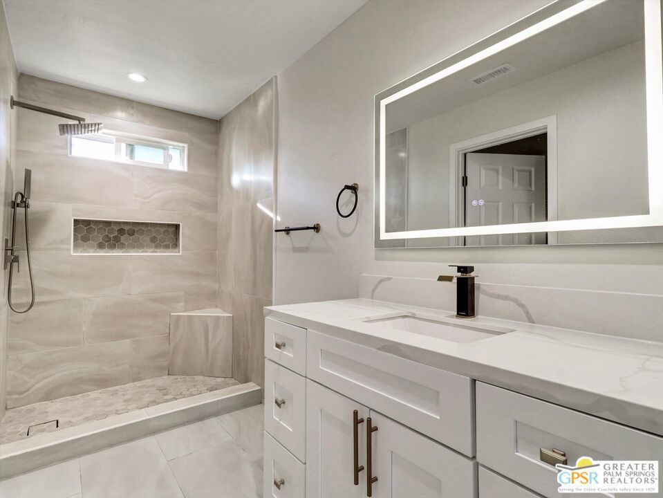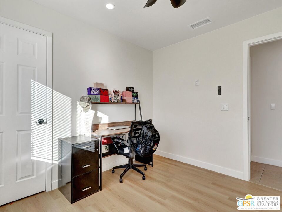 Beautiful home in the Desert Hot Springs area is truly a sight to behold. With 4 bedrooms and 2 bathrooms, it's perfect for families or those in need of extra space. The open floor plan is both inviting and practical, with plenty of natural light and ample room for entertaining. The beautiful fireplace adds a cozy touch to the living space, making it the perfect spot to curl up on a chilly night. The spacious rooms throughout the home are certainly a highlight, providing plenty of options for customizing the space to fit your needs. And with new flooring, cabinets, roof, and air conditioning, you can be confident that this home is move-in ready and built to last. The kitchen is a true gem, with modern appliances and plenty of cabinet and counter space. The bedrooms are spacious and comfortable, with ample closet space for all of your belongings. And the bathrooms have been updated with modern fixtures and finishes. if you're looking for a stunning single family home in the Desert Hot Springs area, this is the one for you. With its inviting open floor plan, beautiful fireplace, and updated features throughout, there's no need to look any further. This home has been virtually staged to illustrate its potential. Desert Hot Springs Elemetary and High School across the street.