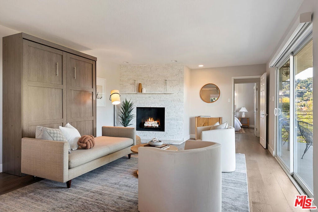 Experience spectacular city-light, canyon, and mountain views from this tastefully remodeled traditional home located on a quiet street in the hills of Sherman Oaks. Step inside to a light and airy living space with an open-concept floor plan designed for everyday living and entertaining. The living and dining area features a fireplace and glass doors that open to an expansive terrace with forever views. The gourmet kitchen offers an island, stainless steel appliances and a breakfast area. The large primary bedroom suite includes a second fireplace, a sitting area, a covered view terrace, and a luxurious bathroom with a soaking tub, glass shower, and dual vanities. There is also a huge walk-in closet. Two additional bedrooms also have walk-in closets and their own bathrooms. The attached garage provides direct entry to the home, with additional off-street parking in the driveway. Glenridge Drive is known for having some of the best views in Sherman Oaks.