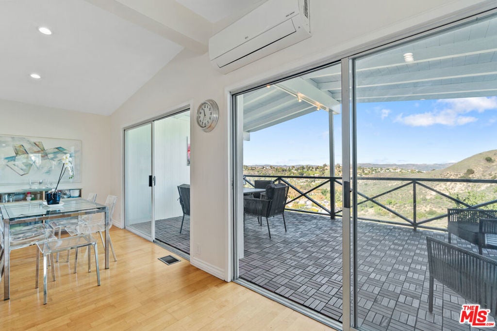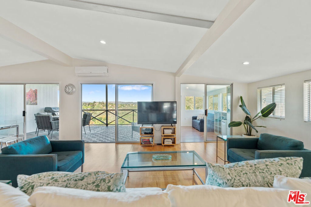 Welcome to one of the most captivating homes in Calabasas Village, where panoramic canyon views, expansive interiors, and flexible living spaces come together to create something truly one-of-a-kind. Set on a premium perimeter lot, this 4-bedroom, 4-bath residence with fantastic bonus rooms offers an uncommon combination of privacy, space, and scenery, all within one of Calabasas's most charming and convenient communities. Inside, an expansive open-concept living and dining area features high ceilings, abundant natural light, and seamless indoor/outdoor flow to the oversized patio -- an entertainer's dream. With space for lounging, dining, grilling, and watching sunsets melt across the mountains, the patio feels like an outdoor living room and serves as the true heart of the home. Just off the main living area, a bright bonus room wrapped in windows showcases the same sweeping views -- an ideal flex space perfect as an office, art studio, playroom, reading lounge, or guest retreat. The kitchen is spacious and bright, and the separate laundry room adds everyday convenience. Nearly every main room captures the stunning canyon vistas, creating an atmosphere of calm throughout the home. The high-ceilinged primary suite is generously sized and includes a private entrance and an expansive en suite bathroom with a large closet area and soaking tub. Another bedroom has its own bathroom, bonus room, and private entrance. The property's layout and exterior access options from three of the four bedrooms makes it uniquely well-suited for multigenerational or large family living. A large storage room provides even more versatility and can easily be converted into an additional bedroom, office, or studio. Additional features include a covered carport with plenty of storage and room to park up to five cars, and a newer ductless mini-split HVAC system. The property is available furnished or unfurnished, per the buyer's wishes. Calabasas Village offers peaceful, resort-style living with a pool and spa, clubhouse, fitness center, tennis court, scenic walking paths, and beautifully maintained grounds. Monthly fees cover space rent and include water, sewer, high-speed internet, trash, cable, and landscaping. The magical setting is just minutes from The Commons, award-winning schools, hiking trails, restaurants, and convenient freeway access -- an ideal blend of idyllic and accessible. Homes with views like this rarely come to market. Come experience the magic of Calabasas Village living.