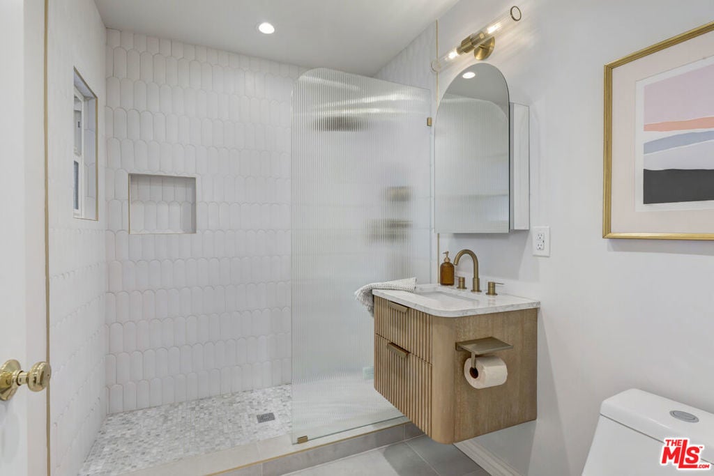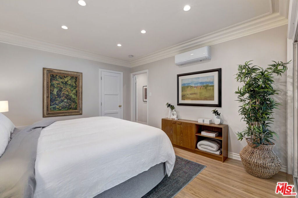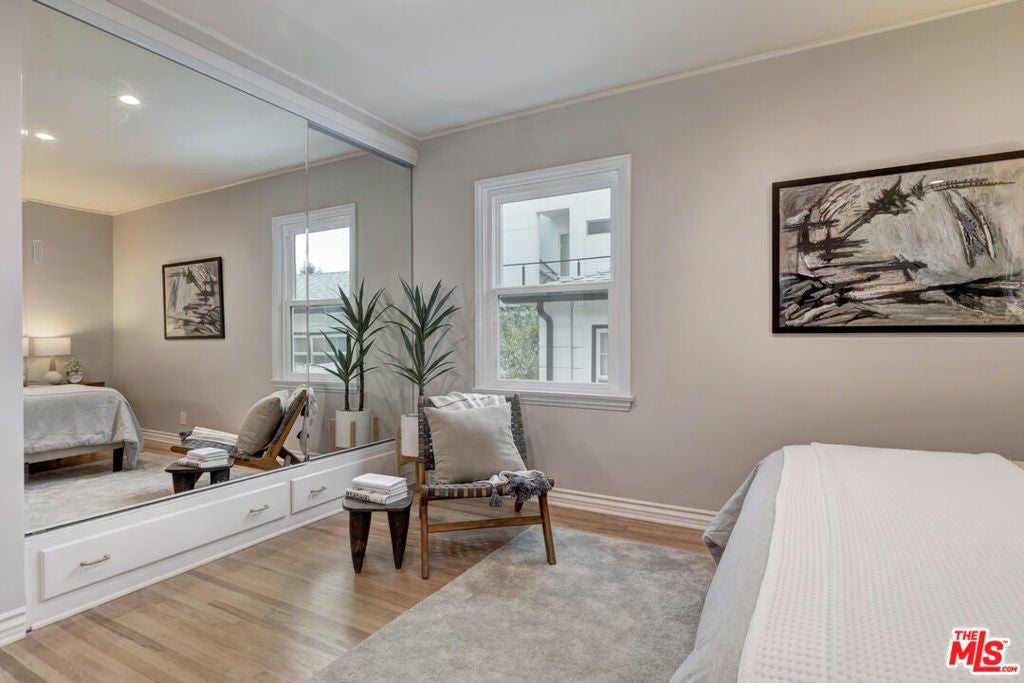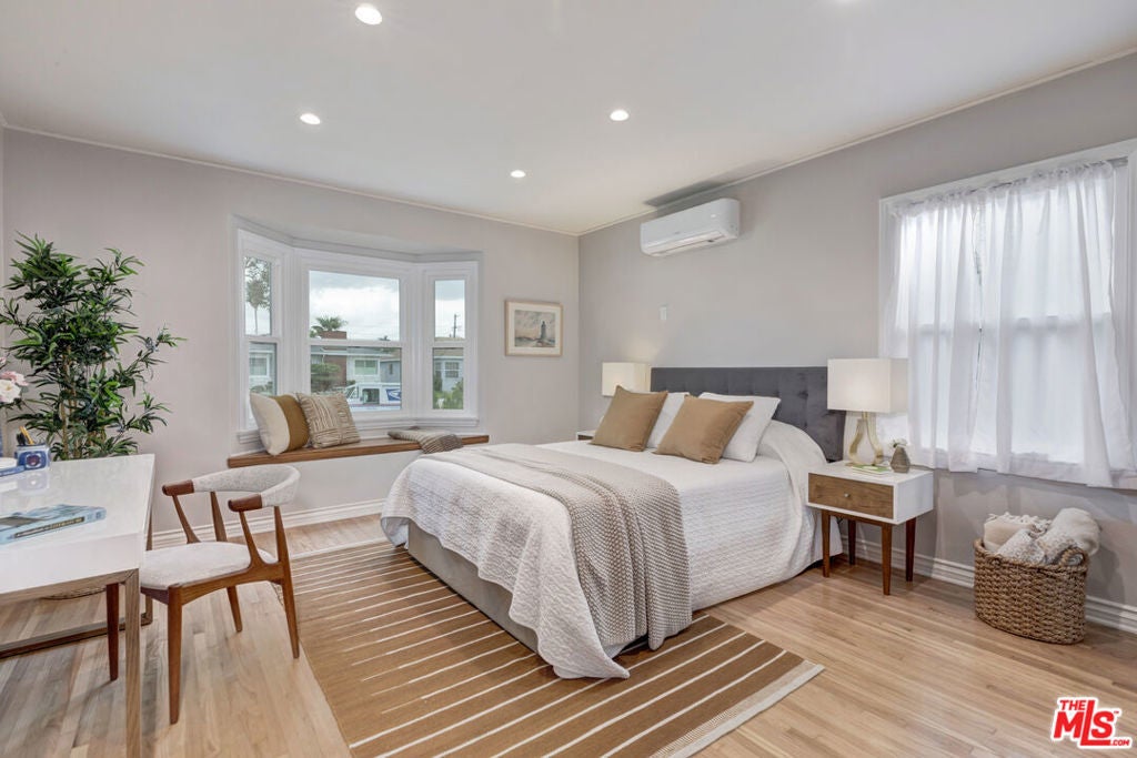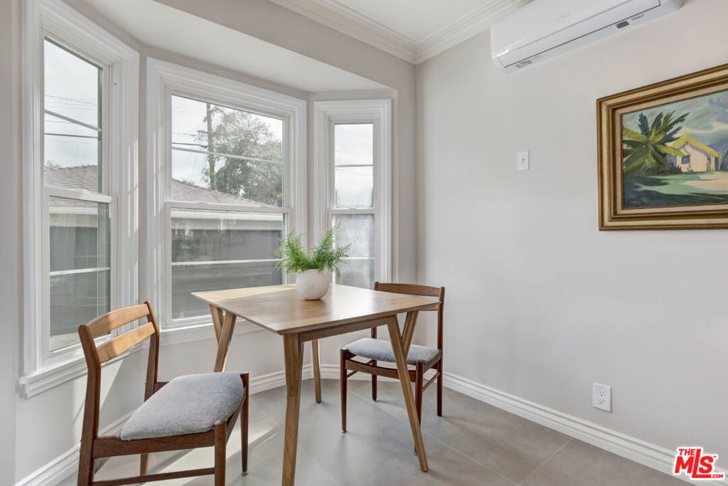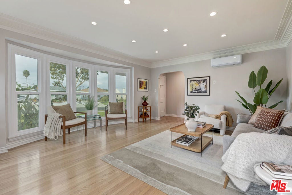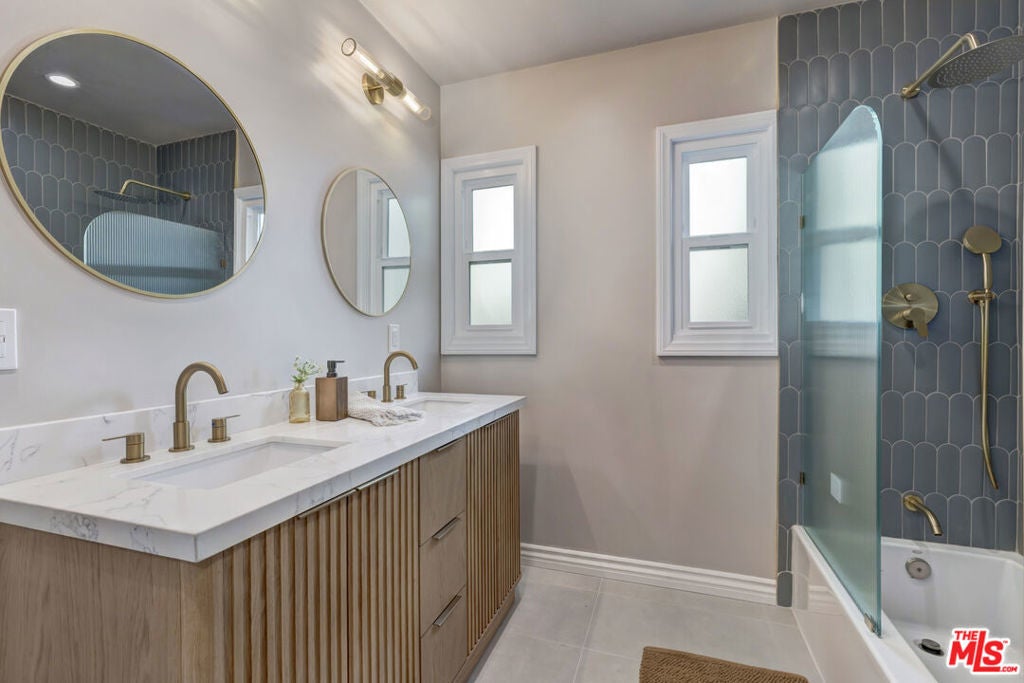 Impeccably and thoughtfully revitalized, this traditional home combines its original 1947 historic charm with modern updates and an open, entertaining floor plan, totaling 1,638 sq ft on a 7,023 sq ft flat lot with a detached 2-car garage. The home features custom touches, including original, elegant multi-draped archways in the sizable living room and dining rooms, recessed lighting, and beautiful hardwood floors throughout, recently uncovered and refinished for the first time in over 60 years! The living room is light filled, with a large, newer multi-panel bay window, a gorgeous decorative fireplace with a wood mantel (see report for minor repairs), and the formal dining room has the original, beautiful wainscoting and crown molding and opens to the kitchen! The kitchen has been stylishly remodeled with custom cabinetry, quartz countertops, a newer stainless-steel stove, refrigerator, and dishwasher, and handcrafted porcelain tiles. It features a breakfast nook with a multi-panel bay window that overlooks the expansive yard. There is plenty of storage, including a walk-in laundry area, a separate linen closet, and a coat closet. The three spacious bedrooms all have wood floors, crown molding, newer windows, and sizable closets. The main bathroom is gorgeously remodeled with double sinks and a shower/ bathtub. The primary bedroom has an elegant ensuite bathroom with stunning ceramic and marble tile, and large sliding glass doors that exit to a covered hardscaped flagstone patio, great for al fresco dining, a lounge area, and a large backyard that is perfect for indoor-outdoor enjoyment. The detached garage is excellent for the car enthusiast, studio artist, or ADU down the road. The home has copper plumbing, an updated electrical panel, and is in a sought-after neighborhood. This centrally and conveniently located home is in a quiet, vibrant neighborhood, with easy access to shopping, grocery stores, restaurants, and parks, and a quick commute to Culver City, Santa Monica, and LAX. Nearby is Rancho Cienega Recreation Center and Kenneth Hahn Park, offering hiking trails, picnic areas, and panoramic views.