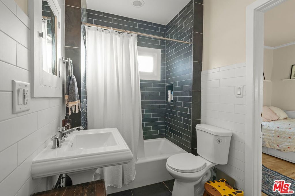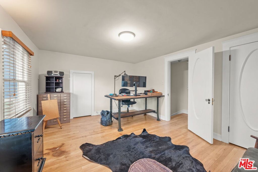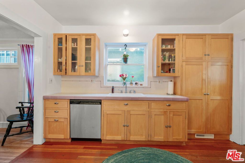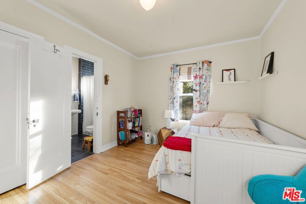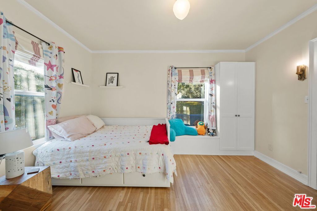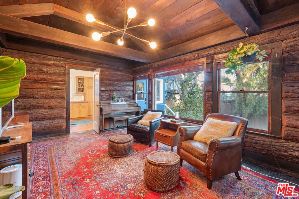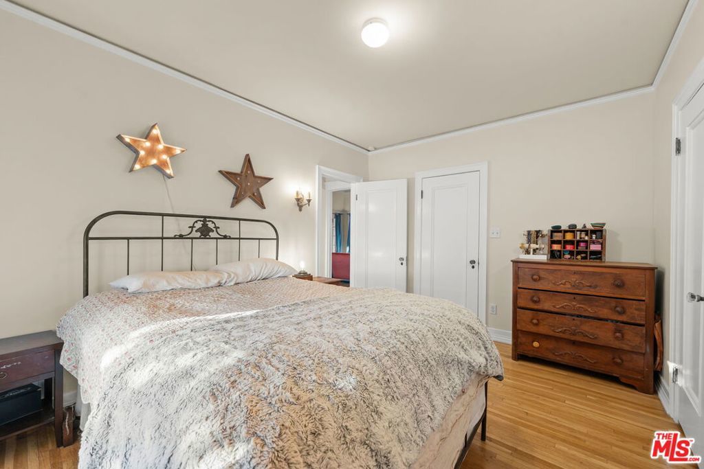 Welcome home to this charming 1920's California Spanish bungalow located in Silver Lake. Larger than most homes in the neighborhood, 646 N. Dillon is ready to become your own private sanctuary. With tremendous character, the house includes a must-see rustic family room and a bonus room above the garage. Entering the home through a covered porch, you're greeted by a light-filled living room featuring a high coved ceiling, original hardwood floors, and a Batchelder-inspired decorative fireplace. A draped arch opening leads to the large formal dining room, also with a coved ceiling. The spacious kitchen and adjoining utility room with washer, dryer, and wash basin offer ample opportunity to expand or customize, and elevate every culinary endeavor. The warm "log cabin" style family room has a vaulted ceiling with exposed beams and overlooks the backyard, creating an ideal space for relaxing and entertaining friends and family. Both well-sized bedrooms with crown molding are downstairs and share a recently remodeled Jack-and-Jill bathroom. The bonus room is ideal for a home office, guest bedroom, or fitness room. The private backyard features mature landscaping and access to the attached two-car garage (no direct access to the house). Surrounded by a native California garden and located close to Silver Lake's best restaurants, shops, parks, and the reservoir, this property is perfect for buyers seeking character, charm, and the opportunity to create a very special retreat. This is a true gem waiting for its next owner.