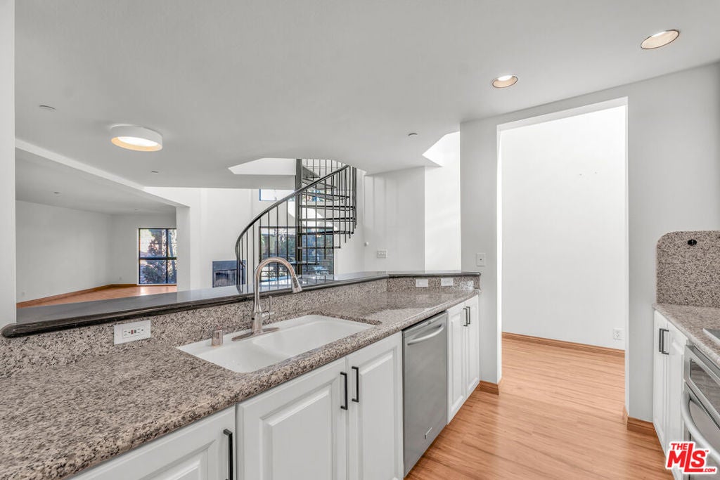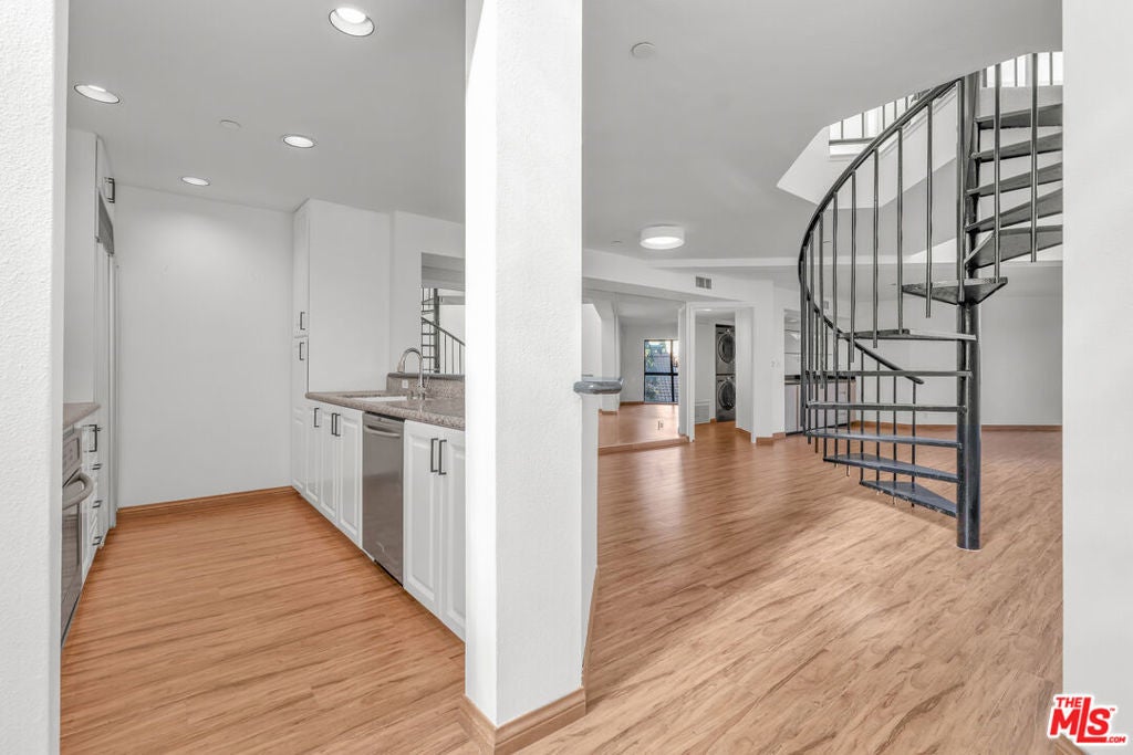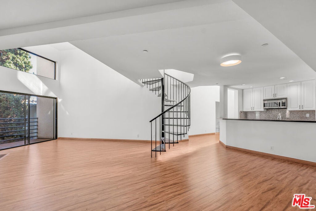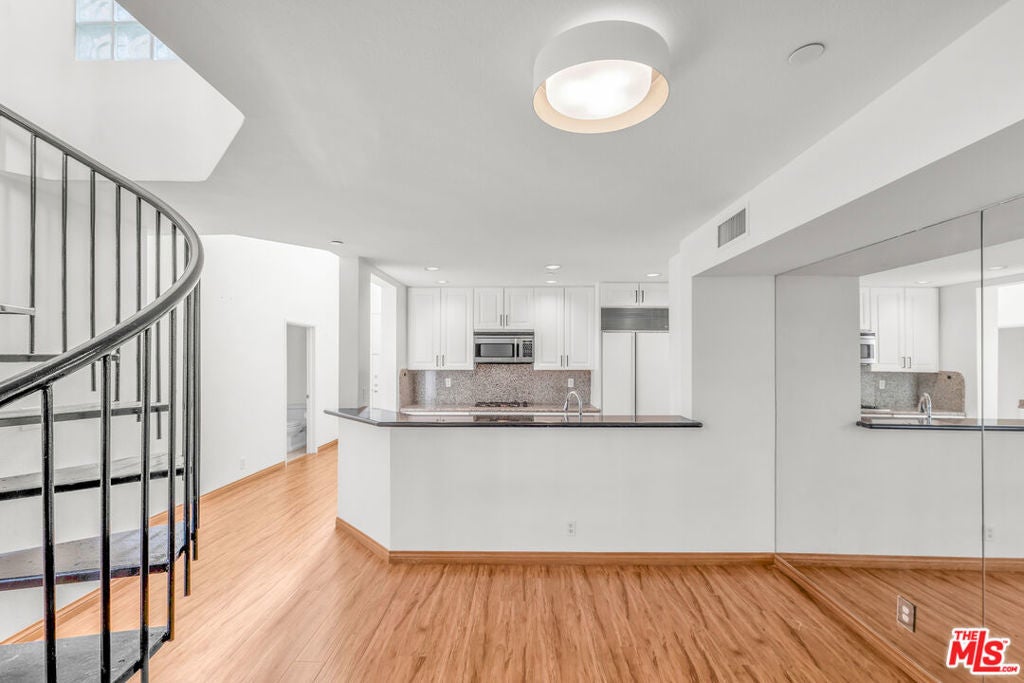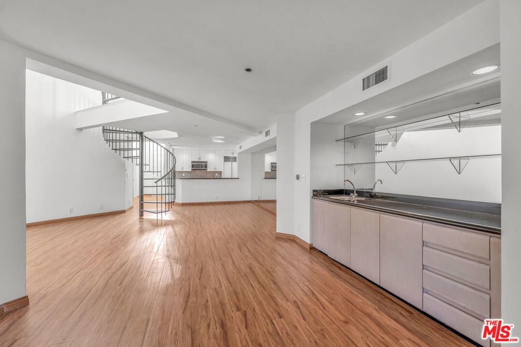 Welcome to this New York Style Architectural Penthouse in Brentwood. Discover urban living in this distinctive 2-bedroom, 2.5-bathroom, two-story townhouse, shy of 1700 SF living space. Bold lines, dramatic volume, and exceptional natural light define the main living spaces, creating a unique ambiance rarely found on the Westside. The thoughtful floor plan offers two bedroom suites on two separate floors, providing exceptional privacy and flexibility for elevated living, guests, or a polished work-from-home setup. The main level opens to a private balcony, perfect for morning coffee or evening unwinding. A separate Den area with a wet bar creates a cozy spot for intimate gatherings. In unit washer & dryer on the first floor provides ease & comfort. A unique spiral staircase leads you to the second floor of this unit where you find the Primary suite and a private rooftop deck offering a charming open-air retreat, ideal for lounging or enjoying Brentwood's peaceful surroundings. Set within a distinctive architectural building on a quiet street yet moments from San Vicente's boutiques, cafes, and eateries. Amenities are: Gym, Storage area, 2 Tandem Parking Spots. The unit is currently vacant and Move-in Ready.