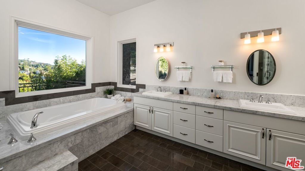 Welcome to this modern hillside retreat tucked into the iconic Beachwood Canyon. The home features over 5,300 sqft and rare 6 beds with bright, open spaces with ebony stained oak floors, high ceilings, and large windows that bring in steady natural light and frame peaceful canyon and Griffith observatory views. A well-appointed chef's kitchen with Viking appliances connects directly to the main living and dining areas, creating an easy flow for everyday use and entertaining. The primary suite provides a spacious layout with a spa-style bath and peaceful canyon outlooks, while each additional bedroom includes its own en-suite bath for convenience and privacy. The gym room is accompanied by a large steam shower perfect for health and wellness. Multiple outdoor seating areas, elevator, outdoor workout area, rooftop deck and a private spa extend the living space outdoors, ideal for relaxing or hosting. A rare collector's garage with a parking lift adds practical value for car enthusiasts. Located just minutes from Hollywood and Beachwood Village, the property delivers a curb appeal with a balanced lifestyle and quiet hillside living with quick access to restaurants, studios, and city amenities. It would be very hard if not impossible to build a house of this size and bedroom count in this neighborhood with current construction costs. Your getting scale, style, and value all in one move.