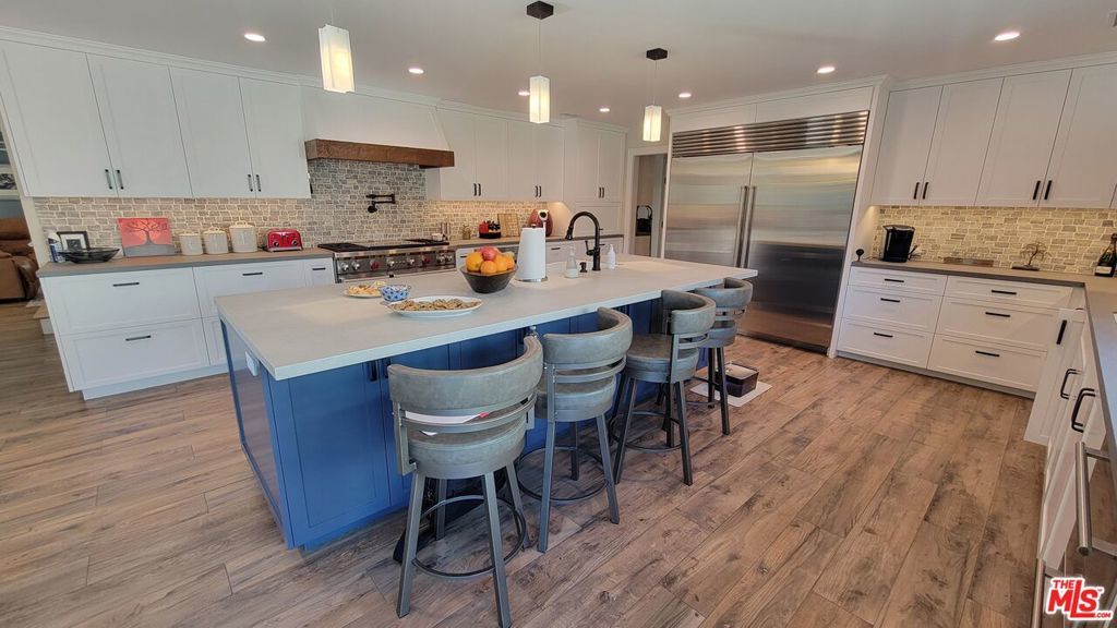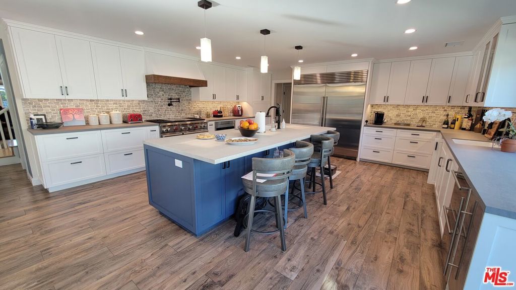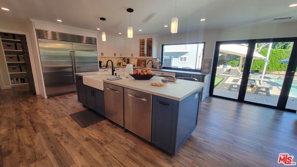 Discover the perfect balance of history, luxury, and modern family comfort in this truly exceptional unfurnished, 5BD / 5BA, 3,216 sq ft residence on a sprawling 14,000 sq ft lot. Originally the 1920 John Haskell Farmhouse, the property has been thoughtfully transformed with a Modern Farmhouse Chic aesthetic, creating a secure, private compound ideal for refined living and effortless entertaining. Inside, the inviting Primary Suite features a custom large closet and a spa-like bathroom with a dual-sink vanity and an oversized soaking tub. A separate spacious downstairs guest suite offers its own full bath and closet, while three additional bedrooms upstairs provide flexibility for family, guests, or office use. The heart of the home is the gourmet kitchen, equipped with a Wolf double oven, Sub-Zero freezer and refrigerator, and an impressive 10-ft island, perfect for casual meals, homework sessions, or gathering with friends. A formal dining room easily accommodates larger dinner parties and special occasions. Outdoor living shines with an expansive front lawn ideal for children and pets and a spacious backyard retreat featuring a 35' x 35' heated Baja step pool, a Viking BBQ with mini-fridge, and a fire-pit lounge area. Includes a dedicated pool bathroom with shower for convenience. The property is Smart Home and is fully secured with a gated driveway, keyless entry system, monitored alarm, and exterior security cameras. Additional highlights include driveway parking for six cars, Tesla charger, and a one-car enclosed garage with remote entry. Located just minutes from K-8 Hesby Oaks Charter School, local restaurants, and shopping, with easy access to the 101 and 405 freeways.