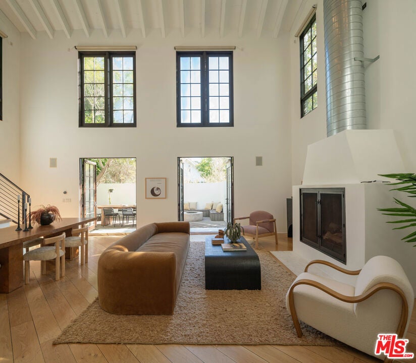 Incredible Architectural Masterpiece in an A triple plus location just half a block from Abbot Kinney. This thoughtfully updated and impeccably designed home offers 3 bedrooms and 3 bathrooms plus an additional detached guest area. Designed by a prominent interior designer and beautifully maintained, the interior features crisp white walls, thirty-foot bow truss ceilings and a striking fireplace with an exposed stainless steel flue. A spacious loft overlooks the great room providing flexible living space. Outdoors, enjoy a fire pit with built-in seating, a beautifully landscaped yard, and a Venice must: a spa area with a cold plunge and sauna. Located steps from Abbot Kinney's restaurants and shops, and minutes from the beach, this gated property offers privacy, security and the ultimate Venice lifestyle.