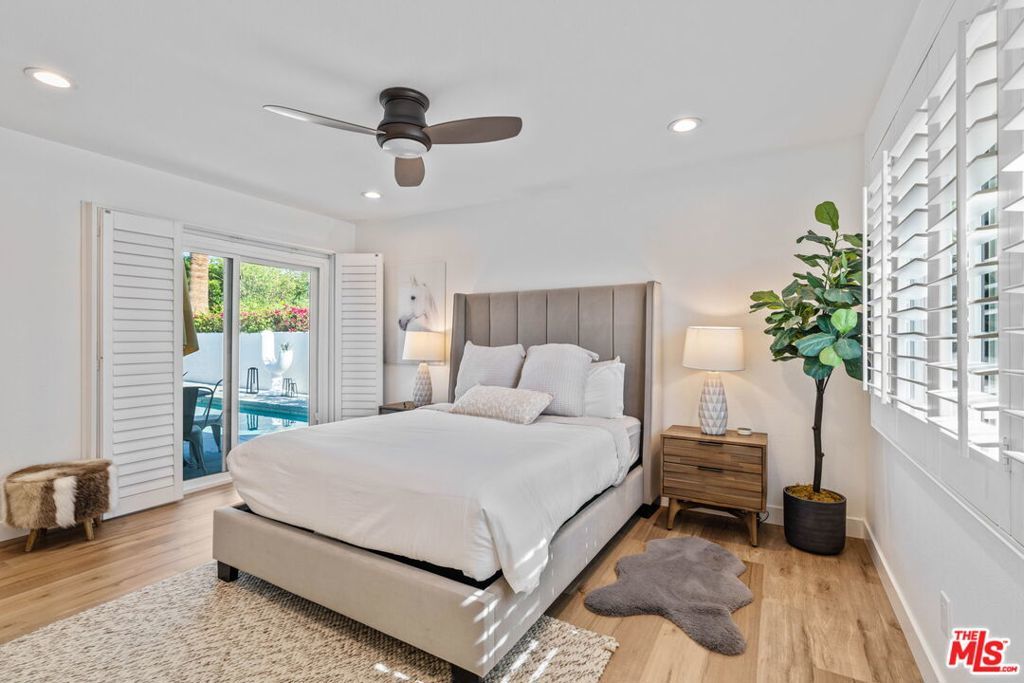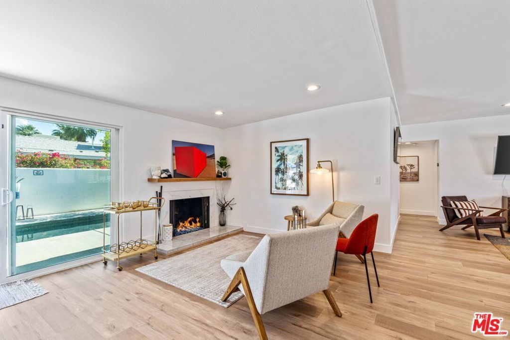 Beautifully Remodeled Mid-Century Oasis. Tucked in the heart of Movie Colony East, this thoughtfully upgraded and beautifully furnished 3-bedroom, 2-bath retreat is move-in ready for Summer. Recently renovated/updated with new fixtures, roof, water-proof floors, electrical, plumbing, pool equipment, HVAC, double-pane windows, and smart home systems including a Nest thermostat and remote-controlled lighting. Manicured fruit trees and zen-style hardscaping welcome you to the bright open floor plan equipped with a contemporary designer finishes, blue glass stone fireplace, wide-plank floors and recessed lighting throughout. The upscale chic kitchen features an oversized island that anchors the space with waterfall-edge quartz counters, stainless steel appliances, and custom cabinets with ample storage space. The primary en-suite features a remodeled bathroom, tranquil views of the pool and mountains, and easy access to the backyard through the sliding glass door. The guest bedrooms are airy and bright with one having direct access to the backyard. The oversized one-car garage has a separate side-yard entrance and a separated laundry room with updated washer/dryer and sink. The oasis style backyard features scenic mountain views and is equipped with a resurfaced pool and spa, updated pool equipment, BBQ, multiple seating and dining areas with fire-pits and umbrellas - PERFECT FOR ENTERTAINING! Minutes from the vibrant downtown Palm Springs shopping, dining and entertainment. This is the Palm Springs lifestyle at its best.
