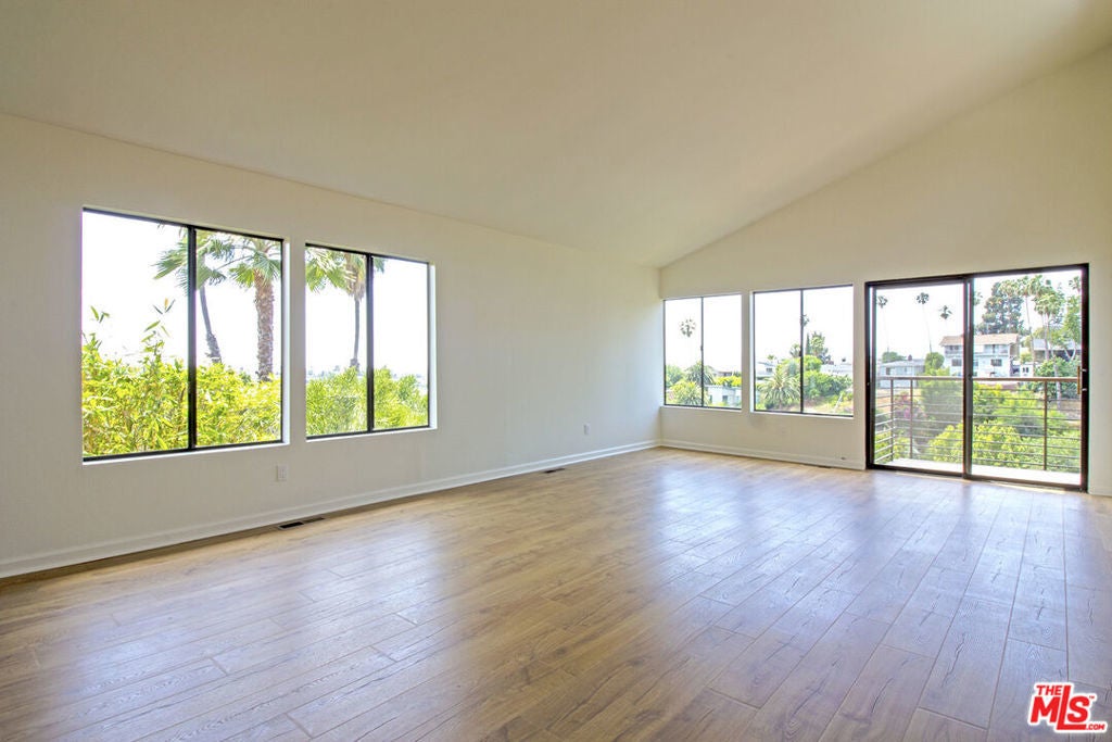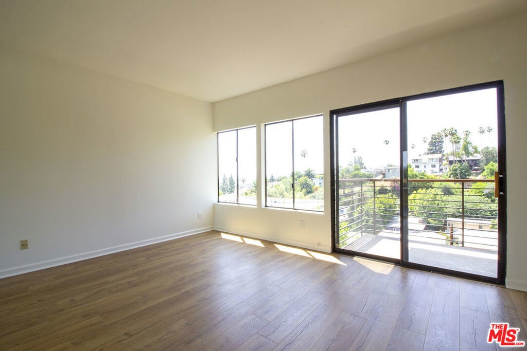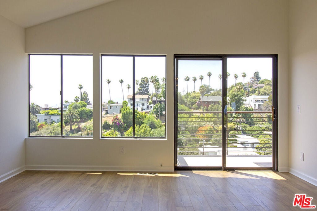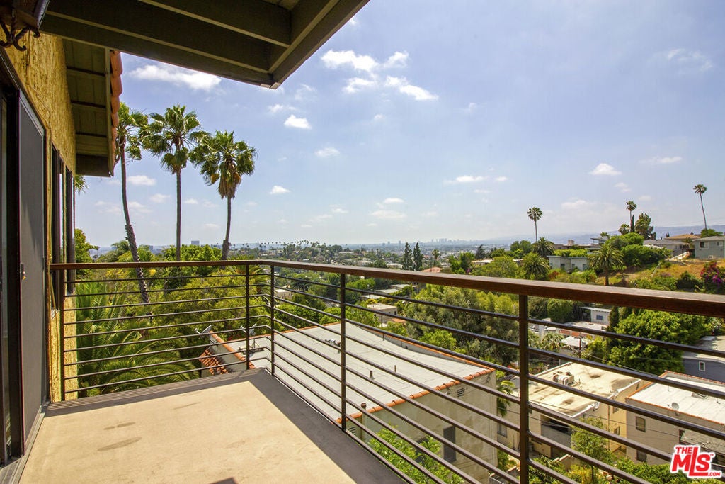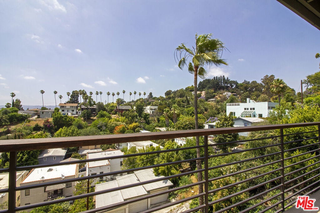 Welcome to this contemporary Spanish perched high in the hills of Silver Lake with panoramic views of the hills, city and even the ocean beyond! This townhouse style duplex home shares one wall with the unit next door, and features its own one car garage and driveway. Enter into the dramatic light filled open plan living/dining area with high ceilings and a large balcony to enjoy the scenery. A roomy kitchen with plenty of storage, a breakfast area, and a powder room complete the main level. Head downstairs to the huge main bedroom suite with its own balcony and double sink vanity area, along with two other bright, spacious bedrooms, a hall bath and laundry room. Nest thermostat and wifi enabled dimmers throughout the home. Newer Pergo flooring and appliances all highly rated by Consumer Reports. All this just minutes from the best restaurants and boutiques on Sunset and Silver Lake Blvds, along with the nearby Silver Lake reservoir and dog park. Available for immediate occupancy!
