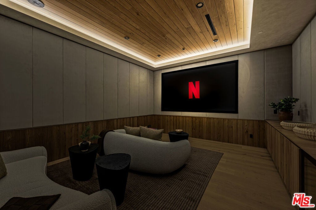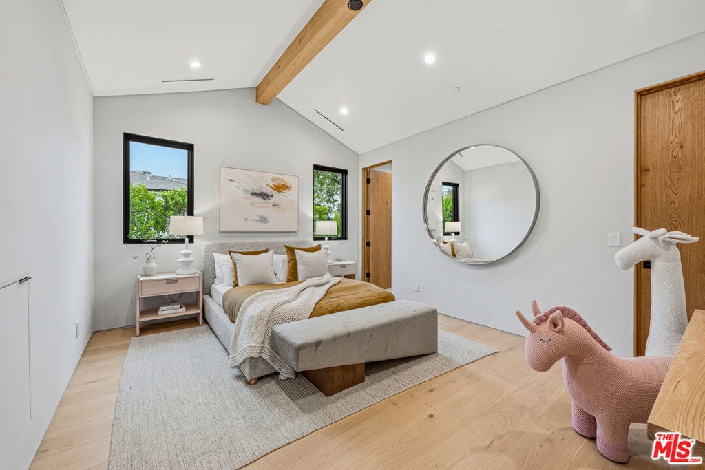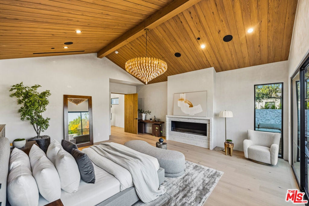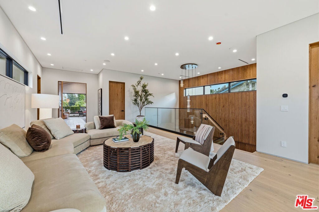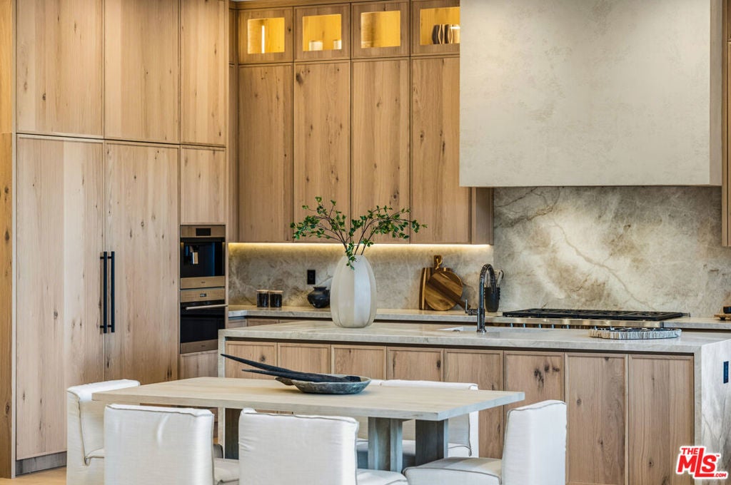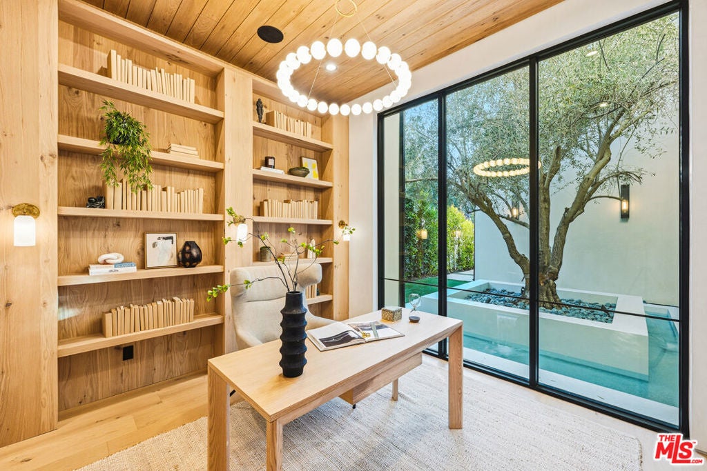 Experience elevated luxury in this newly built contemporary residence, spanning approximately 6,783 sq. ft. and showcasing exquisite designer finishes with a seamless indoor-outdoor flow. The grand entry sets the tone with soaring volume and warm wood floors that carry throughout the home. Recessed lighting, custom built-ins, and thoughtful details create a refined ambiance in every room. The chef's kitchen stands as an elegant expression of craftsmanship, featuring custom cabinetry, Taj Mahal marble countertops, and premium stainless-steel appliances. A sleek, modern wall-mounted wine display anchors the adjacent dining area, which sits beside a stunning formal living room complete with a statement fireplace - ideal for intimate gatherings or sophisticated entertaining. An expansive family room offers additional custom built-ins and fully pocketing doors that erase the boundary between indoors and out. This level also includes a beautifully appointed ensuite bedroom, a private office with built-ins overlooking a serene courtyard, and a versatile bonus room - perfect for a gym, studio, or additional bedroom - enhanced by retractable pocket doors. A state-of-the-art home theatre further elevates the entertainment experience. Upstairs, the luxurious primary suite features a charming balcony and an expansive sun deck off of the primary bath - complete with dual sinks, a dedicated vanity, a soaking tub, and an oversized rain shower. Three additional ensuite bedrooms complete the upper level, each designed with comfort and style in mind. Resort-style living continues outdoors with a fully equipped gourmet barbecue area and refrigerator, a sparkling pool and spa, and a fire pit lounge perfect for evening gatherings. The property is fully automated with Control4 smart-home technology. Ideally located just south of Ventura Blvd, this sophisticated residence offers unparalleled access to the area's most popular shops, cafes, and dining destinations.