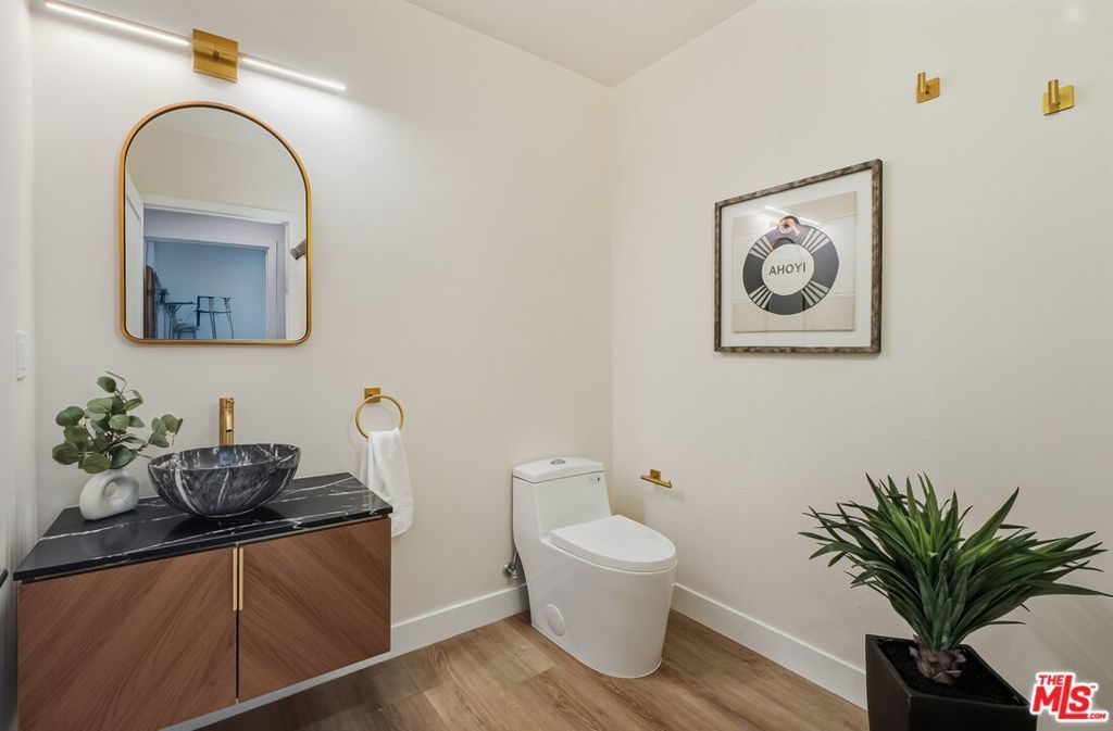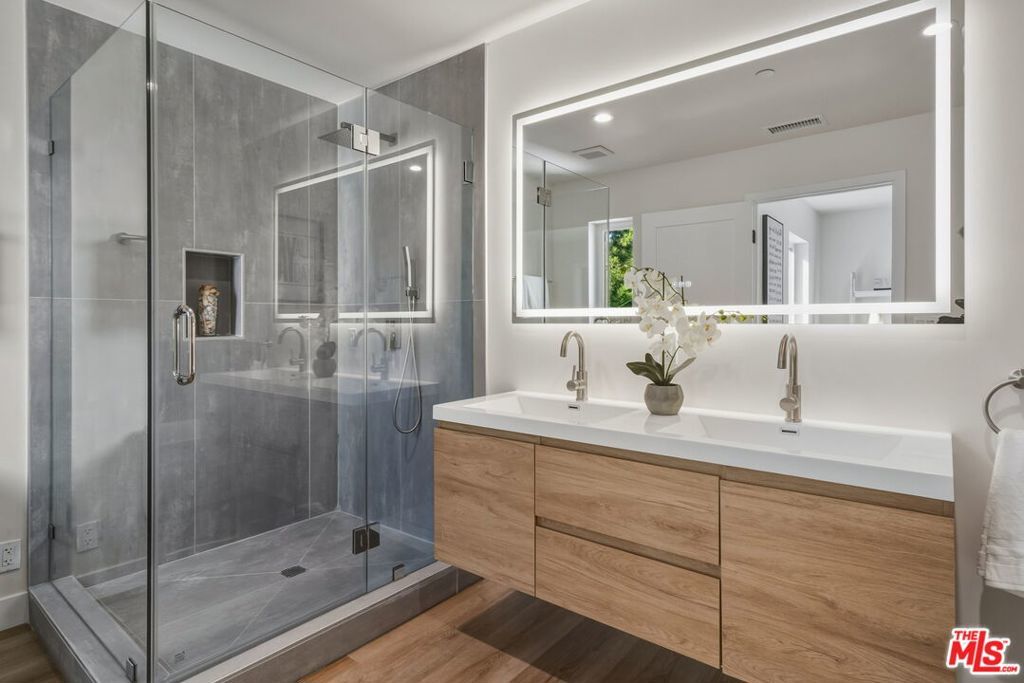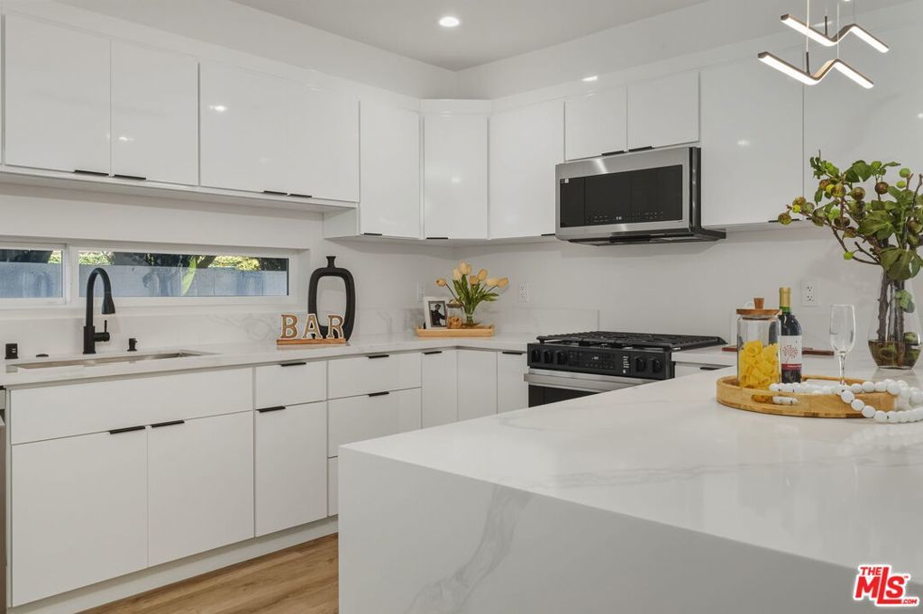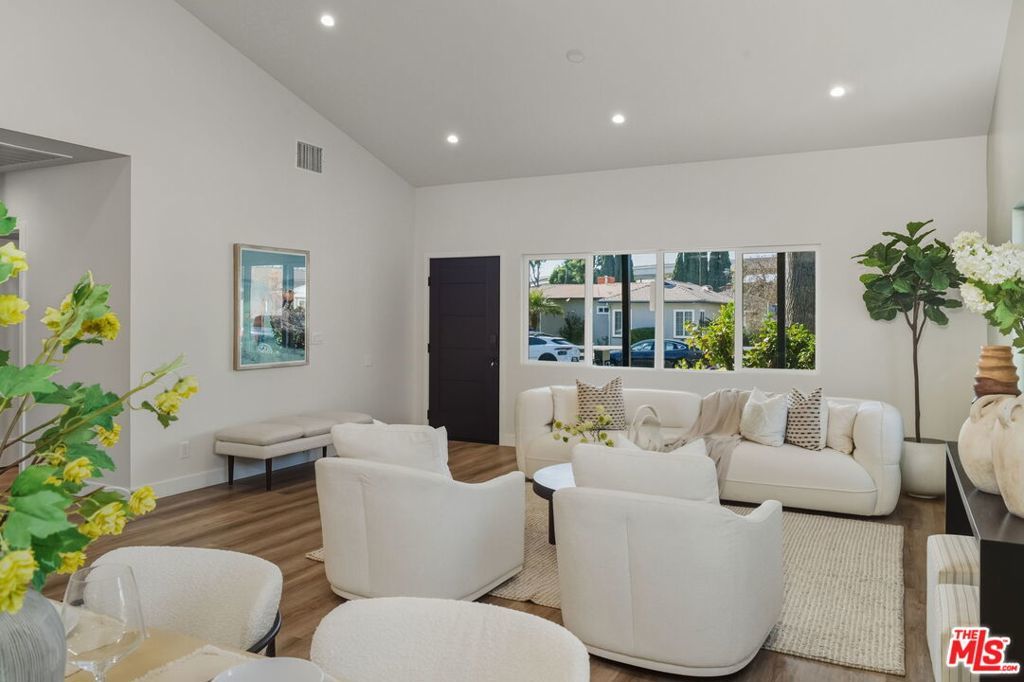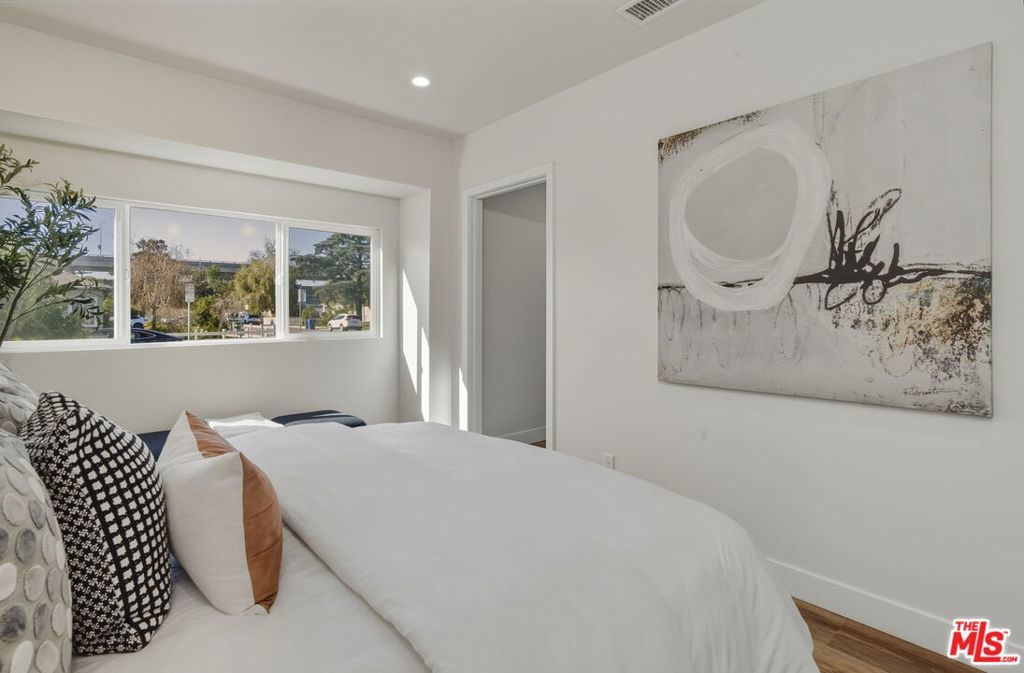 Newly renovated inside & out and expanded Westide 4 bed/4.5 bath stunning Contemporary style home with spectacular designer finishes throughout. Covered front porch opens to dramatic high vaulted ceiling spacious living room and dining filled with natural light. All new kitchen with the latest modern cabinetry, stainless steel appliances including gas range and oven, quartz countertops with waterfall edge breakfast bar and door with glass panel leading to backyard. 3 bedrooms all with ensuite remodeled bathrooms with tile finishes. 2nd story stairway with contemporary glass railing leads to stunning spacious primary suite with sliding door to private balcony, separate office/den area, 2 separate walk-in closets and luxurious primary bath with dual basins and separate bath and shower and linen shelving. Additional features include newly replaced dual-pane windows throughout, central ac/heat, contemporary wood-like flooring throughout, all new bathrooms, large laundry room on main level. Close proximity to UCLA, Sawtelle restaurants and shops, Westfield Century City and 405/10 fwy access. Move-in ready!