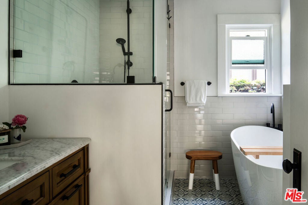 Gorgeous Craftsman rich with character and renovated to perfection on the Eastern edge of Larchmont village. The first restoration of this historic property came in 2019 when HGTV's Tarek & Heather El Moussa purchased the home and spent months reimagining the design, while leaving cherished details in tact. A welcoming front porch wraps around the entire front of the house as the extra-wide wooden door with glass emblem detail leads you into the beautiful spaces. New hardwood flooring, dual-paned windows and designer touches can be found throughout. Original plaster walls, built ins and a newly-tiled fireplace create a warm ambience. Sunshine filters through as you make your way through the dining room, bonus sun porch and adorable eat-in breakfast area. The chef's kitchen was completely redone with new cabinetry, quartz counters, high-end stainless appliances and a large center island with stools which has become the central gathering spot in the kitchen. Primary suite on the 2nd floor enjoys its own level and is surrounded by windows and views of the architectural roof lines. Ensuite primary bath with dual vanity, nickel fixtures and a custom-tiled shower with bench. On the first level are 2 spacious bedrooms that share a renovated hallway bath and a 4th bedroom (or office) nicely located in the front of the house. In 2024 the new caretaker of this lovely home picked up where the El Moussa's left off. Creating gardens in the front and back - intentionally designed with beauty and longevity in mind. Meandering paths, a working pond and outdoor lighting create a tranquil atmosphere for day or night. The front enjoys a newly constructed privacy fence, designed to look like its been there for ages and a well-established jacaranda tree offers a canopy of privacy. Upgrades include foundation bolting, roof repair, electrical & plumbing upgrades and a new irrigation system. Decorator touches throughout include new hardware, window treatments and light fixtures. A new fence at the back of the property and a detached 2-car garage finished off for multiples uses. Take a short stroll to the Larchmont farmers market on Sundays and enjoy the strong sense of community in this beloved neighborhood.