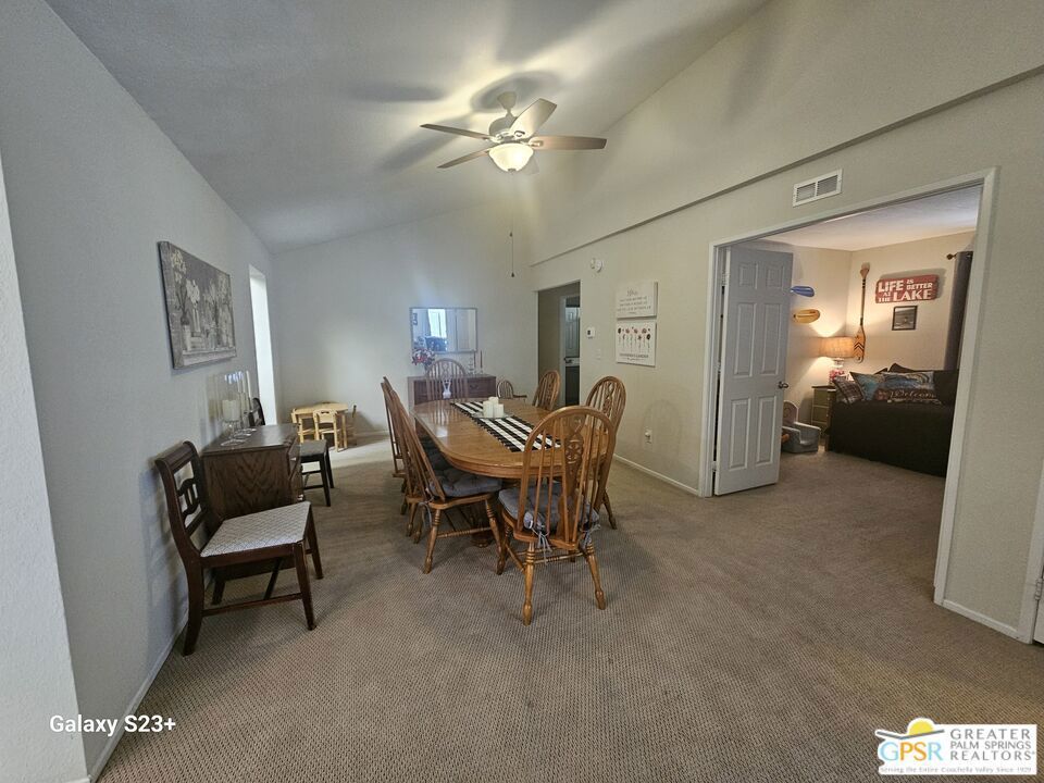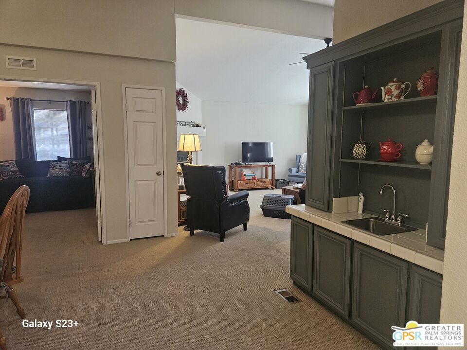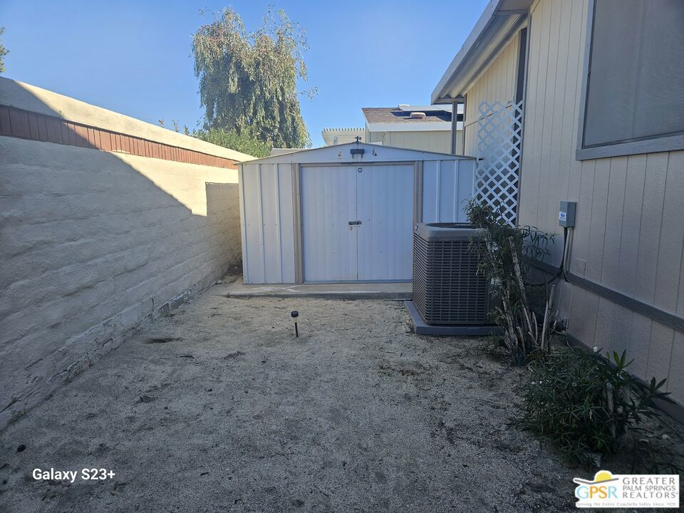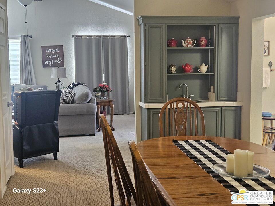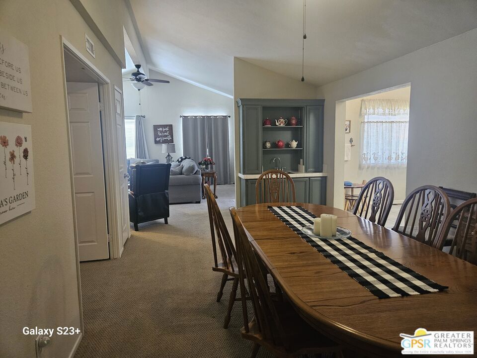 WELCOME HOME to this superbly maintained 3-bedroom, 2-bathroom home is Vista Montana. This beautiful, manufactured home on permanent foundation (433a) at 1774 sq. ft. is one of two of the largest floor plans currently on the market in the high-quality Senior Community of Vista Montana. This home is bright with natural light in all the right places. On entry you'll see a lovely fireplace in the large living area for those chilly desert nights. From the living area you will meander into a sizeable formal dining area, complete with wet bar. In the kitchen you will find an eat-in kitchen complete with breakfast bar and cabinet space galore. The primary bedroom is quite spacious with walk-in closet, ensuite bath including garden tub, walk-in shower and double basin vanity. The guest bed/bonus/den has double door entry and a fabulous built-in wall unit for all things entertainment. The secondary bedroom is good in size with ample closet space. The roof is 4 years young; the entire HVAC system was replaced three years ago. The backyard is fenced, complete with two storage sheds with plenty of space left for Fido. The laundry is inside yet separate with more storage/cabinet space. Vista Montana community has many amenities including pool, spa, sauna, billiards & card room, BBQ, clubhouse, gate guard and more. This is desert resort style living at its best. COME SEE!