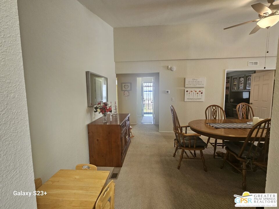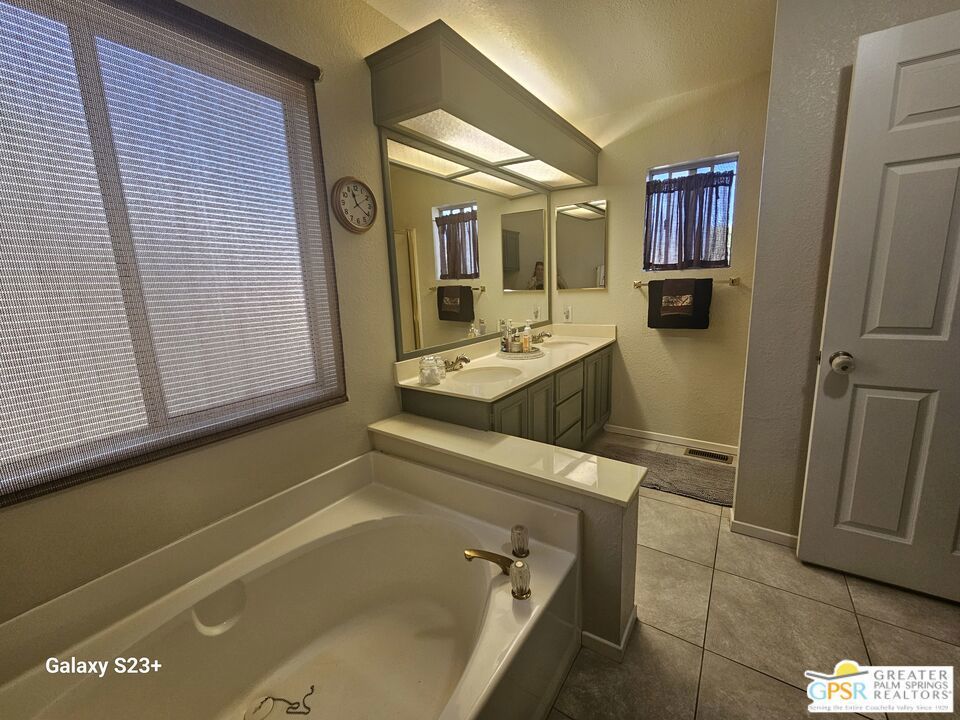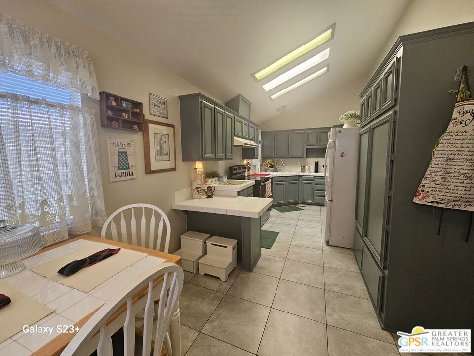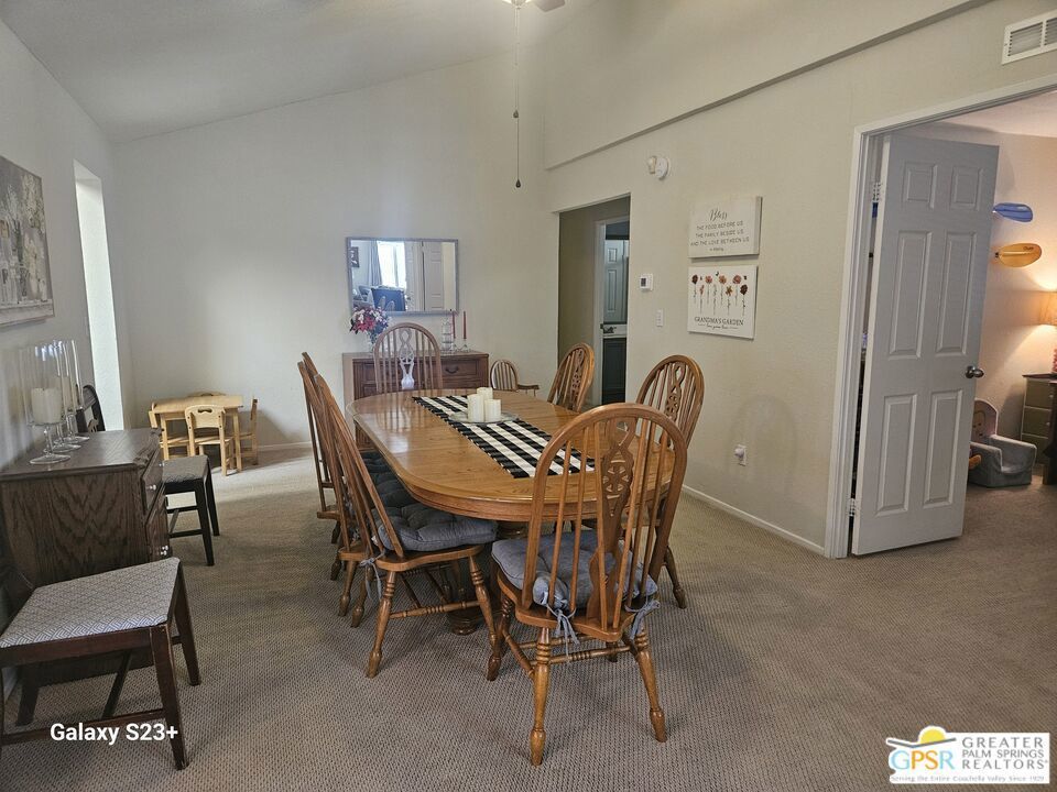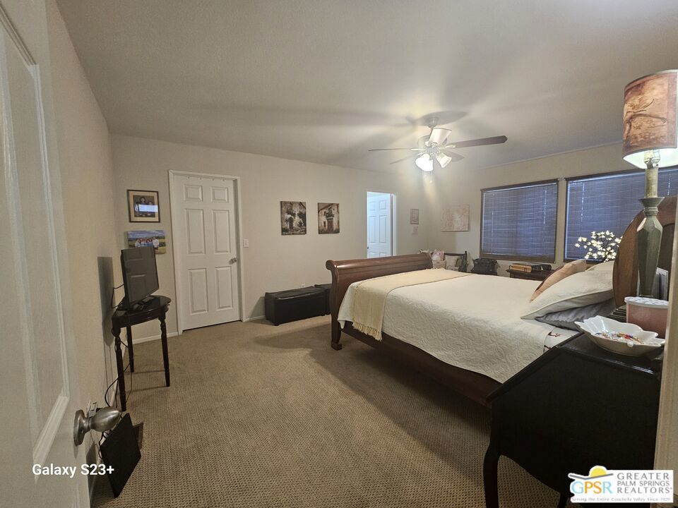 WELCOME HOME to this superbly maintained 3-bedroom, 2-bathroom home is Vista Montana. This beautiful, manufactured home on permanent foundation (433a) at 1774 sq. ft. is one of two of the largest floor plans currently on the market in the high-quality Senior Community of Vista Montana. This home is bright with natural light in all the right places. On entry you'll see a lovely fireplace in the large living area for those chilly desert nights. From the living area you will meander into a sizeable formal dining area, complete with wet bar. In the kitchen you will find an eat-in kitchen complete with breakfast bar and cabinet space galore. The primary bedroom is quite spacious with walk-in closet, ensuite bath including garden tub, walk-in shower and double basin vanity. The guest bed/bonus/den has double door entry and a fabulous built-in wall unit for all things entertainment. The secondary bedroom is good in size with ample closet space. The roof is 4 years young; the entire HVAC system was replaced three years ago. The backyard is fenced, complete with two storage sheds with plenty of space left for Fido. The laundry is inside yet separate with more storage/cabinet space. Vista Montana community has many amenities including pool, spa, sauna, billiards & card room, BBQ, clubhouse, gate guard and more. This is desert resort style living at its best. COME SEE!