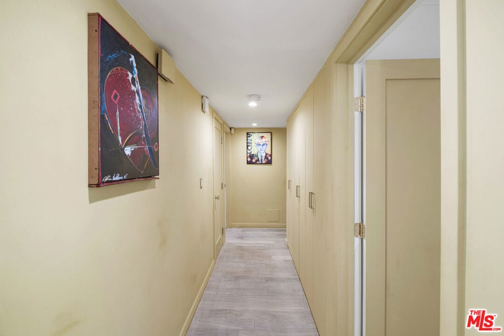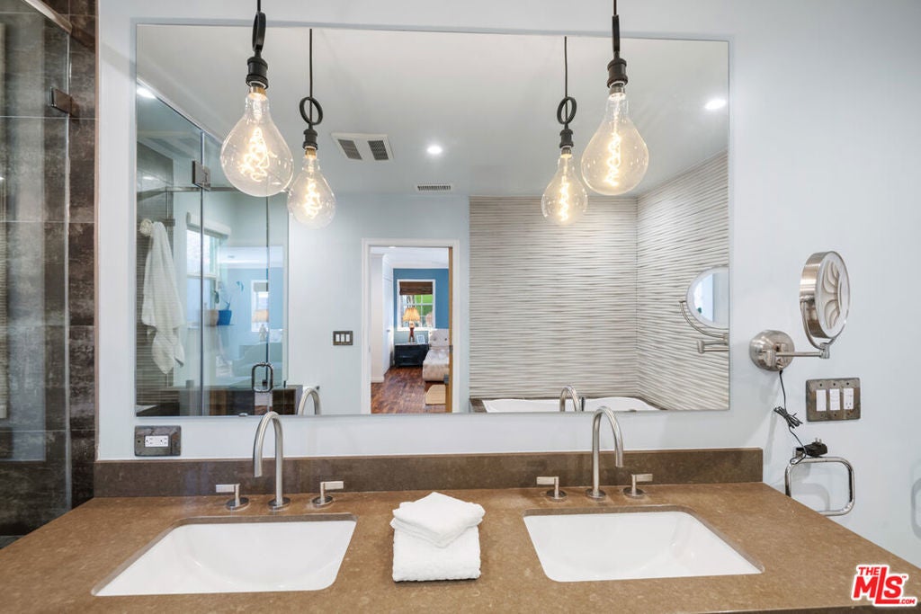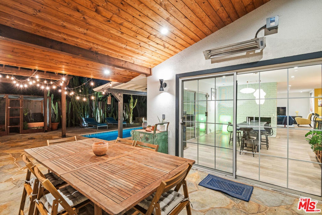 Private Lakeridge Estates Mid-Century reimagined by celebrity fashion design team. Gorgeous 1-level with 3 bedrooms and 2 bathrooms set in ideal entertaining floorplan. The chef's kitchen is very open complete with custom wood cabinetry, stone counters, 2 Viking ovens, 6-burner range, and Viking fridge. The dining room and living room are separated by a shared double facing fireplace wall with 2 individual fireboxes. Both the living room and dining room have direct access to the pool deck which is ideal for enjoying the SoCal sunshine and natural beauty of the surrounding hills. Along with the many windows, the gorgeous wood flooring throughout the home gives a feeling of bringing the outside in. The primary bedroom has a decorative fireplace, good closets, and access to the pool deck. The primary spa-like bathroom was thoughtfully done with custom stone work and designer lighting. The other 2 bedrooms are light and bright with a lovely shared bathroom.The home is gated and secure with direct access garage which has been set up for parking and plenty of storage. The rear pool deck boasts a garden and lovely California landscaping. You will love the serenity of this quintessential LA classic. Very near shops, restaurants, entertainment such as the Hollywood Bowl, hiking trails, and more!