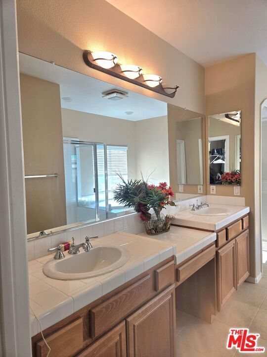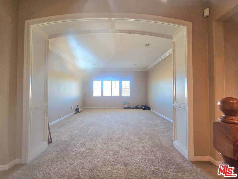 Stunning 5-bedroom, 4-bathroom, 2-story single-family home in the highly desirable Anaverde Community! Boasting 3,499 sq ft of living space on an 8,738 sq ft lot, this home features a thoughtfully designed floor plan with an open first level, perfect for entertaining and family living. The main floor includes a formal living/Dining room, spacious family room w/a recessed entertainment center and traditional paneled fireplace w/granite accents,1st-level bdrm and full bath, ideal for guests or multi-generational living. Add'l 1st-floor touches include eco-friendly bamboo flooring throughout & a built-in linen cabinet for added storage. Elegant, custom wood panel mouldings and arches, recessed lighting, and 2'' white corded blinds add timeless style throughout the entire home. The gourmet kitchen boasts earth-tone granite countertops & backsplash, a large island w/bar seating, walk-in pantry, gas rangetop, wall oven & microwave, dishwasher, and a convenient built-in work desk. Upstairs, enjoy an expansive loft/bonus room, ideal for a 2nd living space, office, game room, or home theater. The stairway & upper level rooms offers plush cut-pile carpeting, mirrored closet doors in all non-primary bedrooms, ceramic tile bathroom flooring, and an en-suite bedroom w/private bath. The luxurious master features a sitting room, large walk-in closet, and a spa-inspired bathroom complete w/dual vanity sinks, a makeup station, an oversized tiled drop-in tub, and separate shower. The upstairs laundry room includes built-in cabinetry and utility sink. The 3-car tandem garage includes a workbench, closets, cabinetry, and a window w/blinds. Low-maintenance desert landscaping graces the front & backyard, which include a curved concrete patio and dog kennel, all secured w/ block wall and wrought iron fencing. Adjacent to the Palmdale Aqueduct, enjoy access to a 1/2-mile walking/running trail & panoramic valley views. Conveniently located near schools, freeway and a Park & Ride. This home will not last, schedule your showing to see inside this beautiful home.