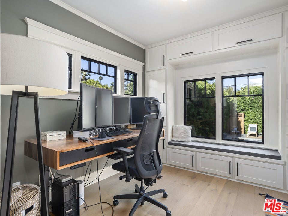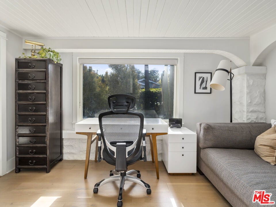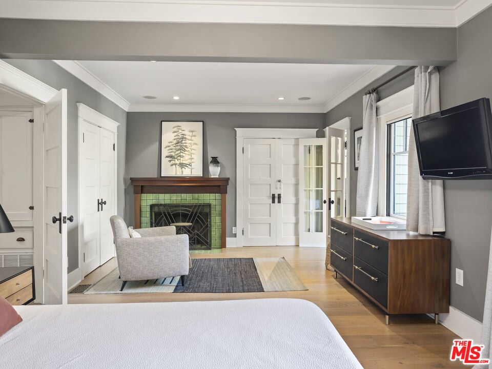 Welcome to Sunset Square, one of the most sought out neighborhoods in LA with Walking distance to the largest off leash dog park in America. This beautifully remolded home has 3-bedroom, 4-bath including a full guest house sits on a prime street north of Sunset on an expansive 7,000 sq ft lot. This home has a Beautifully designed resort like pool, and Professionally landscaped private yard that adds to this enchanting home and timeless architecture. This meticulously designed living space is over 2,466 sq ft of stunning original details including three fireplaces, crown molding, wainscoting, and lovingly restored windows seamlessly paired with sophisticated updates by acclaimed designer Matthew Lanphier. A spacious library and adjoining sunroom provide flexible living options and can easily function as a 3rd bedroom or creative studio space. The designer kitchen is both stylish and functional, offering ample workspace and premium finishes, while the reimagined primary suite boasts a spa-caliber bathroom complete with heated floors. Every room exudes character, warmth, and thoughtful craftsmanship. Step outside to your own private resort. The sprawling backyard features a sparkling pool, raised spa, outdoor shower, multiple lounge areas, and lush landscaping that creates the ultimate indoor-outdoor escape perfect for relaxing or entertaining. The fully permitted 700 sq ft guest house (ADU) is an incredible asset, offering its own kitchen, bathroom with heated floors, and in-unit laundry. Ideal as a guest retreat, income-producing rental, or private work sanctuary, it adds exceptional value and flexibility. Situated in the heart of historic and highly sought-after Sunset Square, you're moments from the area's best amenities luxury cafes, Bristol Farms, fine dining, and vibrant nightlife .A rare blend of charm, privacy, and modern convenience this extraordinary property is a true Sunset Square gem. PRICED TO SELL THIS WILL GO QUICK Easy to show Broker lives in the neighborhood.
