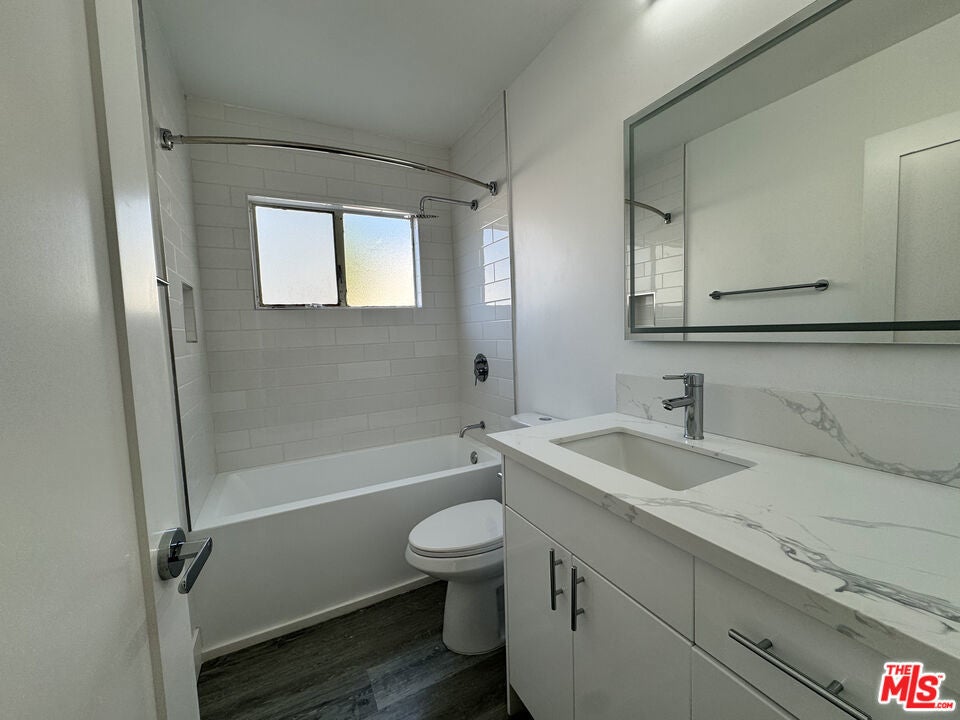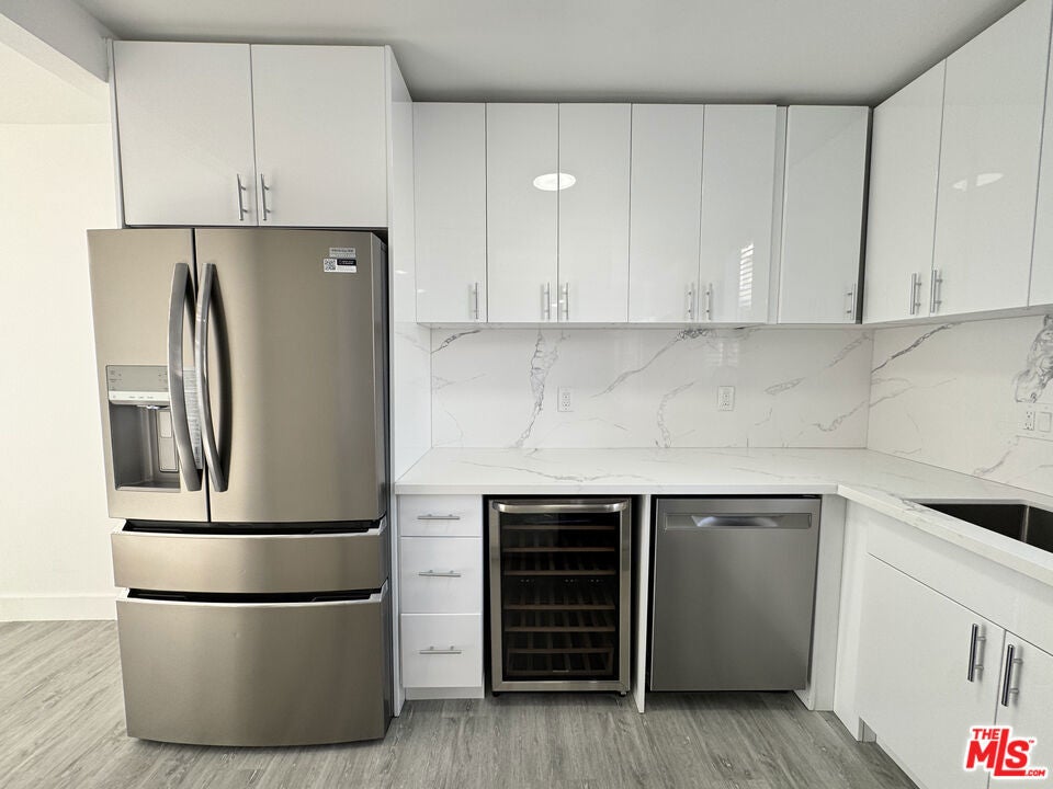 Be the first to live in this top-floor 2 bed/2 bath unit since its renovation! Video tour available. Upon entering the oversized living room, you'll be greeted with abundant natural light flowing throughout the apartment. The large open-concept kitchen features a breakfast island, dishwasher, and wine fridge, with a dedicated dining area adjacent to the kitchen providing an excellent space for entertaining. Both bedrooms are located on the opposite side of the home and are generously sized, with one featuring an en-suite bathroom. Additional highlights include an in-unit washer/dryer, AC units in every room, pet-friendly, and one parking space included. The owner is seeking an 18-month lease, Located in prime West Hollywood, you're just minutes from everything WeHo and the Sunset Strip have to offer.