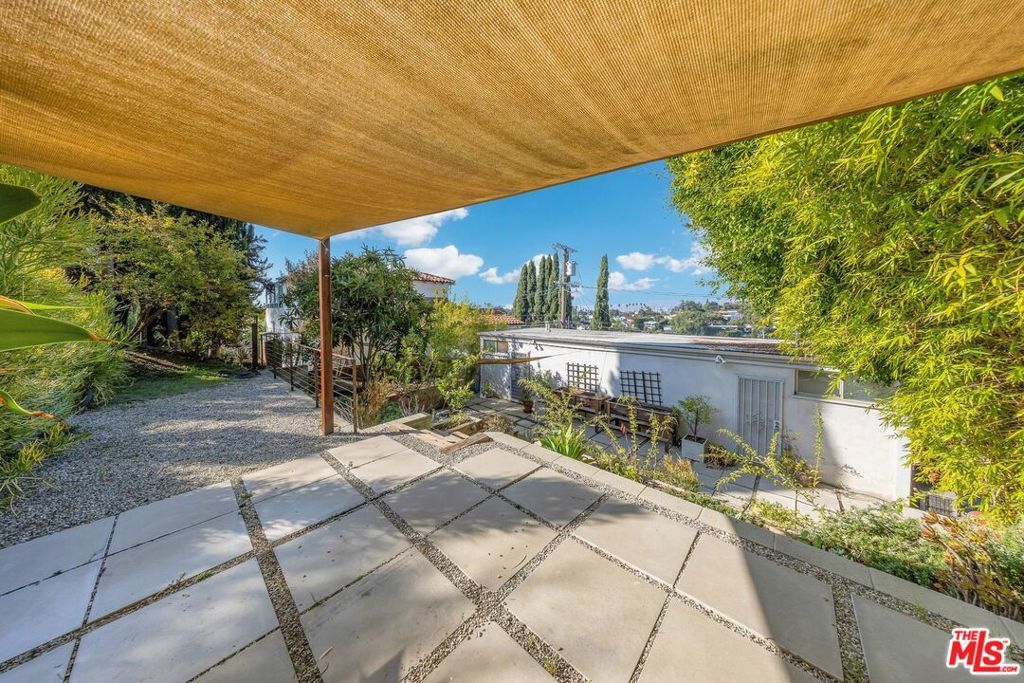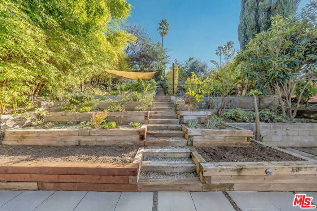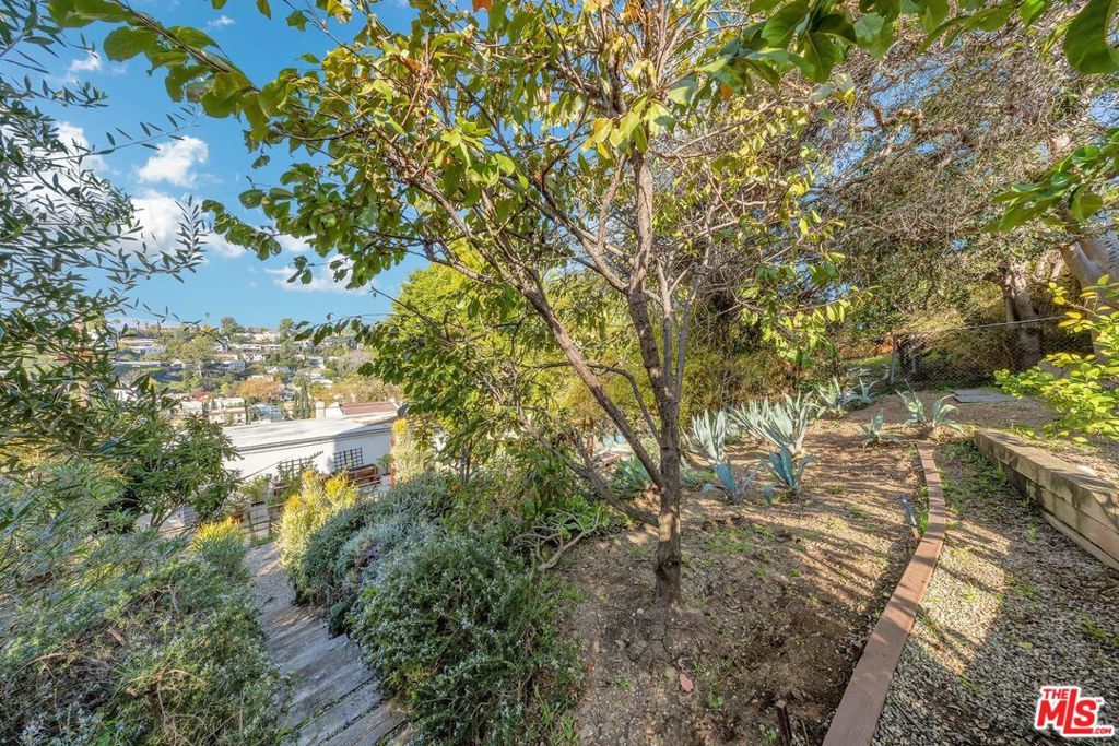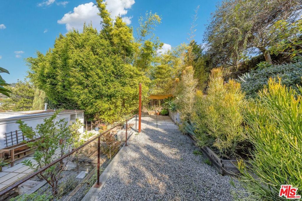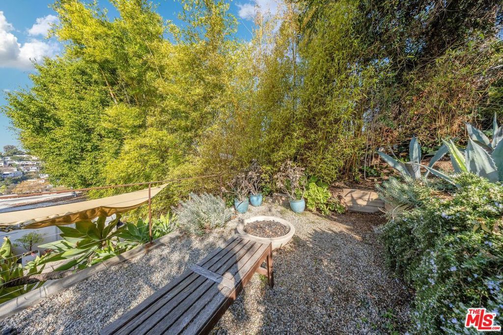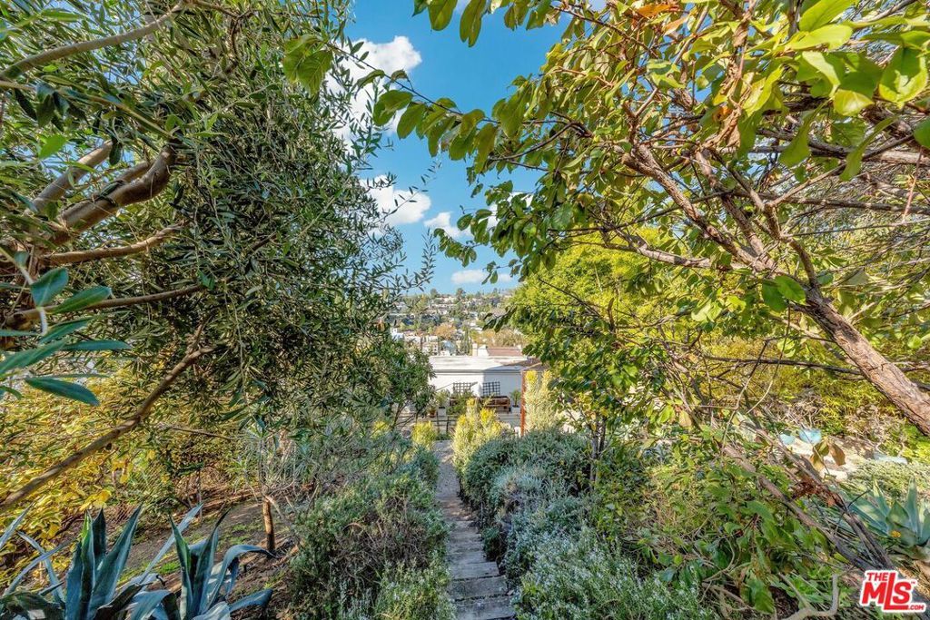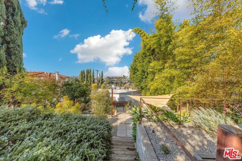 Perched atop one of the most coveted pockets of Silver Lake. Nestled in the hills, surrounded by lush greenery. Emphasizing proportion, light and flow, this beautiful home consists of expansive living room with a stunning view. Embrace the open floor plan flooded with natural light from expansive windows framing the surrounding views. The dining area flows into a well- appointed sleek & stylish kitchen that features stainless steel countertops & appliances and ample cabinetry including the lift up glass door cabinets. Laundry area is conveniently located near the kitchen. An ideally located half bath serves guest with ease. There are 2 bedrooms upstairs and both have en-suite bathrooms, spacious closet and each has a door that opens to the backyard. Step outside your own private garden oasis where you can relax and entertain. Enjoy captivating views from the upper terrace, complete with pre-established raised garden beds and mature fruit trees, providing a sense of privacy and retreat for al fresco dining or relaxation. Attached 2 car garage, central air/heat (new heat pump 2022) & new rain gutters 2023. Minutes to Echo Park, DTLA & Silver Lake vibrant shops, cafes, parks and cultural destinations. This Silver Lake gem offers hillside charms with unmatched convenience. Perfect blend for tranquility and excitement. Must See!