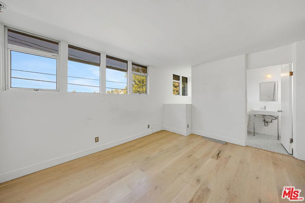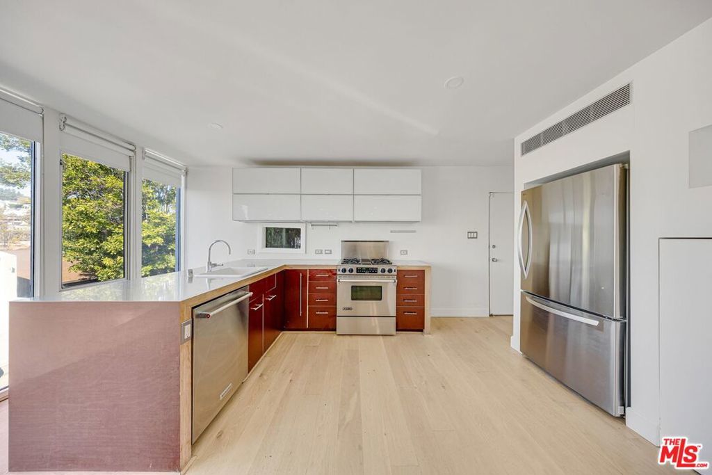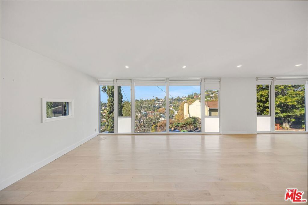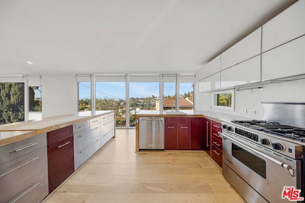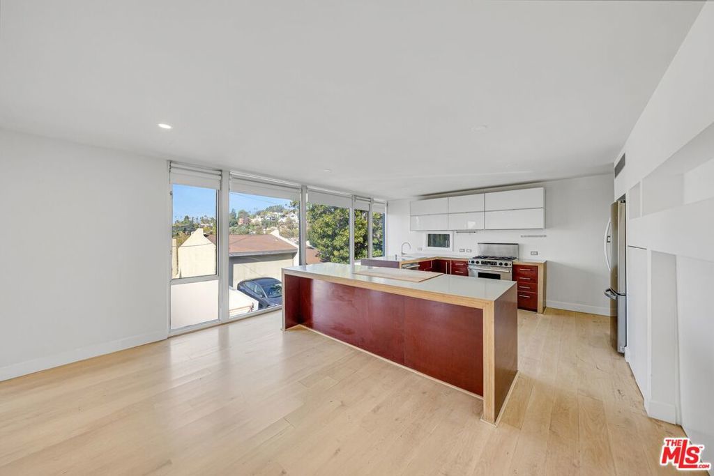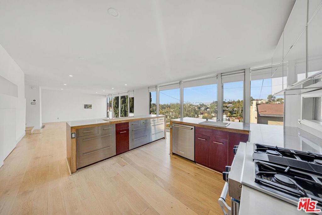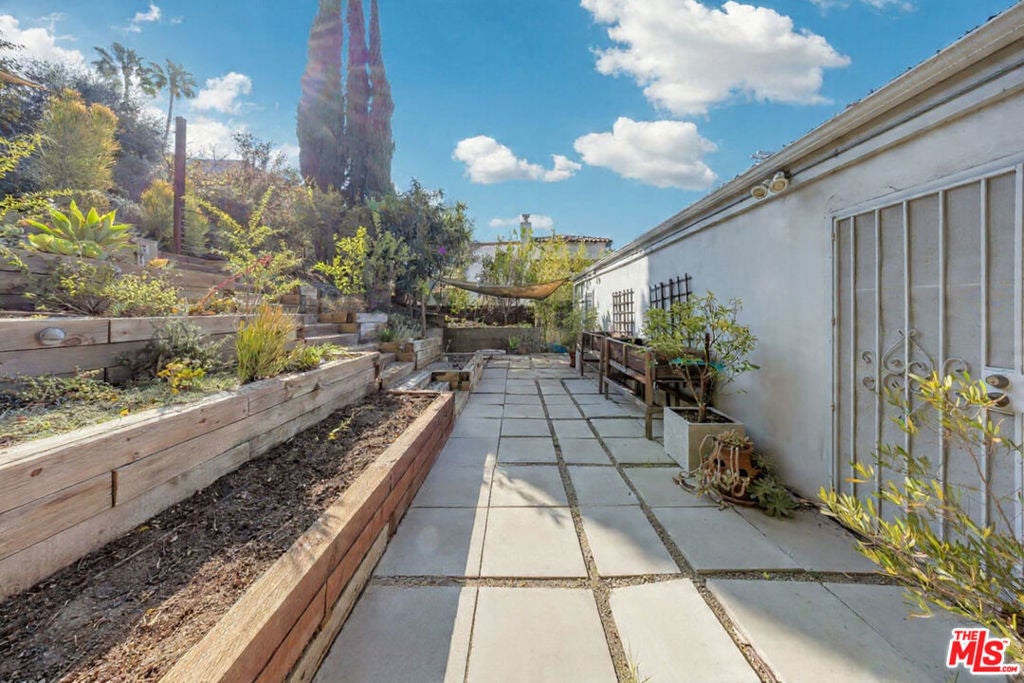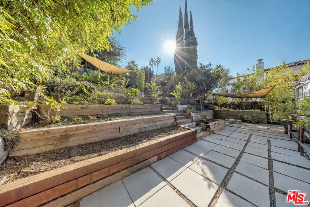 Perched atop one of the most coveted pockets of Silver Lake. Nestled in the hills, surrounded by lush greenery. Emphasizing proportion, light and flow, this beautiful home consists of expansive living room with a stunning view. Embrace the open floor plan flooded with natural light from expansive windows framing the surrounding views. The dining area flows into a well- appointed sleek & stylish kitchen that features stainless steel countertops & appliances and ample cabinetry including the lift up glass door cabinets. Laundry area is conveniently located near the kitchen. An ideally located half bath serves guest with ease. There are 2 bedrooms upstairs and both have en-suite bathrooms, spacious closet and each has a door that opens to the backyard. Step outside your own private garden oasis where you can relax and entertain. Enjoy captivating views from the upper terrace, complete with pre-established raised garden beds and mature fruit trees, providing a sense of privacy and retreat for al fresco dining or relaxation. Attached 2 car garage, central air/heat (new heat pump 2022) & new rain gutters 2023. Minutes to Echo Park, DTLA & Silver Lake vibrant shops, cafes, parks and cultural destinations. This Silver Lake gem offers hillside charms with unmatched convenience. Perfect blend for tranquility and excitement. Must See!