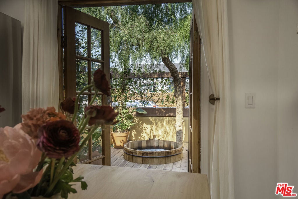For Lease 718 Vernon Ave #A2 Bedroom | 2 Bathroom Front House | Private Deck with Two Hot Tubs. Welcome to your private Venice retreat, an inviting, fully furnished, gated sanctuary that blends indoor-outdoor living, comfort, and modern California charm. Located west of Lincoln in one of Venice's most coveted pockets, this front house sits just moments from everything that makes the neighborhood iconic. Enjoy being steps from Abbot Kinney Blvd, with its renowned boutiques, cafes, restaurants, and art galleries plus neighborhood favorites like Gjelina, Intelligentsia Coffee, The Butcher's Daughter, Felix, Gran Blanco, and the weekly Venice Farmers Market. The Venice Beach Boardwalk, the Rose Avenue dining corridor, and Main Street Santa Monica are all nearby, offering endless coastal lifestyle conveniences.This stylish front house features two bedrooms, each with its own en-suite bathroom, and each bedroom includes a skylight, creating bright, uplifting spaces filled with natural light. Both suites open directly onto a spacious private deck equipped with two hot tubs (or one hot tub and one cold plunge, depending on your preference). The bright living area, also enhanced by a skylight, flows seamlessly into an open-concept kitchen featuring a robust stainless-steel oven, offering a blend of professional style and high-performance functionality. The home includes its own private entrance leading directly to the deck, creating a smooth indoor-outdoor living experience. Beyond the front house, you'll find a shared courtyard garden framed by seasonal jasmine, mature greenery, and an elegant arched fountain. This communal space is shared with two additional units and offers a serene setting for outdoor dining, morning coffee, or quiet evenings under the stars. A private washer and dryer are conveniently located on the deck for easy everyday living. The property also offers ample street parking. PROPERTY HIGHLIGHTS * Fully furnished with curated, custom-designed pieces (option to request unfurnished)* Two private hot tubs on an expansive front deck * Skylights in the living area and both bedrooms * Shared courtyard garden with arched fountain and lush landscaping * Gated property with private laundry area* Ample street parking * Prime Venice location near Abbot Kinney, Rose Ave, and Venice Beach