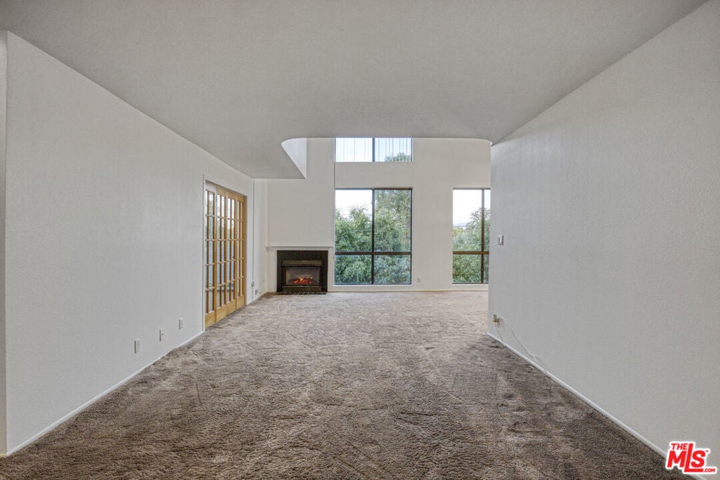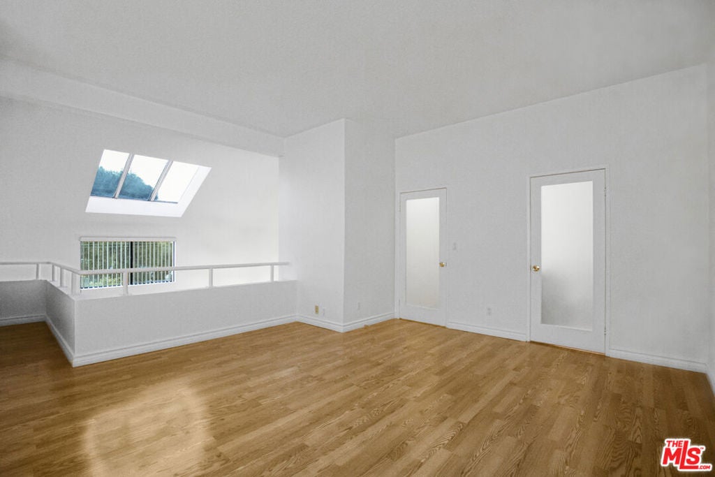 Experience the ultimate top-floor lifestyle in this stunning Sherman Oaks Penthouse unit! Bathed in natural light, this contemporary condo boasts an open-concept design with dramatic, soaring high ceilings and skylight, creating an airy, luxurious atmosphere. The main level features a spacious living room centered around a cozy fireplace, perfectly complemented by oversized windows that capture serene tree-top views. A modern French door separates the versatile second bedroom/den, which is ideal for a home office or guest room. A stylish full bathroom completes this floor. Ascend to the private, upstairs Master Suite loft, a tranquil retreat featuring a sleek modern bathroom, a closet and a generous flex space perfect for a custom dressing room or a dedicated workspace. Beyond your door, enjoy resort-style living with incredible amenities, including two shimmering community pools, a spa, a newly remodeled gym and sauna, and a recreation room. Two tandem parking spaces and a storage area are included. The HOA covers everything for worry-free living: earthquake insurance, basic Cable TV, Internet, hot/cold water, trash, and maintenance. Located moments from Ventura Blvd's best dining and shopping. This modern masterpiece is an absolute must-see.