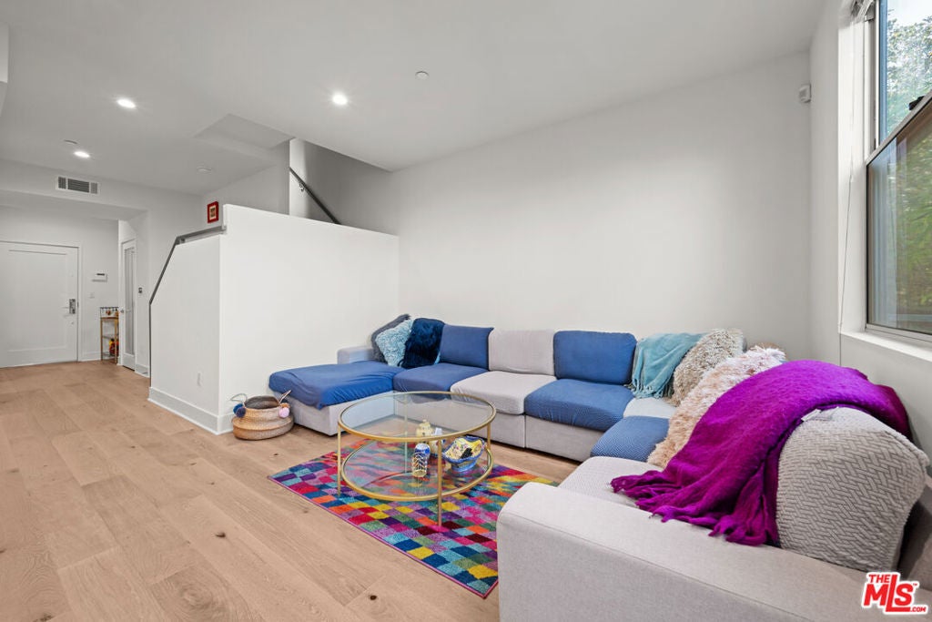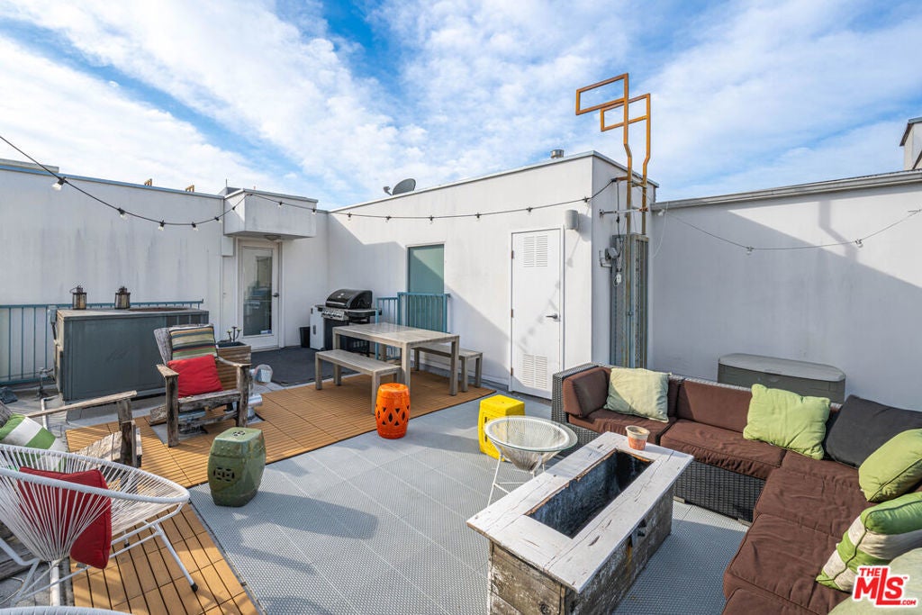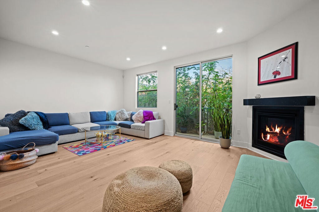 Contemporary townhouse built in 2011, located in an intimate 6-unit building in the heart of Beverly Grove an unbeatable location with a Walk Score of 94. This home is truly a neighborhood gem, offering modern luxury, high-end amenities, and timeless charm. This 3BR + office, 2.5BA residence has it all: a sleek modern kitchen with Viking range and quartz stone counters, an open floor plan with wide-plank white oak floors, and a cozy bar/den area perfect for entertaining. The primary suite features dramatic 20-foot ceilings and an en-suite bathroom with dual sinks, separate soaking tub, and shower. Two additional bedrooms are conveniently located on the same level, along with a second full bath and washer/dryer. Upstairs, a loft/office leads to an expansive 600+ sq ft private rooftop deck equipped with custom lighting, sound system, upgraded flooring, BBQ, fridge, dining area, gas firepit, outdoor movie theater with high-definition projector, and updated internet connectivity plus incredible views of the Hollywood Hills. The home has been recently finely remodeled with new hardwood floors replacing prior carpet and energy-efficient LED lighting throughout. Set in a highly walkable neighborhood, you can enjoy shopping, dining, errands, local parks, and vibrant cafes all just seconds away. Friendly neighbors and a strong community vibe make this home not just beautiful, but truly welcoming. Don't miss this exceptional opportunity to experience modern comfort, style, and convenience in one of LA's most desirable locations. (SELLER IS OPEN TO A 6 MONTH LEASE BEFORE SELLING)