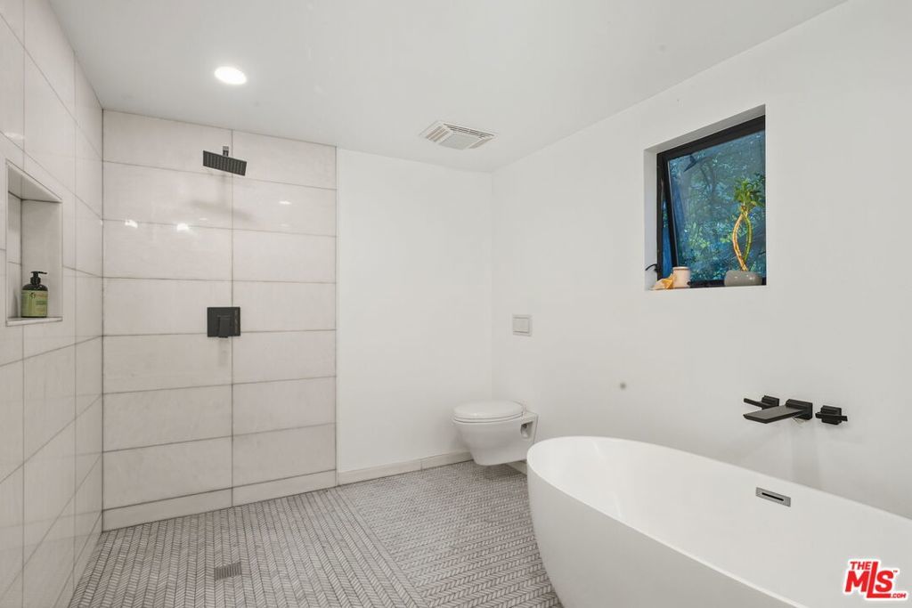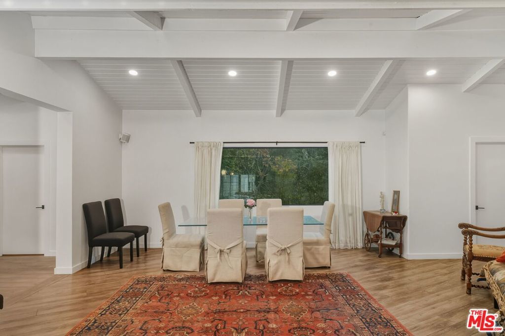 Striking Mid-Century Haven with Expansive Pool, Privacy & Canyon Views. Tucked behind a gated entrance off Upper Mandeville Canyon Road, this striking mid-century residence sits on a lush 12,455-square-foot lot dotted with mature myrtle and pepper trees. Thoughtfully expanded and remodeled, the 2,888 sqft architectural home blends timeless design with dramatic natural surroundings. Inside, ash veneer floors, pitched beam ceilings, skylights, and custom steel-framed windows and doors create a seamless indoor-outdoor experience, reflecting the expansive pool, patios, and serene canyon vistas beyond. The open living, dining, and family spaces offer warmth, flow, and abundant natural light, anchored by a luminous formal entry and double-sided fireplace. The chef's kitchen is a showstopper, wrapped in wide picture windows framing verdant nature and outfitted with stainless steel appliances, a center island, quartz countertops, and generous pantry storage. Ideal for entertaining, the layout connects effortlessly to both interior gathering areas and the outdoor oasis. A private bedroom wing features two guest bedrooms and a beautifully appointed shared bath with double vanity and custom tilework. The luxurious primary suite is a tranquil retreat, boasting clerestory windows, a spa-inspired bath with a freestanding tub and open shower, an oversized walk-in closet, and French steel doors that open directly to the pool. Additional highlights include an oversized two-car garage with 420 sqft of flexible utility space or studio potential, serpentine pavers surrounding the home, and a rare sense of serenity just moments from Brentwood's coveted dining/shopping scene.