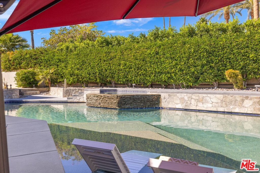 Adjacent to Tamarisk County club , this beautifully reimagined Desert Contemporary retreat offers seamless indoor-outdoor living in a private, resort-style setting. Thoughtfully updated with clean modern lines and warm, organic finishes, this home delivers a refined yet approachable take on modern desert living.Upon entry, soaring ceilings and high-set windows flood the space with natural light, creating an open, airy environment that feels both expansive and inviting. The main living areas flow effortlessly into the dining space and updated kitchen, where sleek cabinetry, quartz countertops, stainless steel appliances, and a generous island create a natural gathering place for everyday living and entertaining alike.Expansive walls of glass frame the backyard and open to a true outdoor sanctuaryfeaturing a sparkling pool and spa, multiple lounge areas, and mature landscaping that offers both privacy and a lush desert backdrop. Designed for connection and relaxation, this space embodies the essence of indoor-outdoor desert living.The oversized primary suite serves as a serene sanctuary, with direct access to the backyard and a spa-inspired bath complete with dual vanities, a freestanding soaking tub, and a spacious walk-in shower. A large, well-appointed walk-in closet adds both function and a sense of everyday luxury.Additional highlights include updated bathrooms, contemporary flooring throughout, and a thoughtful layout that balances clean design with livable comfort. Every space has been curated to feel intentional, cohesive, and move-in ready.Ideally located near dining, shopping, golf, and outdoor recreation, this home presents an exceptional opportunity to experience elevated California living in a setting designed for both relaxation and entertaining.