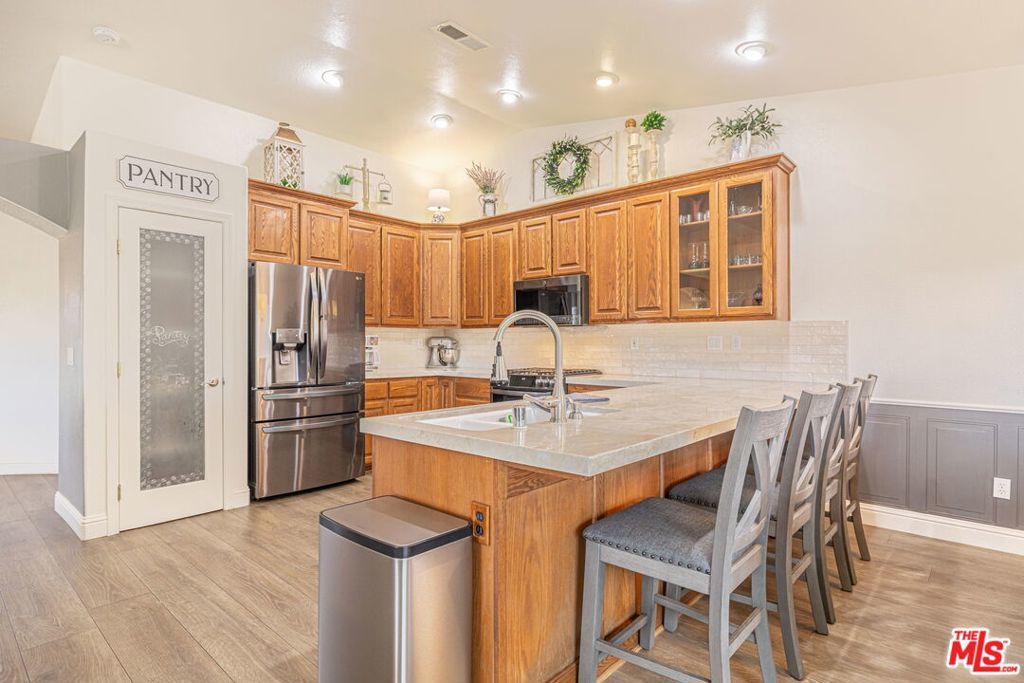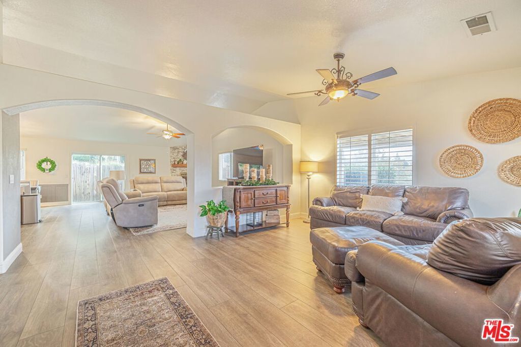 Welcome to your dream home in the highly desirable Golden Hills East neighborhood of Tehachapi, California!This stunning single-story 4-bedroom, 2-bathroom residence offers 2,117 sq ft of beautifully updated living space on an expansive 23,851 sq ft lot (over half an acre) with jaw-dropping panoramic mountain and valley views.Step inside to soaring vaulted ceilings, rich hardwood flooring throughout the main living areas, and an abundance of natural light. The open-concept great room is anchored by a gorgeous floor-to-ceiling stone fireplace, flowing seamlessly into the updated kitchen featuring warm oak cabinetry, stainless steel appliances, a large center island with breakfast bar seating, subway tile backsplash, and a walk-in pantry.The private primary suite includes direct backyard access, dual closets, and an en-suite bath. Three additional spacious bedrooms, a full guest bathroom, and a dedicated home office/den offer plenty of room for everyone.The backyard is pure California mountain living: an enormous covered patio with caf string lighting, multiple entertaining zones, and a built-in outdoor Jacuzzi perfectly positioned for soaking in unobstructed, postcard-perfect views of the Tehachapi Mountains and valley below. The huge lot provides ample space for RV/boat parking, gardening, or future projectsall alongside the attached oversized 3-car garage.Additional highlights:- Oversized 3-car garage with workshop/storage potential- Indoor laundry room- Central heat & air- Quiet, established Golden Hills East location with quick access to town, schools, and Hwy 58Nestled in one of Tehachapi's most sought-after neighborhoods, this move-in-ready home combines timeless hardwood floors, a rare 3-car garage, over half an acre of land, and that priceless view lifestyle complete with your own sunset-soaking Jacuzzi. Opportunities like this in Golden Hills East don't lastschedule your private tour today!