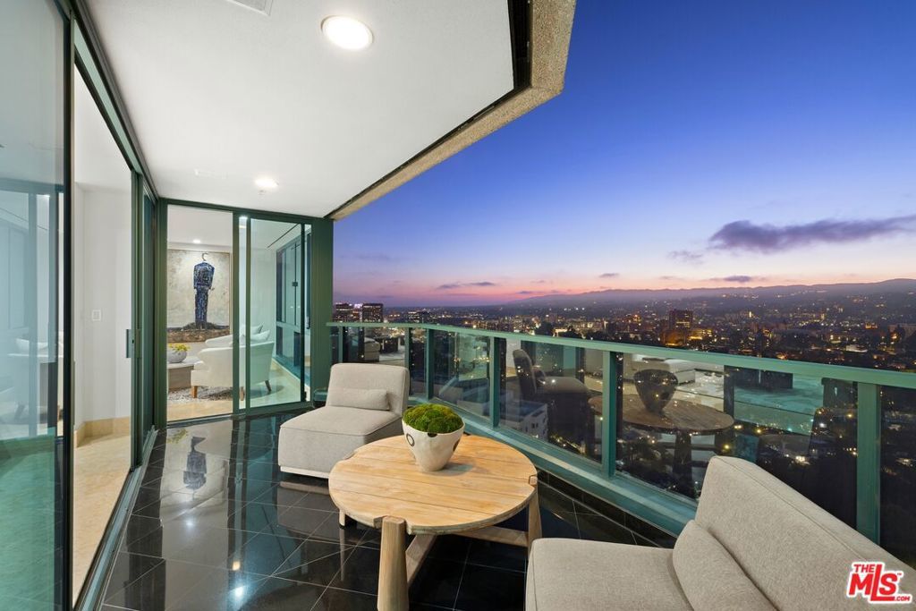 **Rare Penthouse at The Blair House -The Pinnacle of Wilshire Corridor Living** Perched atop the iconic Blair House, one of the most prestigious full-service addresses on the Wilshire Corridor, this rare penthouse offering blends dramatic design, contemporary elegance, and sweeping panoramic views into a truly unforgettable residence. Step into the striking formal entry where a sculptural spiral staircase introduces you to soaring 25-foot ceilings and vast, floor-to-ceiling windows that flood the living space with natural light. From the Griffith Observatory to The Getty and beyond, nearly every room offers unobstructed, picture-perfect views. The expansive living room seamlessly extends to a private balcony an ideal backdrop for indoor-outdoor entertaining. A formal dining room comfortably seats 12+ with inspiring vistas toward the Hollywood Hills and Downtown Los Angeles. A stylish den with built-in wet bar creates an inviting space for intimate evenings or movie nights. The newly renovated chef's kitchen boasts premium appliances, sleek cabinetry, and an adjacent breakfast area offering tranquil morning views. A private en-suite guest room sits quietly on the main floor, providing comfort and separation. Upstairs, access the second level via your own in-unit elevator to discover three spacious bedroom suites and an airy loft lounge or home office, all oriented to capture dramatic skyline scenes. The primary suite is a luxurious retreat with a private sitting area, balcony, and an indulgent, spa-inspired bath. Dual bathrooms offer a sauna, soaking tub, oversized shower, vanity area, and separate walk-in closets. An attached gym or office completes the suite, surrounded by floor-to-ceiling views. Additional highlights include:- Smart home integration with new AV system, high-speed Wi-Fi, security upgrades - Modern designer lighting throughout - Ample in-unit storage and closet space Residents of The Blair House enjoy five-star amenities: a resort-style pool and spa, rare tennis court, cutting-edge fitness center, meeting suite, 24-hour valet and concierge, and round-the-clock security, an unmatched lifestyle in one of LA's most desirable high-rise communities.