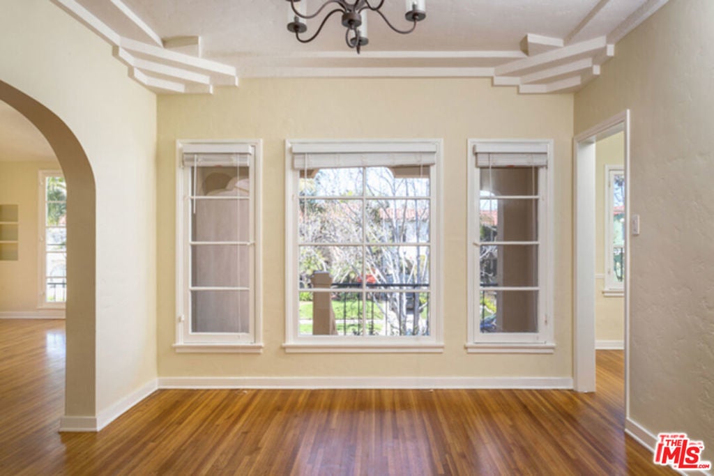 Lower unit in gorgeous Spanish duplex in historic Carthay Square HPOZ. Old world charm and new world convenience abound in this sunny unit. Large step-down living room with decorative fireplace, separate dining room with original deco ceiling. Separate breakfast room adjacent to the kitchen and formal dining room with original built-ins. Updated kitchen with stainless appliances, refrigerator w/ ice maker, d/w, range, disposal, separate laundry and pantry. Intricate art deco moldings, high ceilings, hardwood floors, sunlit windows, original architectural details, 2 ample bedrooms, large art deco tiled bath with tub and step-in shower, central heat and a/c complete this gem. Beautiful front and rear yards, with mature landscaping - fruit trees, rosemary, jasmine and roses is shared with the upstairs tenant. Private one car garage with additional storage. Quiet street with permitted resident parking. Convenient to everything -- just minutes to trendy shops and restaurants, Beverly Hills, Century City, The Grove, Farmers Market, Museum Mile, and Pico Robertson. Most pets welcome! Tenant pays utilities and renter's insurance. Some photos may be of the upper unit with the identical floorplan, or of the prior tenant's furnishings. Available now.