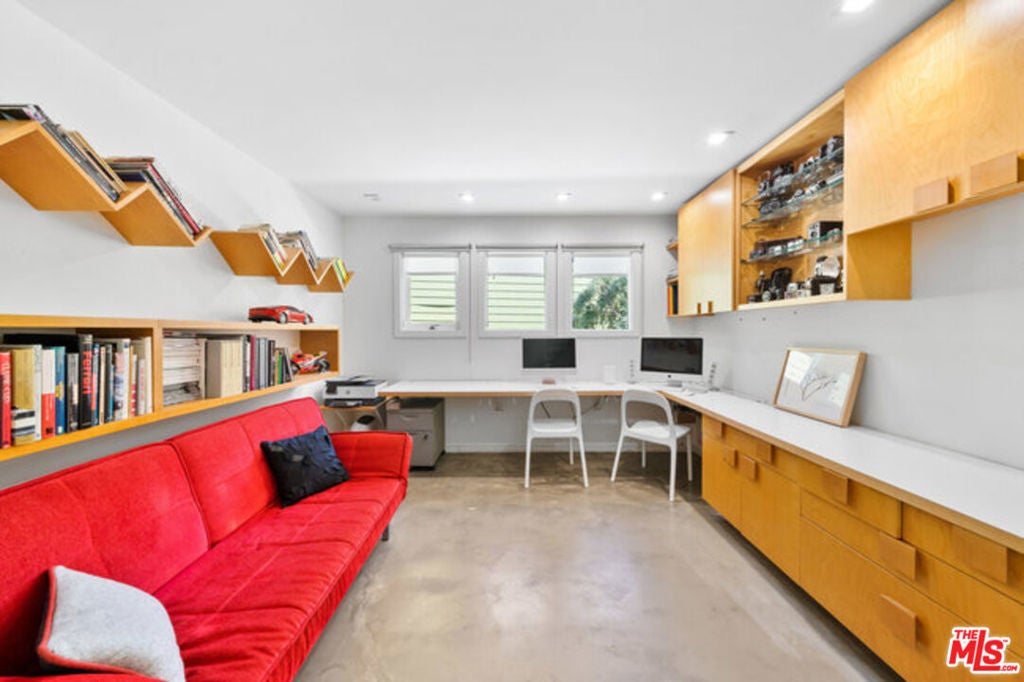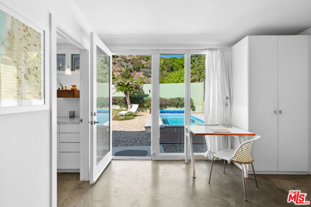 AVAILABLE MARCH 1st, 2026 | A one-story, Mid-Century Modern Home located in Malibu, minutes from the beach and the Paul Getty Villa. The front walkway, a twisting pathway, leads you to the front door. The front yard is landscaped with exotic cactus plants. This house offers 3 bedrooms, 3.5 bathrooms, and a den. An open floor plan that connects the Living room, dining room, den, and kitchen to the back yard and the side yard. There are Concrete floors throughout the house. A bright house that offers floor-to-ceiling glass doors and skylights. Minimal, modern furnishings to evoke a sense of space. The kitchen has walnut cabinets with Blue walls, a Viking oven, and Carrara marble countertops, with plenty of counter space for preparing food and cooking. The kitchen opens up to the side yard with a seating area, a water fountain, and an outdoor gas oven/BBQ. The den/TV room is open to the kitchen. The primary Bedroom features high ceilings, glass walls, and a queen-size bed. The main bathroom includes a white oval bathtub and a white shower stall with a steam bath. The dual sink Mahogany cabinets create a mid-century vibe. A private patio with an ornamental wall is in front of the primary bedroom, featuring beautiful landscaping and a hammock for relaxation and to enjoy the sounds of the birds, offering complete privacy. There are two additional bedroom suites. One of the rooms is being used as an office with bookshelves and a long desk. The sofa bed in this room turns into a full bed. The third-bedroom suite features a queen bed and a full bathroom, opening to the backyard with beautiful landscaping, mountain views, and an Endless pool for swimmers. There is an emergency generator that, upon power failure, automatically starts and powers the home to full capacity indefinitely.