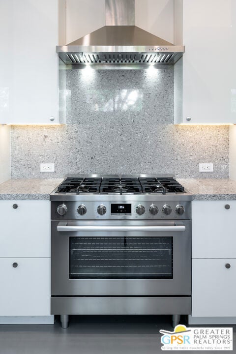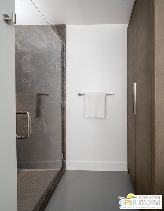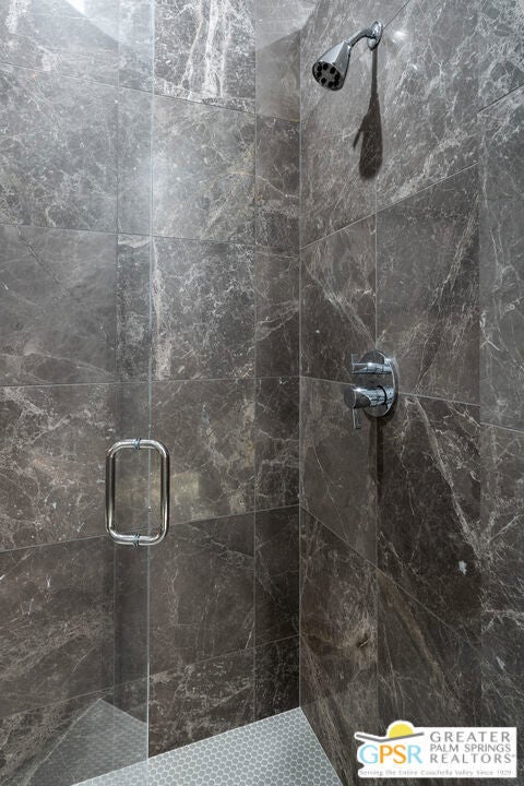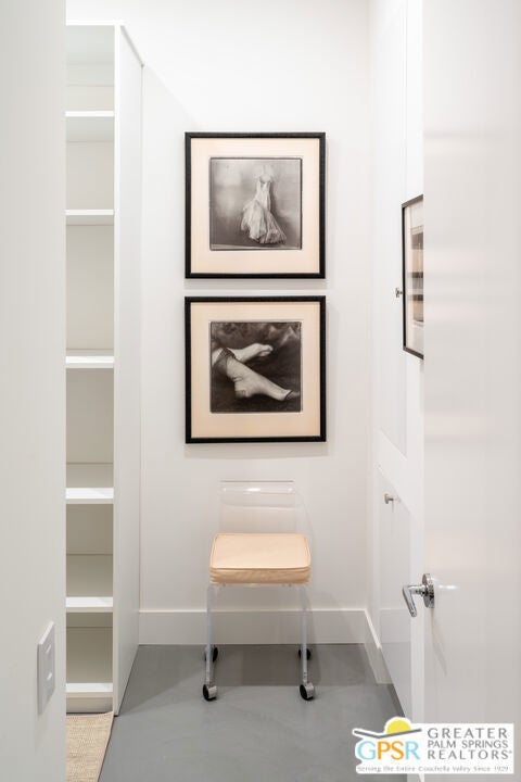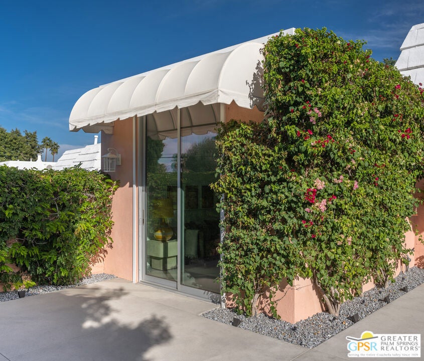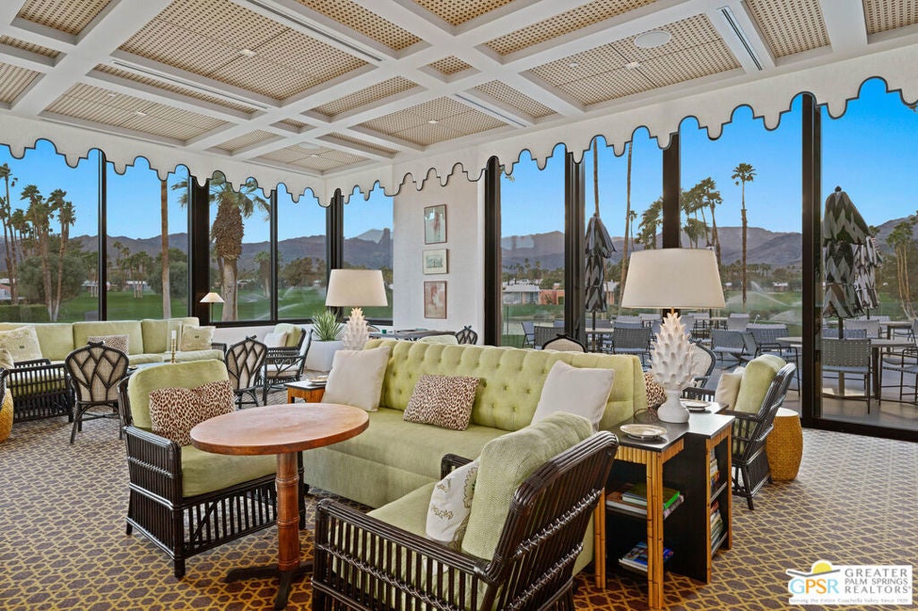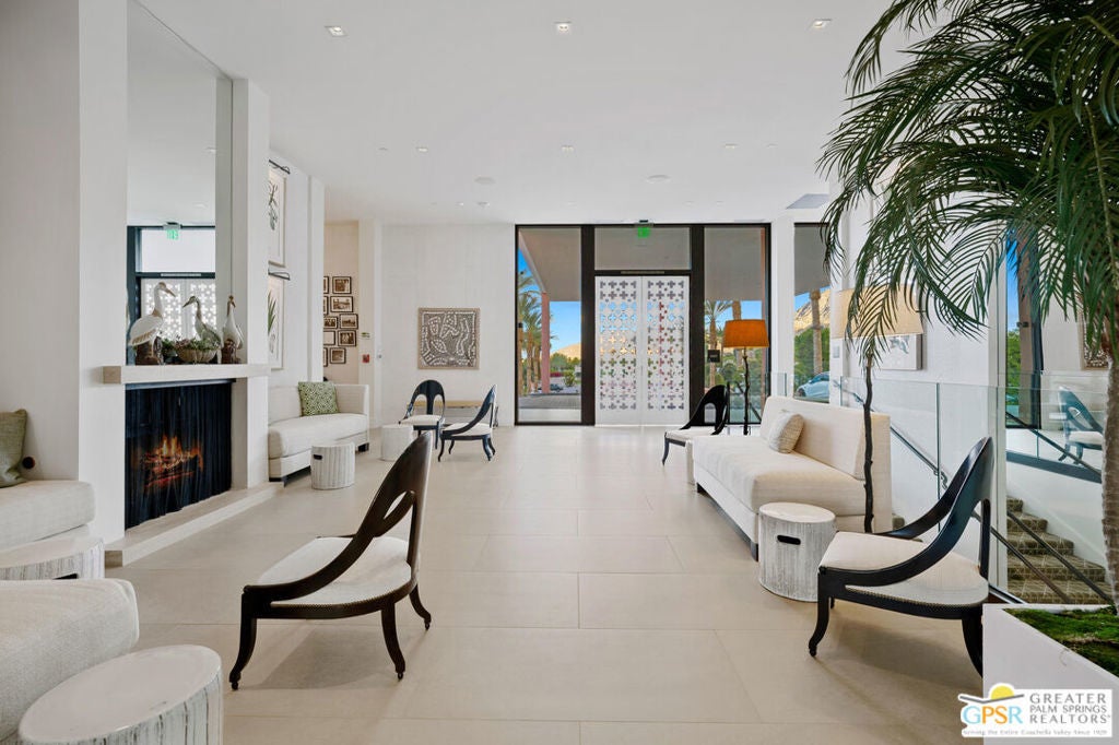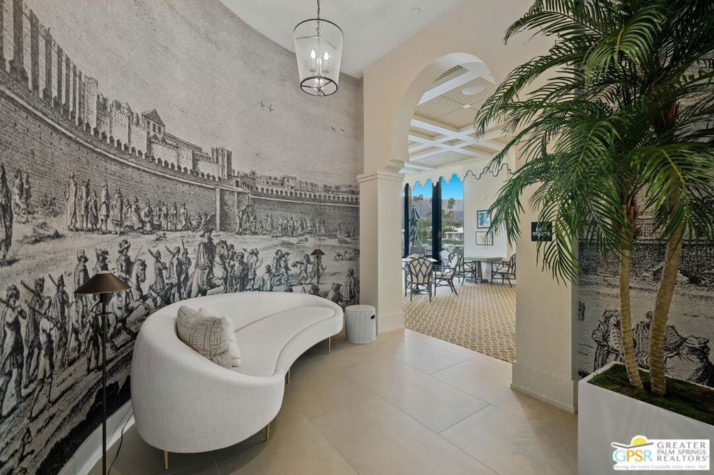 Situated in prestigious Marrakesh Country Club, this John Elgin Woolf designed Hollywood Regency Villa is a pinnacle of modern luxury. Remodeled by renowned celebrity photographer, Firooz Zahedi, author of several books including "My Elizabeth" on Elizabeth Taylor. This three-bedroom, three-bathroom, 2,427 square foot home is the largest of the original floor plans with the remodel completed in October 2025. Enter through the west-facing courtyard beautified with new hardscape and soft, lush landscaping scaling the exterior walls. Through iconic Marrakesh double doors lies a stunning, high-end modern renovation representative of a caliber that is higher than standard. The tall ceilings, extremely smooth white walls, new modern sliders and modern shades enhance light and set the mood throughout the home. In the living room, the black marbled fireplace, recessed art lighting and electric dual sun/blackout shades allow for the manipulation of light to your choice of ambience. Large new sliders frame stunning mountain views and the enormous green space behind. The expanded kitchen footprint allows for modern living with stainless steel appliances, gas cooking, modern gloss cabinetry, wine refrigerator and ample counter space. All bedrooms have private, en-suite baths with Restoration Hardware vanities in all baths. The primary bedroom includes a spacious bathroom with standalone tub, separate marble shower, new vanities, plumbing and fixtures. The walk-in closet includes custom shelving and organizers, and built-in laundry basket and wall storage. The secondary bedroom suite have been expanded to include a separate seating or office area, built-in closets and en-suite bathroom with shower. The third bedroom also includes an en-suite bathroom with shower and access to the front courtyard. Stackable laundry is hidden with convenient shelving and separate wash basin. Additional features include: a tankless water heater, two newly installed HVAC systems, two-car garage with EV Charging port, new electrical subpanel, new sliders/windows and a 38 panel/11.21kW solar system. Marrakesh is a boutique country club with an ideal central valley location amongst a few of the desert's finest private clubs. Amenities include 18-hole private executive golf course, tennis, pickleball, 14 pools and spa, a fitness center, and an active and newly-remodeled clubhouse with fine dining. Marrakesh is near famous El Paseo with all of its elegant boutiques, restaurants, art galleries, and coffee houses. Come experience Marrakesh Country Club. Furniture and Art available outside of escrow separate from the listing price.