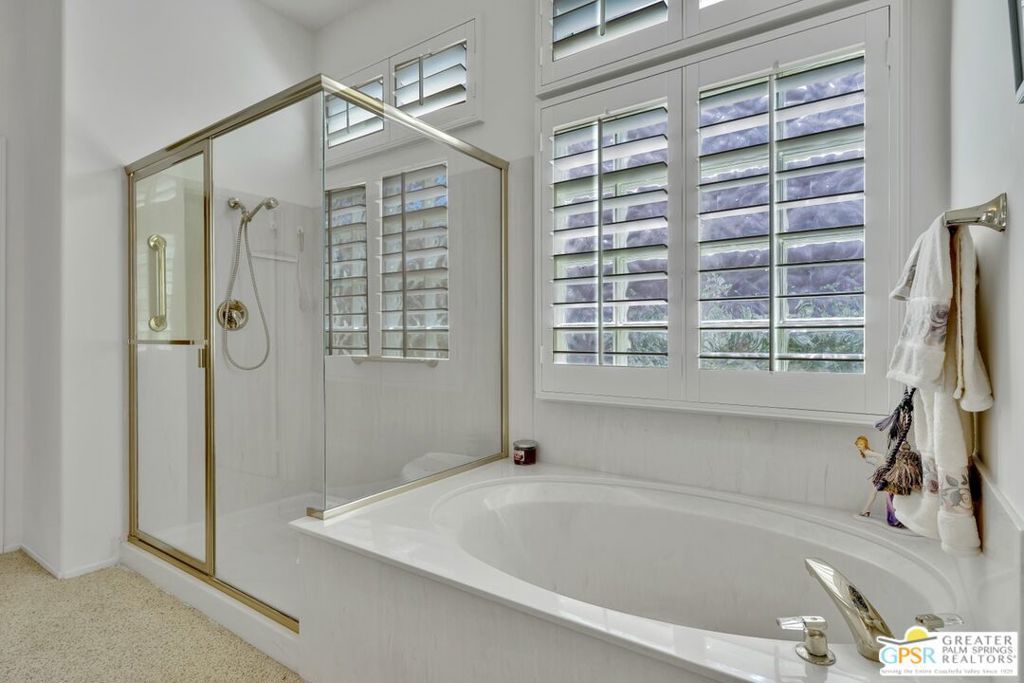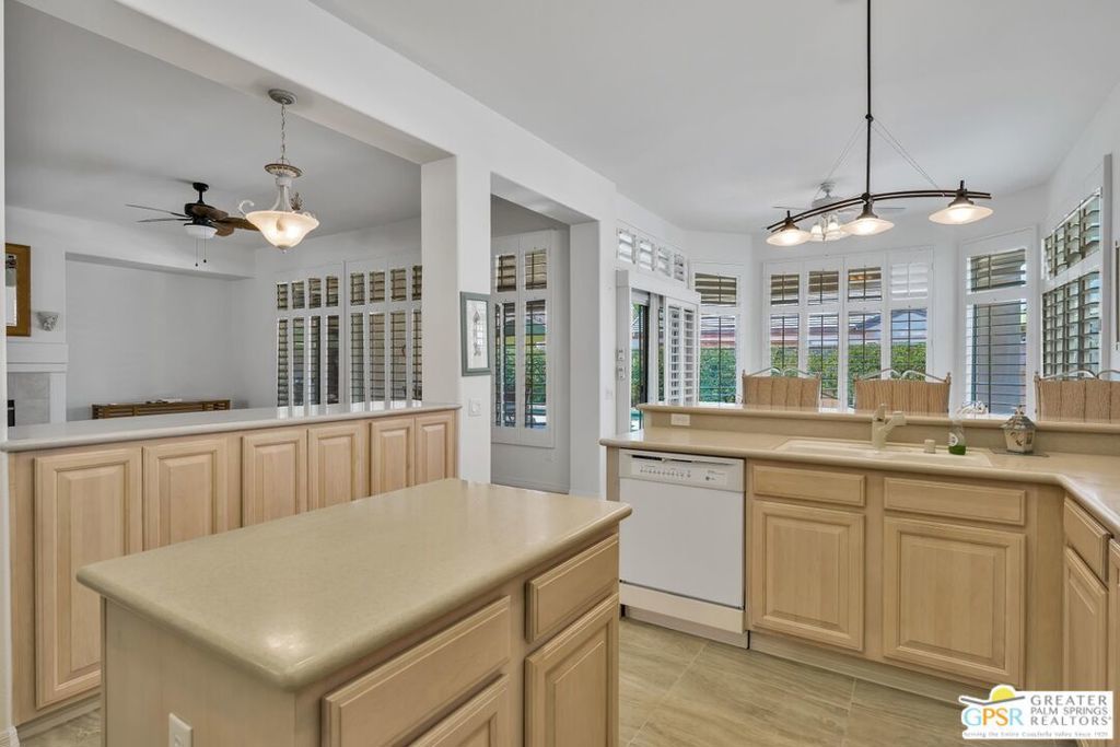 Long term rental in fabulous Sun City Palm Desert, 55+ senior community. Active adult living at its best. Community offers golf, tennis,pickleball, fitness center, restaurants, pools and so much more. Available now. Monterey model with 3 bedrooms and 3 baths. This popular great room home has a spacious south facing rear yard with a textured concrete patio surrounding a pebbletec pool and spa. The extended covered patio provides ample shade in addition to the abundant sunshine. Decorative concrete hardscape and a gated front courtyard provide curb appeal. Inside 12'x24' tile is in all but the bedrooms. 10 foot ceilings and transom windows provide a light and open environment. Plantation shutters are throughout. The great room has a tile trimmed gas fireplace that turns on with the flick of a switch. The kitchen has corian counters with rounded edges, a breakfast bar, island and abundant recessed lighting. Raised panel cabinets are in the kitchen and bathrooms. The primary suite has a slider to the rear yard and a large walk-in closet. The primary bathroom has dual sinks, a stall shower with glass enclosure and an oversized tub. The guest wing of the house consists of 2 bedrooms and one bathroom that has a stall shower with glass enclosure. The 3rd bathroom has a stall shower w/ glass enclosure. Between the kitchen and garage sits a good-sized laundry room. The extended 2+ golf cart garage has an epoxy floor. The home is equipped with a central vacuum. Lease includes: HOA cable/internet and WIFI, gardener and pool maintenance. This won't last call now