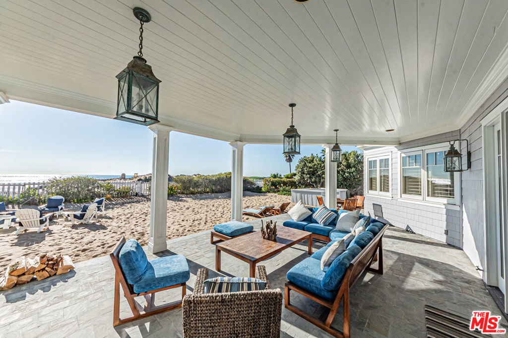 Beautiful Cape Cod style beach house, 80 foot lot on exclusive Broad Beach. From every bedroom, you wake up and fall sleep to the sound of waves. This home is elegantly decorated, with open-beamed ceilings, lots of windows and natural light. It features 20 foot open beamed ceilings, and French doors leading out to the private patio on the beach and gardens in the back. Sleep to the peaceful sounds of the ocean in one of two spectacular master suites. Enjoy the outdoor fireplace on the private master deck. The master bathroom is finished with custom marble and tile and has a separate over size steam shower and deep soaking tub to relax in after a day at the beach. There are 6 bedrms & office in the main house w/2 spectacular master suites. A luxurious master bath w/custom marble & tile, over size steam shower & deep soaking tub. Gourmet catering kitchen is fully equipped featuring granite counters, Viking appliances, 3 ovens and 2 dishwashers. Sauna and outdoor spa. Guesthouse with full kitchen has a large bedroom and 1 1/2 baths. Available for shorter terms/seasonal/vacation-stay via separate luxury rental agency.