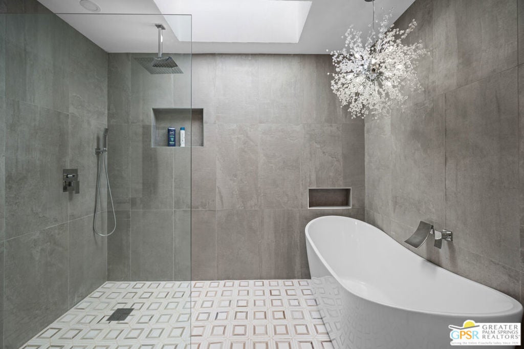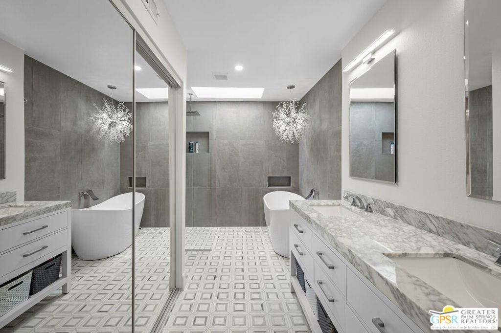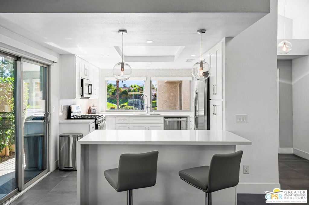 New listing: South-facing, completely updated condo in Casablanca, Palm Desert. Once inside, you are greeted by a light, bright contemporary space with excellent mountain views. The open floor plan maximizes flow, enabling seamless entertaining and enjoyment across all living spaces. The updated kitchen includes custom cabinetry, quartz slab countertops, and stainless steel appliances. The vaulted ceiling living room is highlighted by an oversized tiled fireplace and windows/doors opening onto a private wraparound patio. The primary suite features a soaking tub and a custom-tiled shower enclosure, all in a beautiful, sleek room reminiscent of a spa. Casablanca is ideally situated in Palm Desert, close to shopping, entertainment, and dining. The home is being sold FURNISHED per the seller's inventory. Why aren't you living here yet?