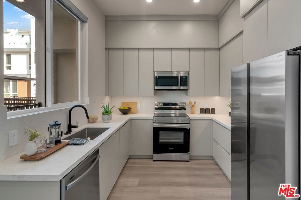****NEW IMPROVED PRICING****This Brand New Modern Design Home stands as one of the premier offerings within Plymouth Heights, showcasing the community's most spacious layout with approximately 2,150 sq ft and a desirable front street-facing entrance. Spanning three levels, the residence features 3 well-appointed bedrooms with custom designer built-in closets and 3 1/2 baths, including a luxurious primary suite with jacuzzi tub. Custom warm earth-tone flooring and designer accents runs throughout, creating an inviting and cohesive atmosphere. The open main level is filled with natural light and connects seamlessly to a private patio and an additional top level balcony. The kitchen offers premium finishes with stainless steel refrigerator and stove. The washer and dryer are positioned in a separate laundry area for esthetics and ease of use. Built with sound-insulated construction, a direct-access 2-car garage, EV-ready and solar-ready systems, and optional smart-home upgrades, this home blends comfort with modern convenience. Ideally situated in the City of Champions, minutes from SoFi Stadium, Intuit Dome, the Forum, and major freeways. Be the first to live in these homes, competitively priced to sell quickly.